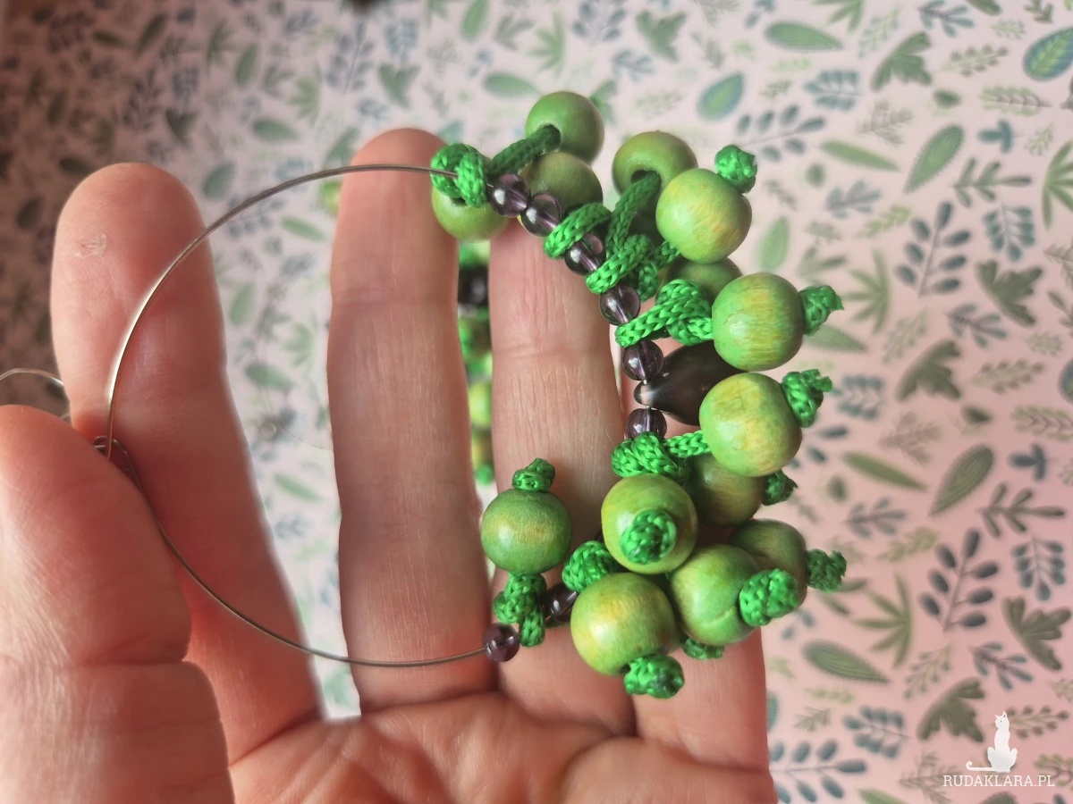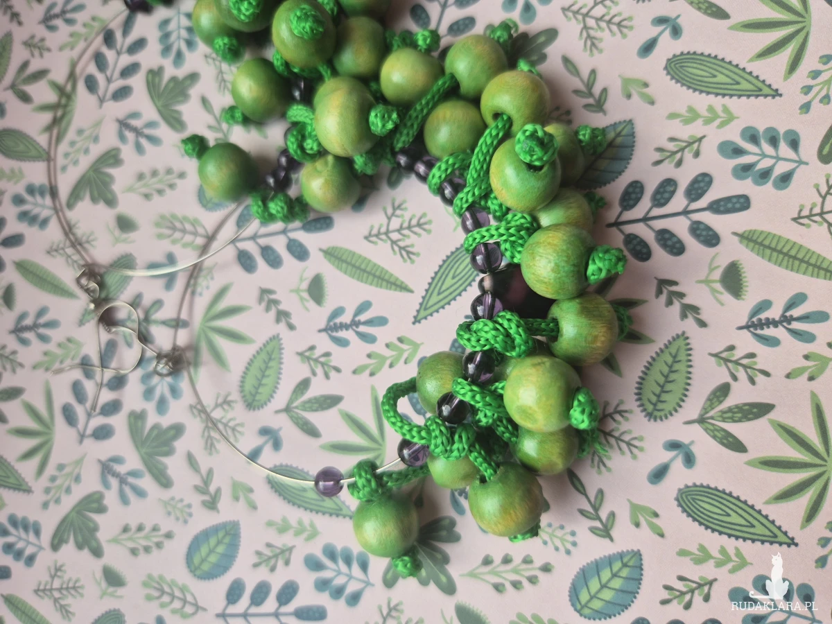 Kolczyki koła zielone drewniane, uwaga poezja :wróble mają mniej kultury niż kury,niespodzianka zawsze leci z góry  box w1