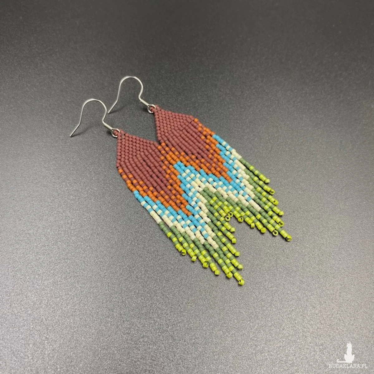 Kolory kolczyków: brązowy, rudy, niebieski, ecru, zielony.