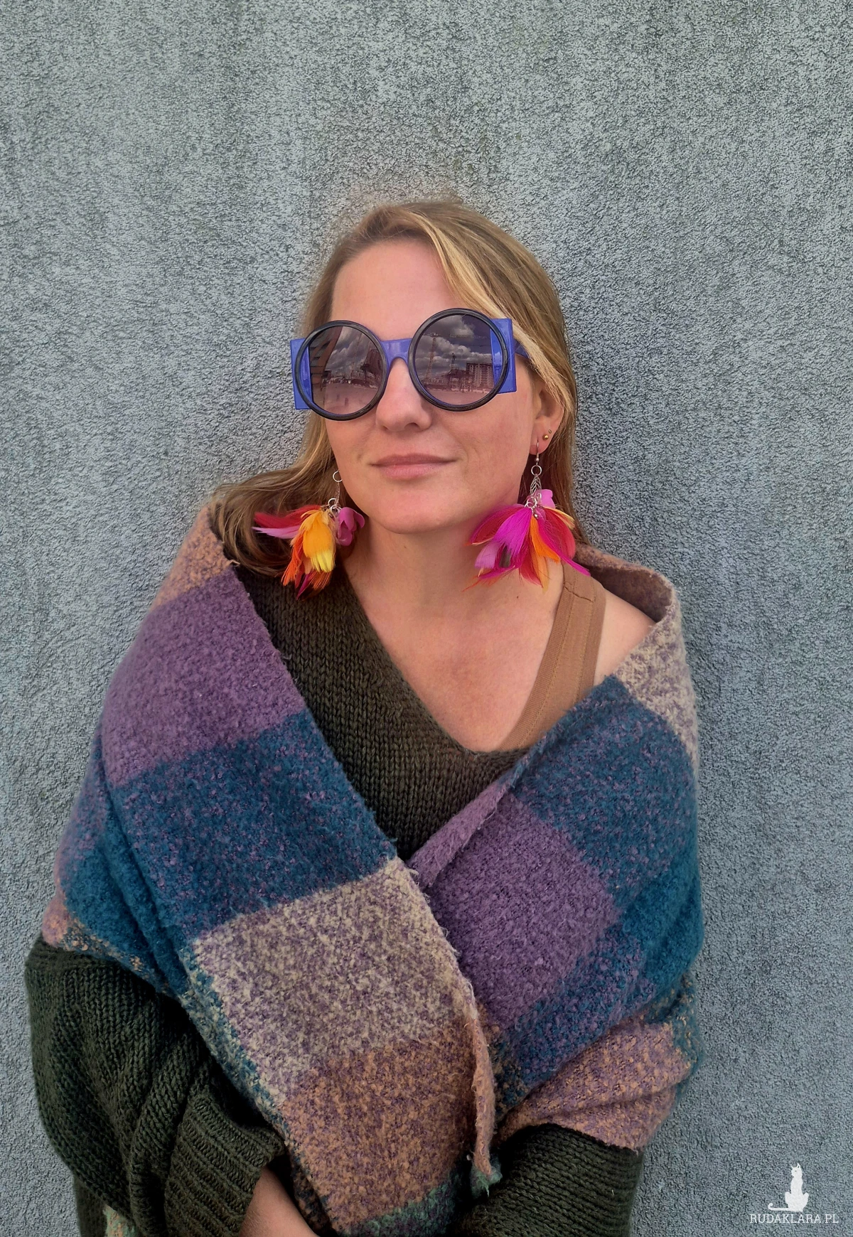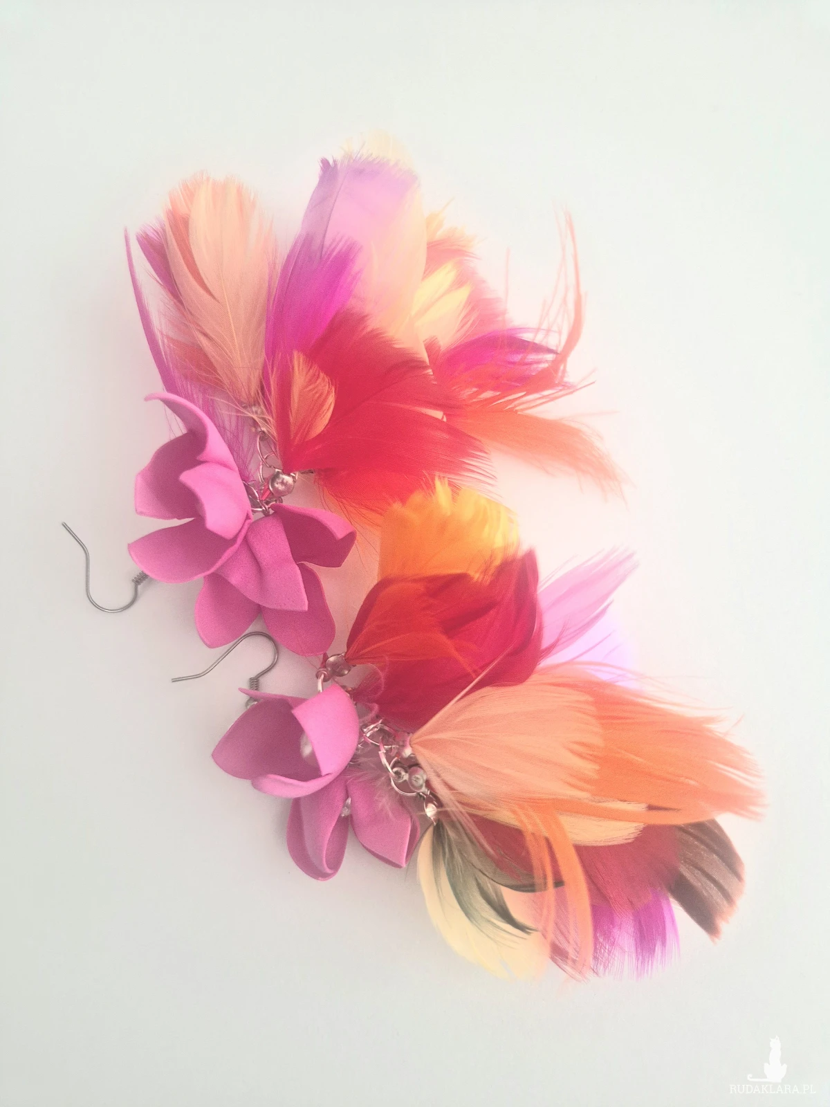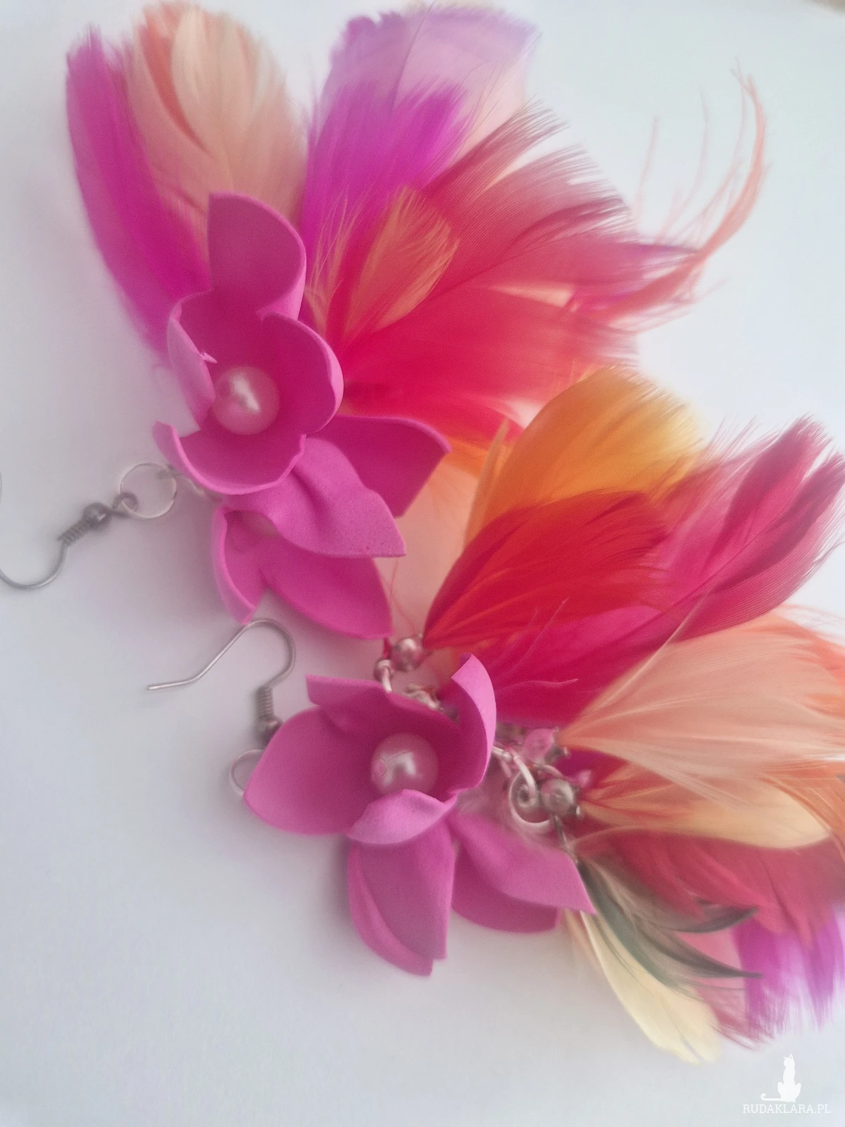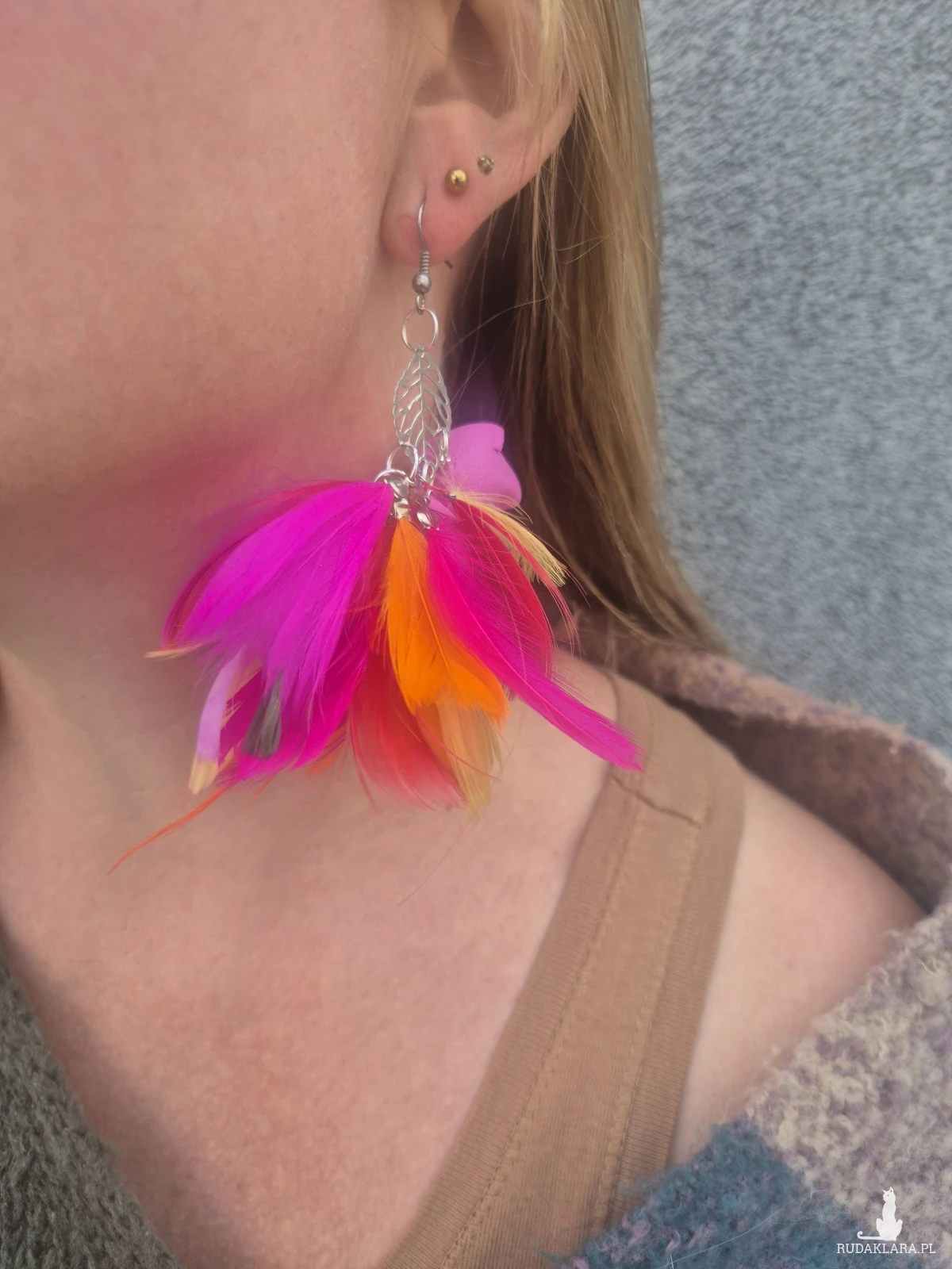 Kolczyki kolorowe pióra i kwiaty,niezwykłe zwracające uwagę,poezja: grubemu zabierają złomowisko, będzie oszukiwał gdzie indziej, biedaczysko,box x1
