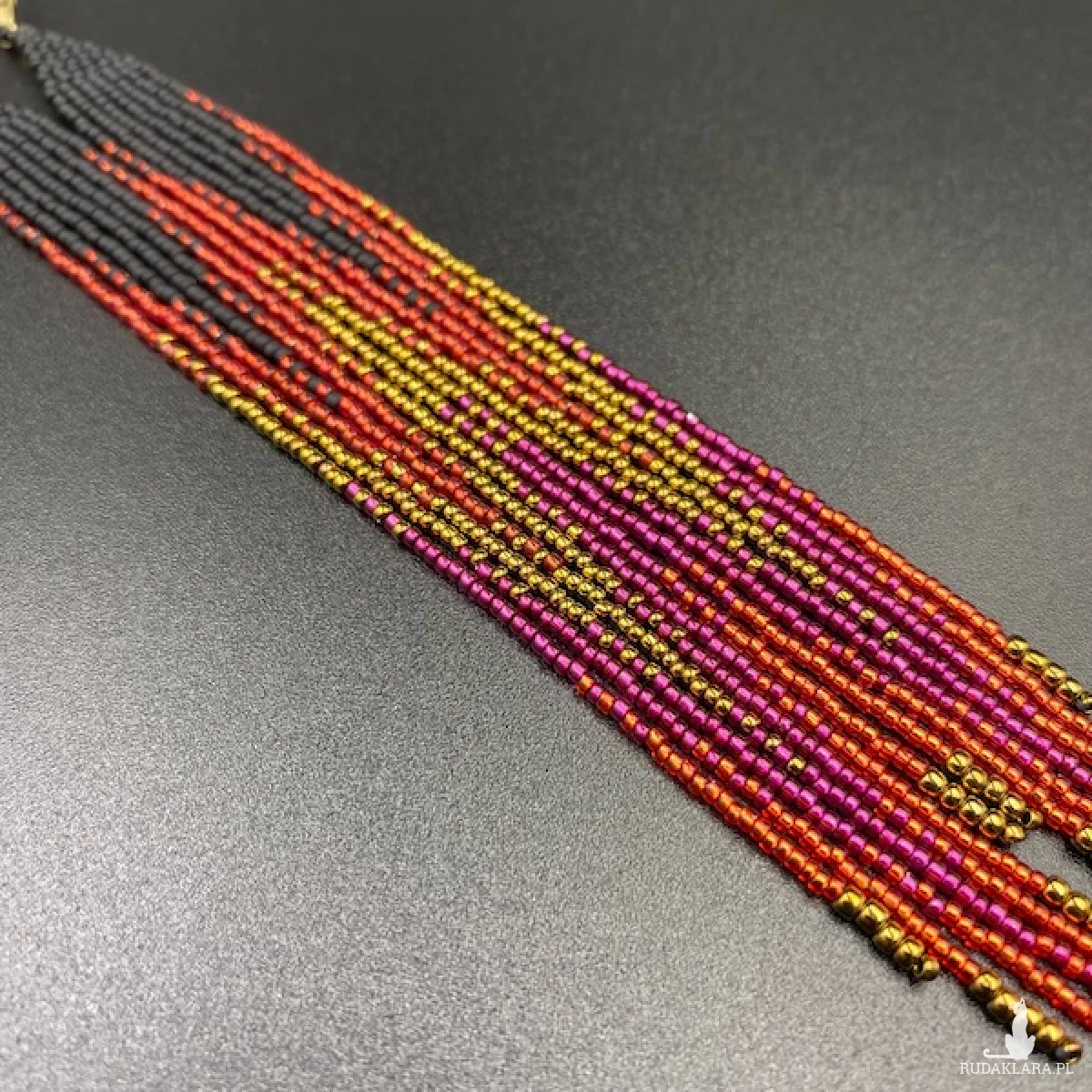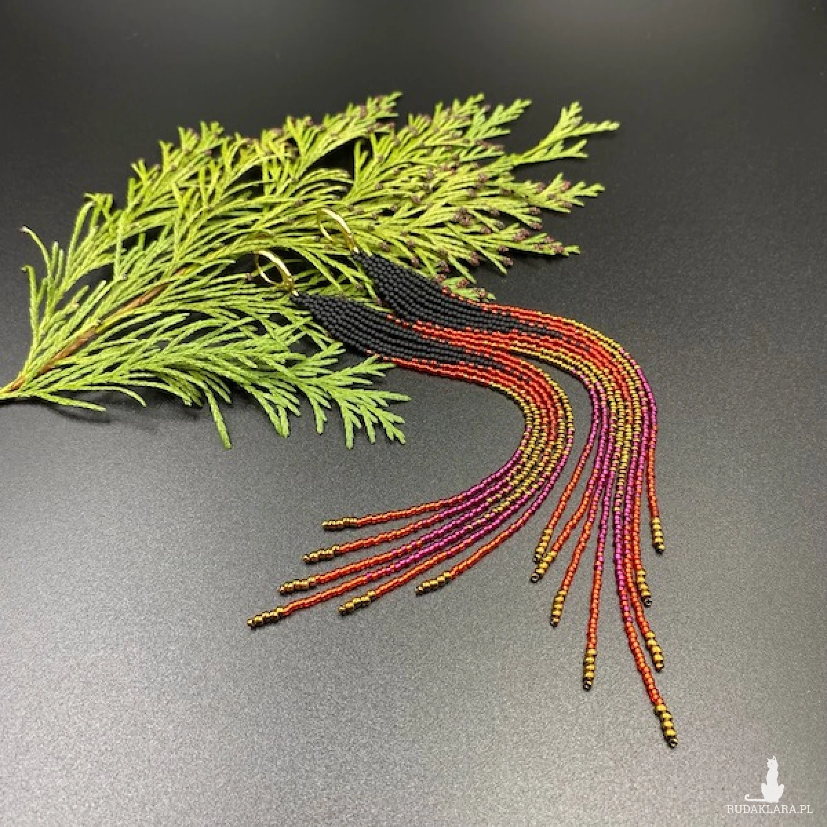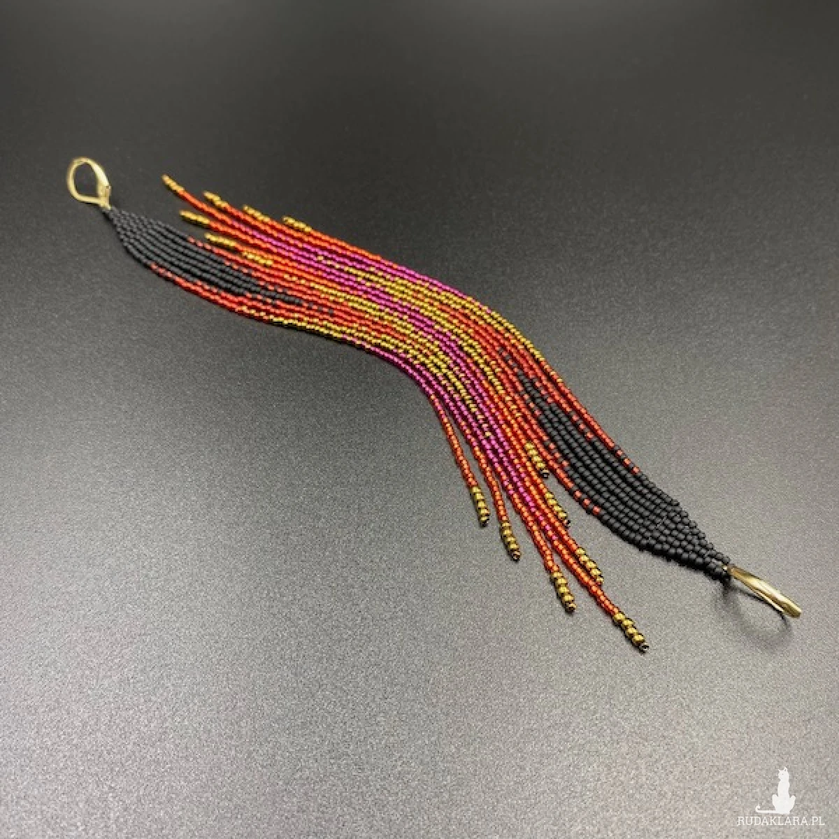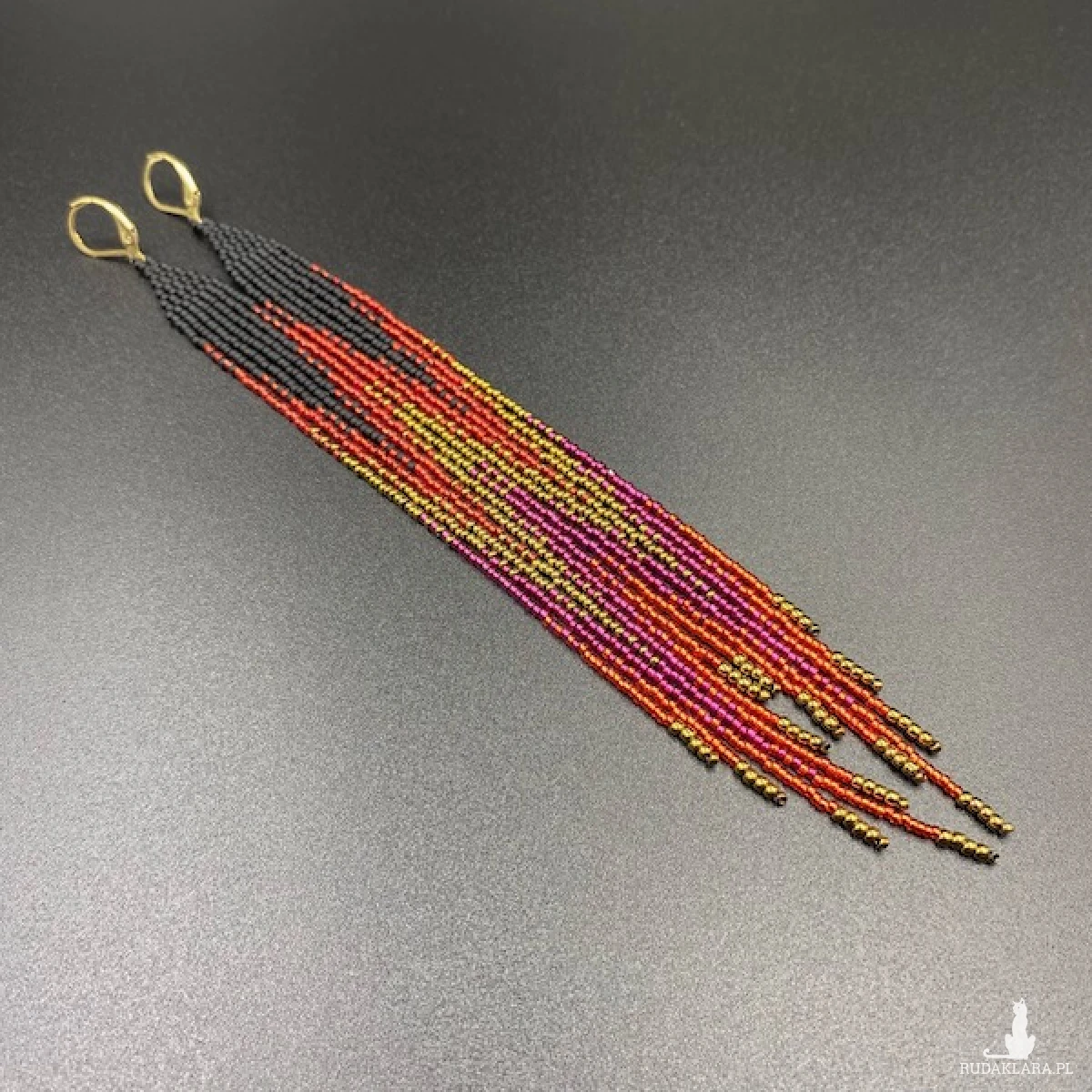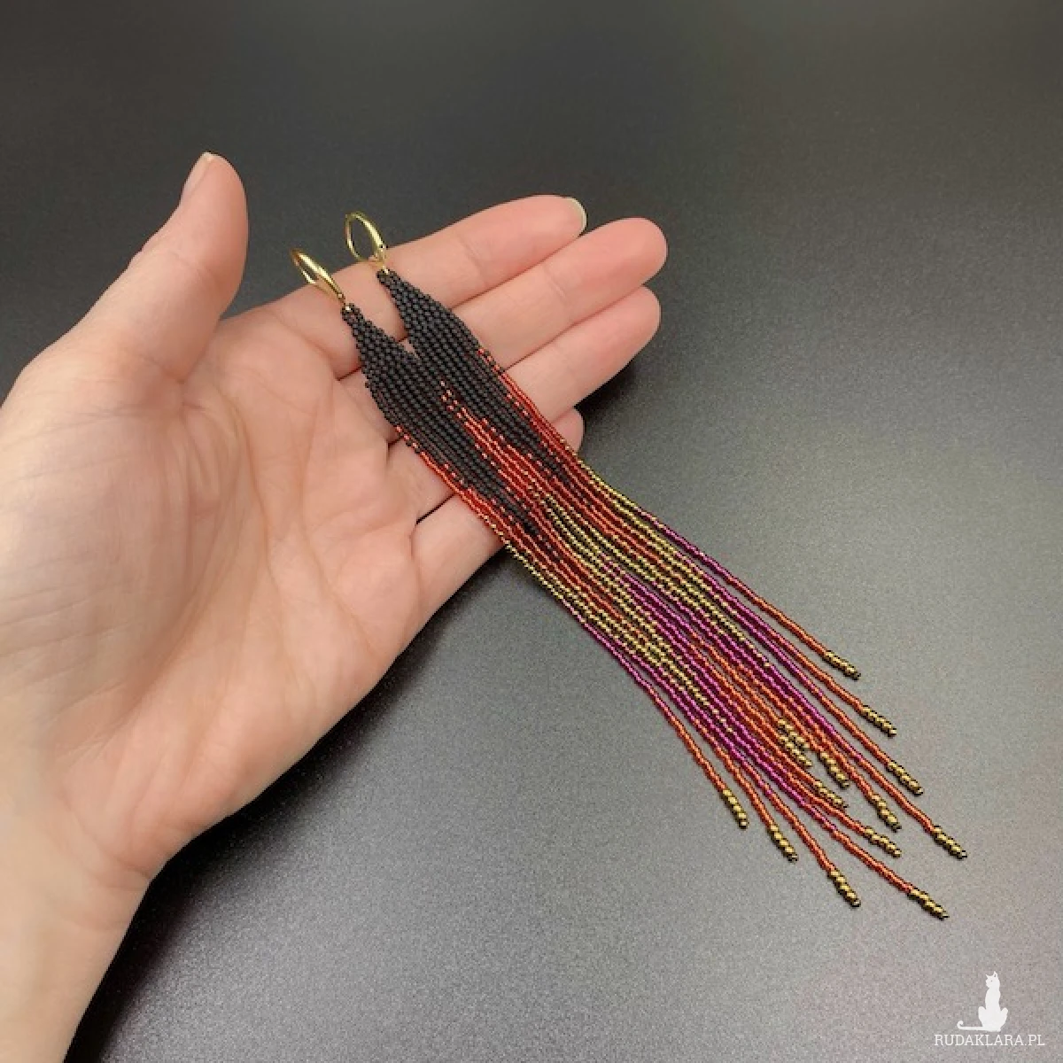 Bardzo długie i wąskie kolczyki do ramion z efektem cieniowania, zostały wykonane z najmniejszych na rynku koralików Toho 15. W 100% utkane ręcznie i z największą starannością.