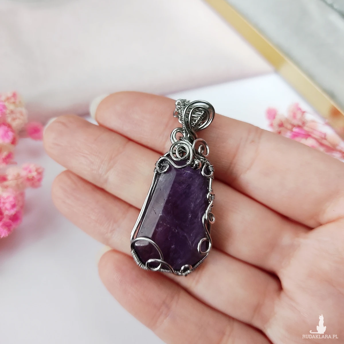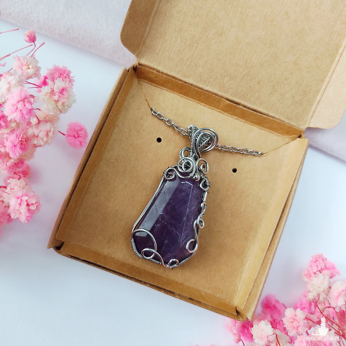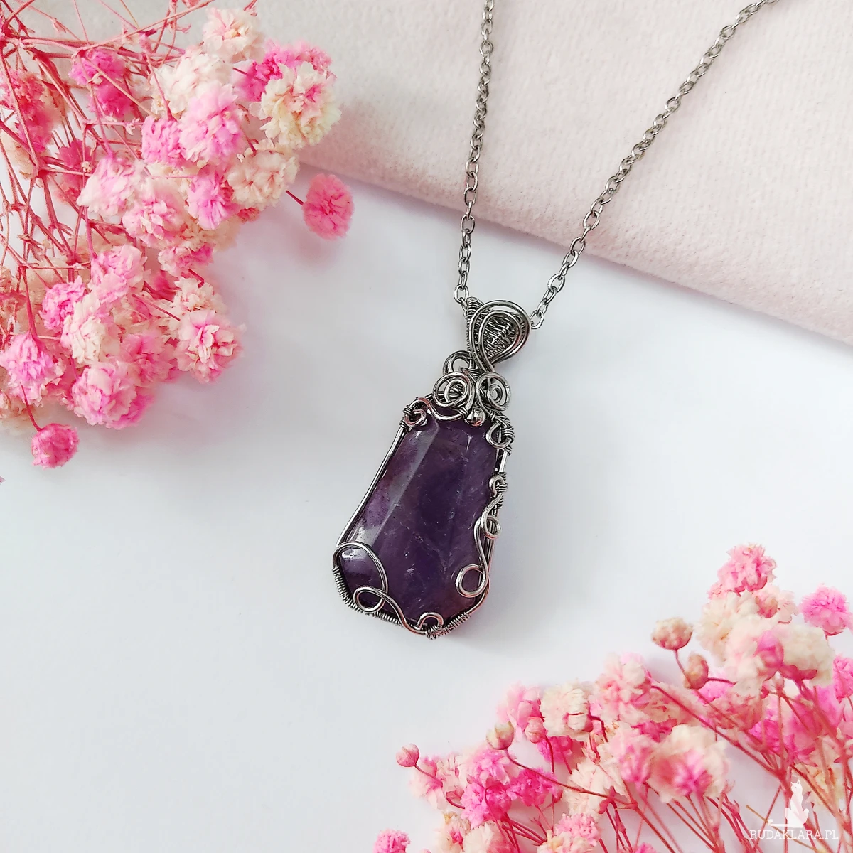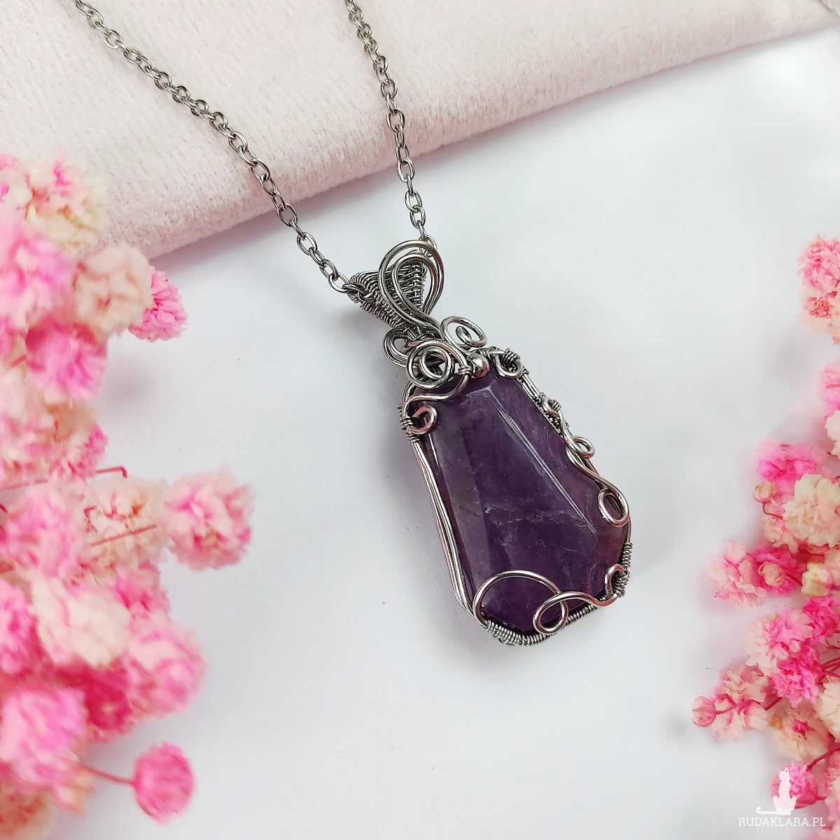 Kamień został oszlifowany w taki sposób, by wydobyć jego naturalny fioletowy blask, a całość oprawy wykonano ze stali chirurgicznej odpornej na korozję i odbarwienia. Dzięki temu naszyjnik z ametystem może być noszony codziennie – bez obaw o utratę jakości. Technika wire wrapping, wykorzystywana w tworzeniu tej biżuterii, pozwala na tworzenie skomplikowanych i subtelnych wzorów, które są doceniane przez miłośników biżuterii artystycznej.