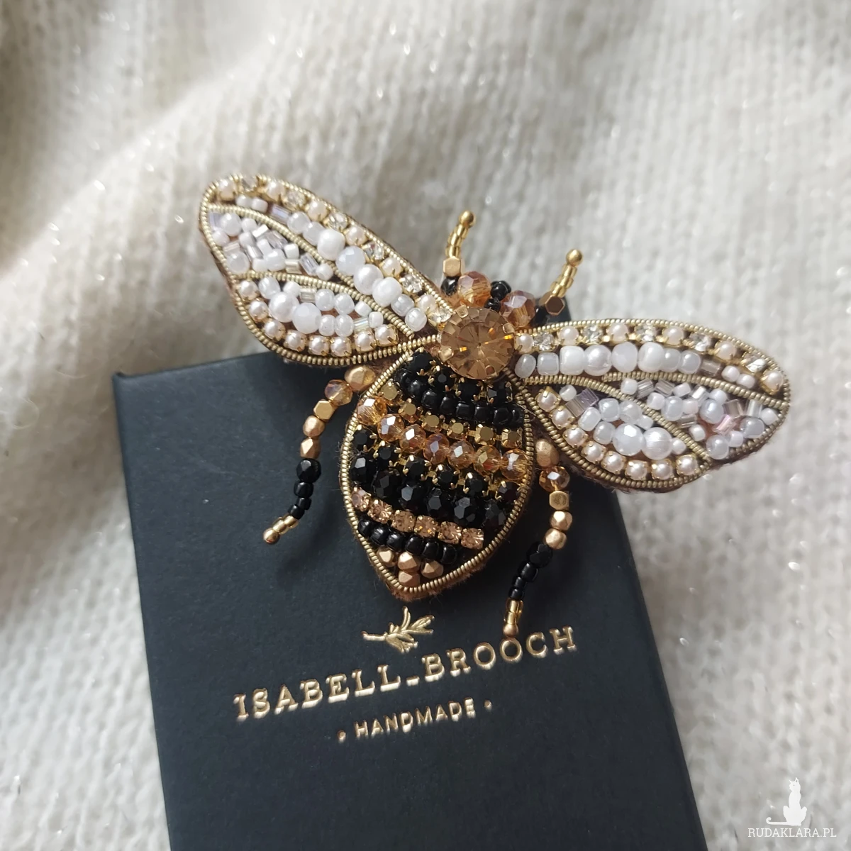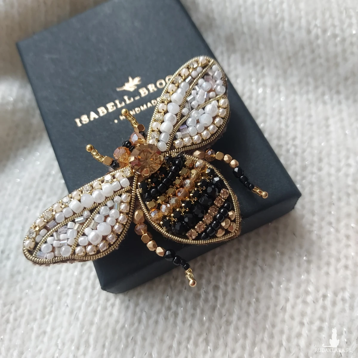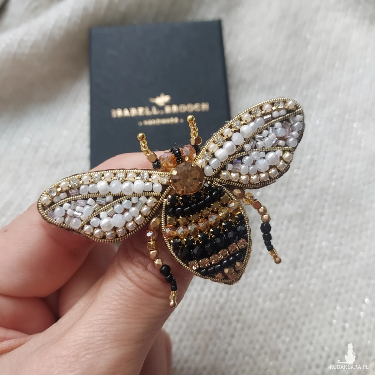 Perłowo-złoto-brązowa broszka pszczoła wykonana techniką haftu koralikowego to idealny dodatek biżuteryjny dla osób ceniących nie tylko estetykę, ale także otaczającą nas przyrodę!