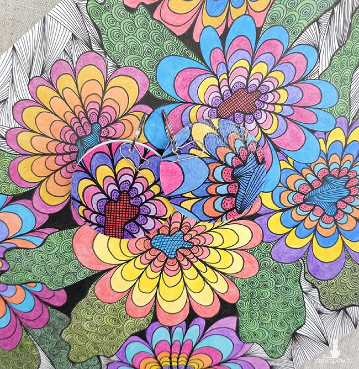 6772 kolorowe, niepowtarzalne, duże, dwustronne kolczyki