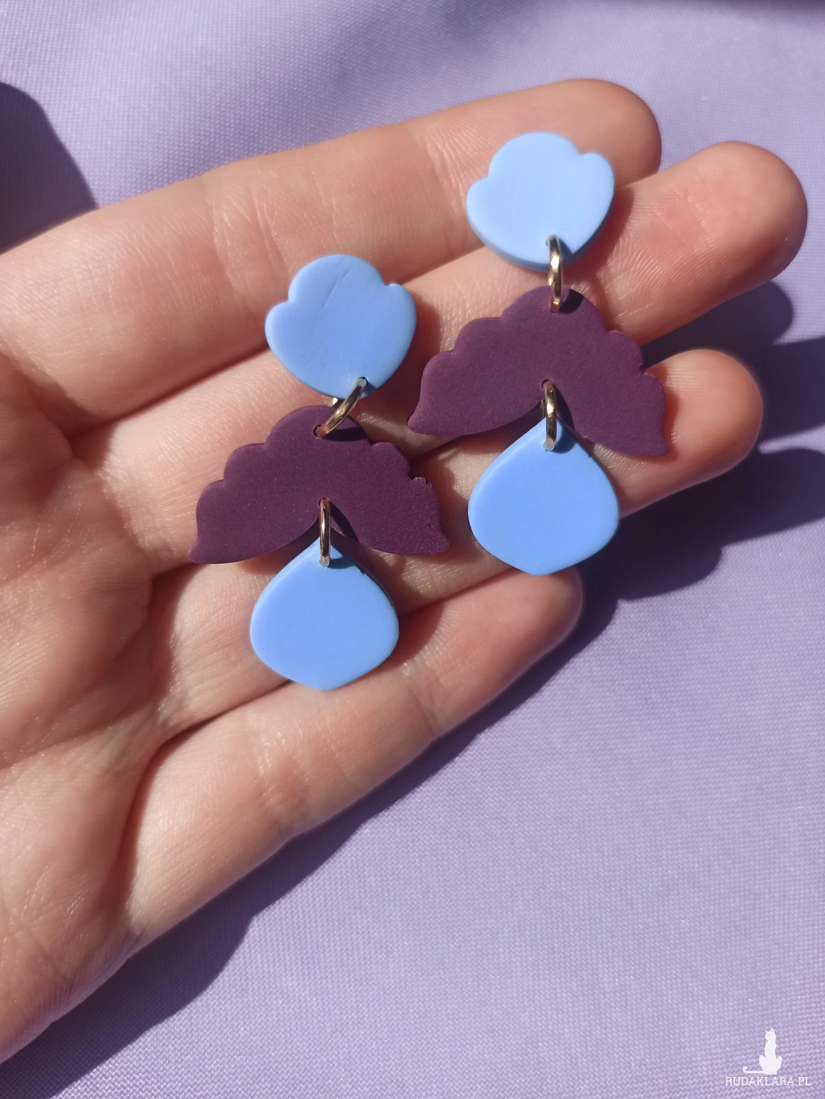 Kolczyki wiszące sztyfty błękitno fioletowe