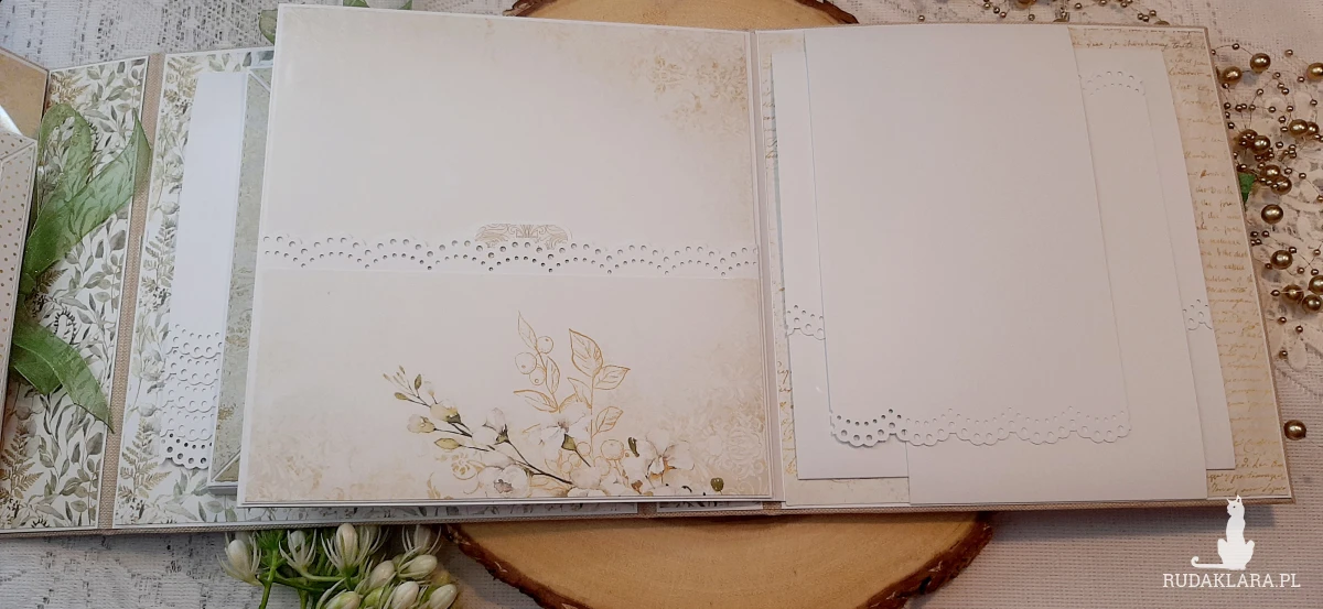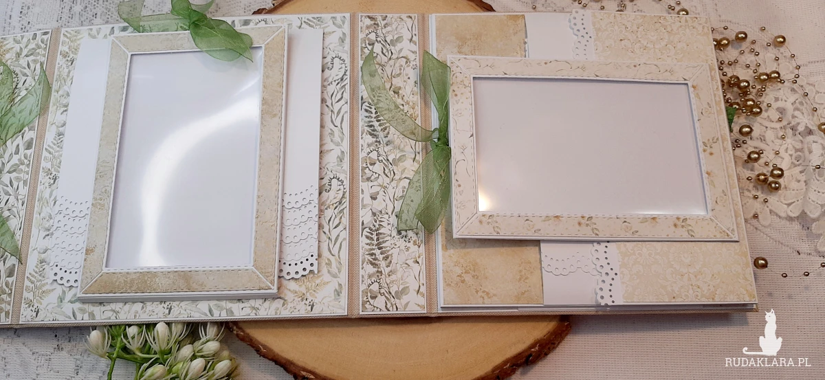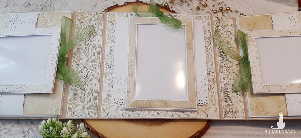 Album jest typu triefold w których znajdują się kieszonki, wodospady, maty i flapki na których pomieścisz ponad 46 zdjęć w formacie 10x15 cm