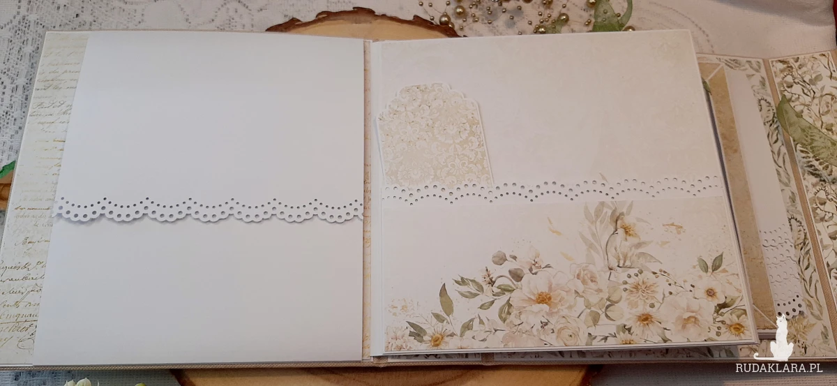 Śliczny, ręcznie robiony album. Wykonany metodą scrapbooking. Do wykonania tego albumy wykorzystałam wysokiej jakości papiery firmy Paper Heaven, bermaty oraz papieru bazowego białego o gramaturze 250 g.