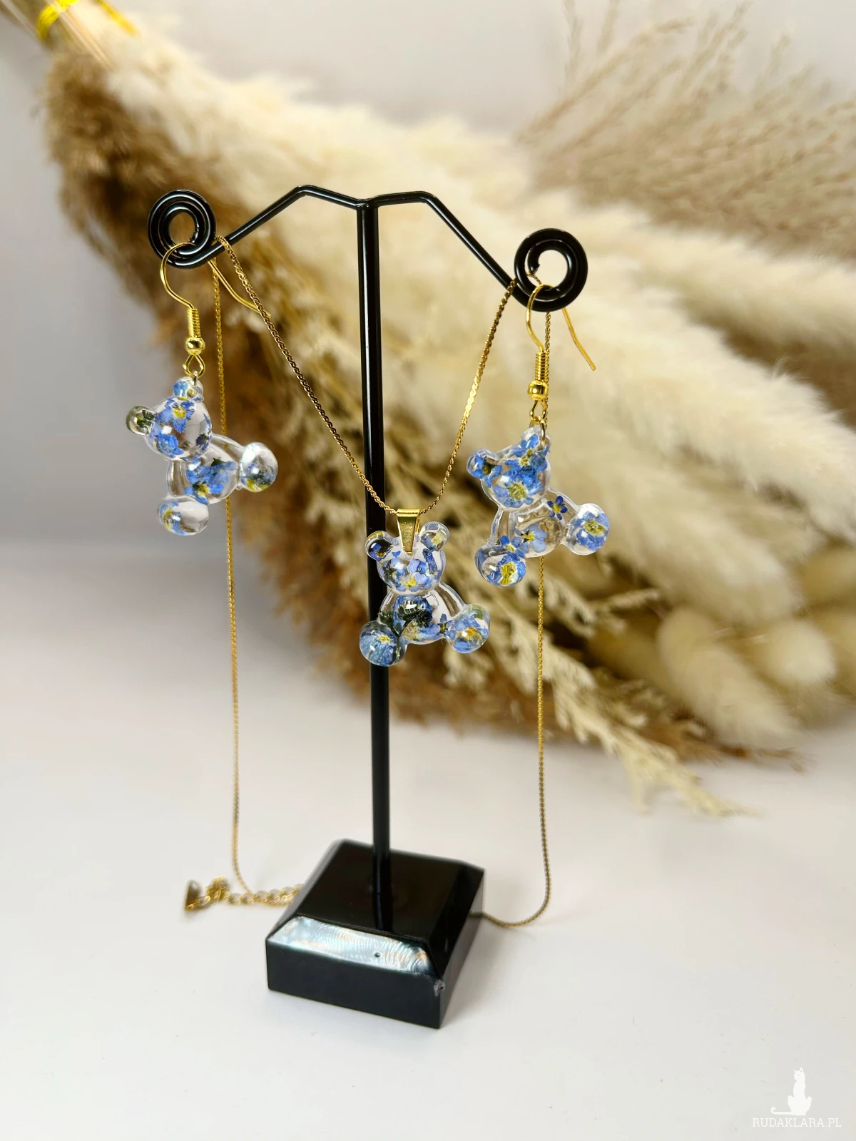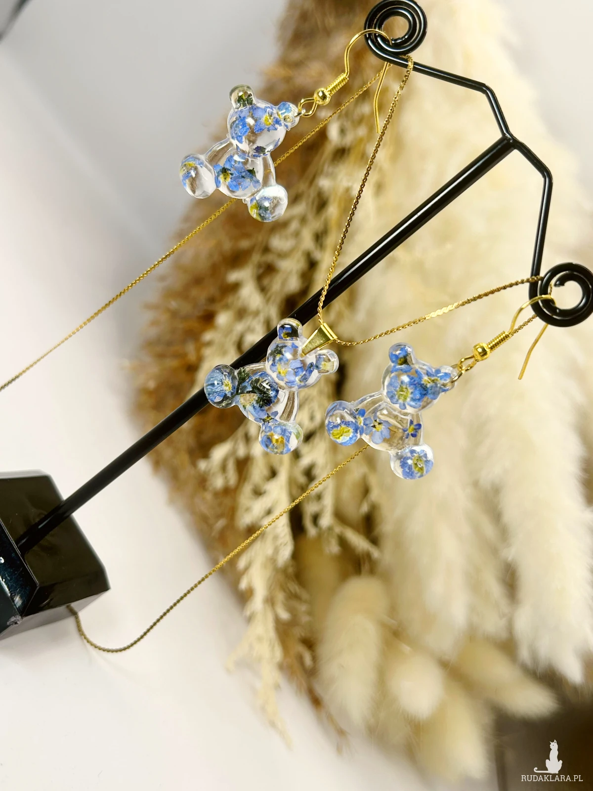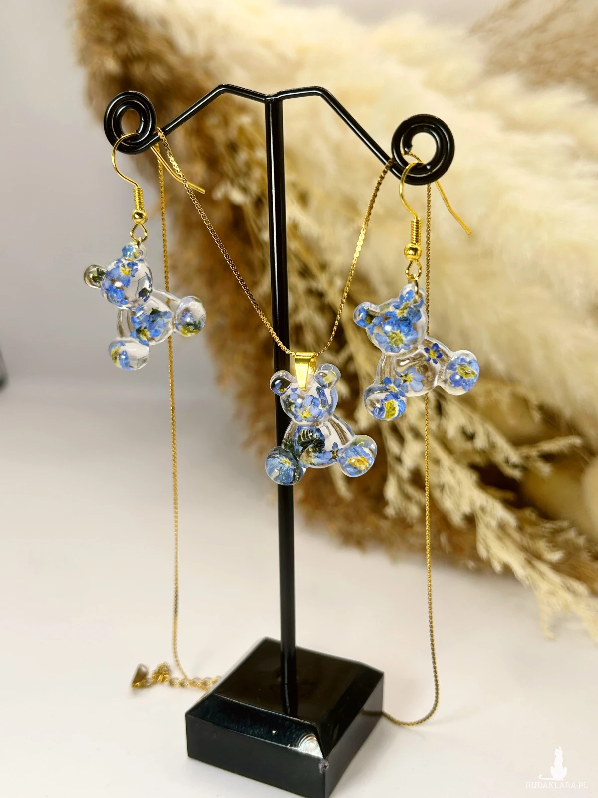 Ten ręcznie robiony komplet biżuterii z niezapominajkami to połączenie subtelności. Każdy detal został wykonany z pasją i starannością – niepowtarzalny, jak Ty.