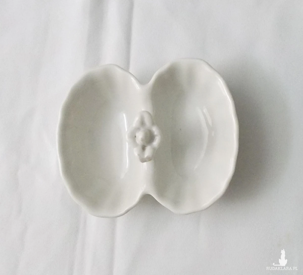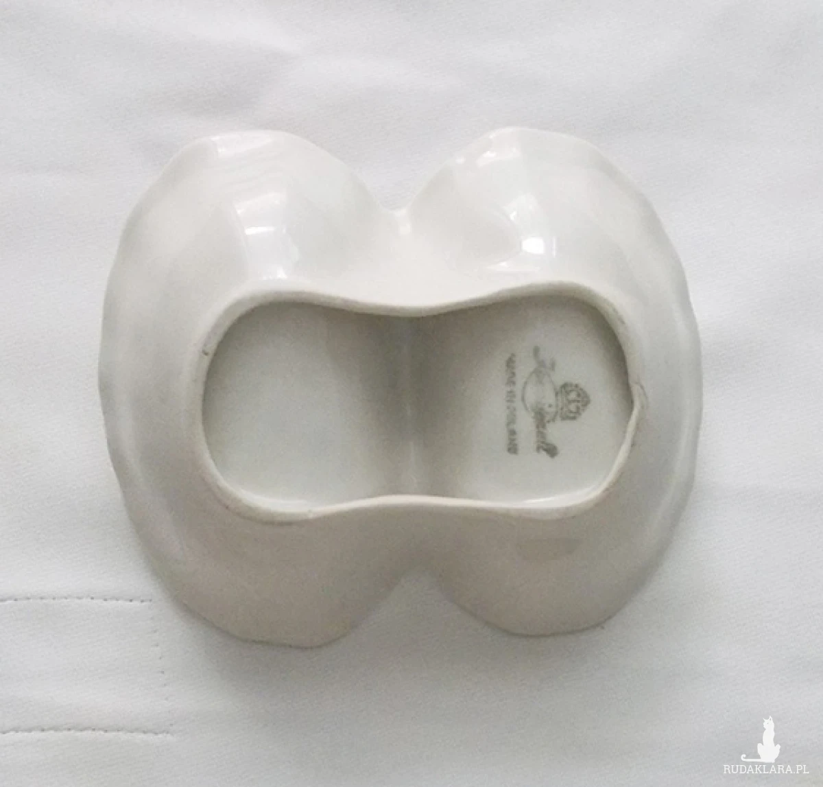 Vintage, kremowy pojemnik na przyprawy: .na sól i pieprz lub inne. Wymiary 11 cm x 8,5 cm, wysokość 2,5 cm. Wytwórnia "Kӧnigszelt - Karolina" w Jaworzynie Śląskiej.