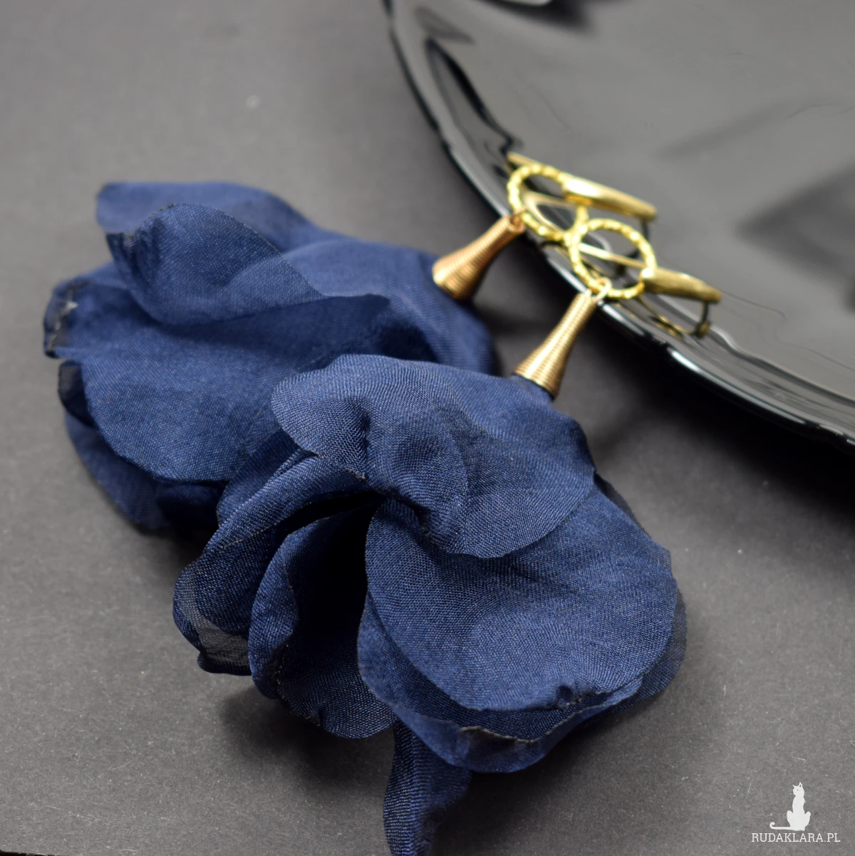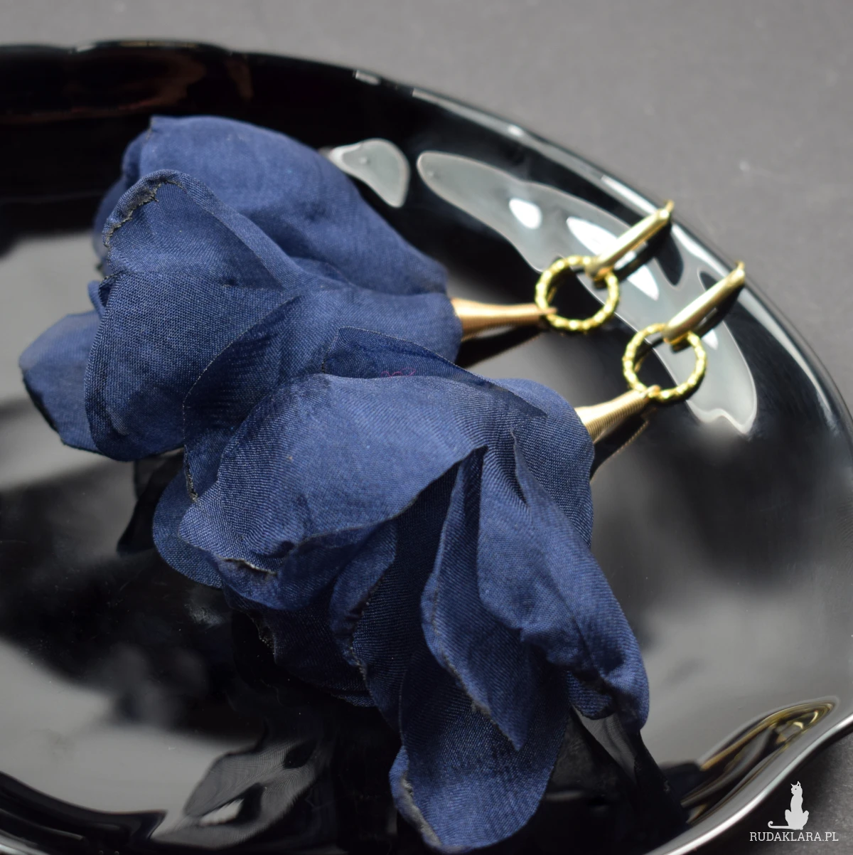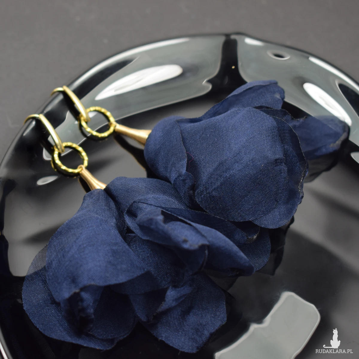 Subtelne i zwiewne kolczyki w eleganckim połączeniu granatu i złota.