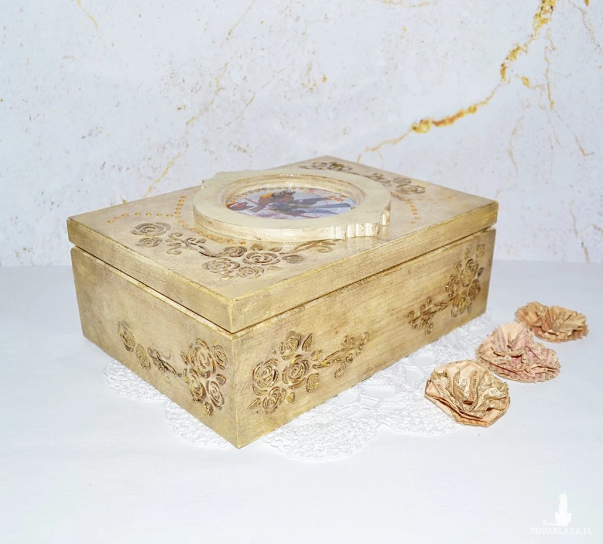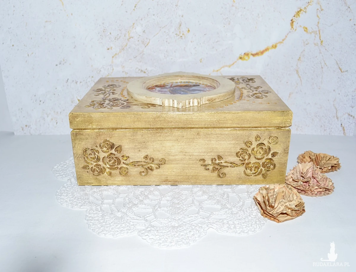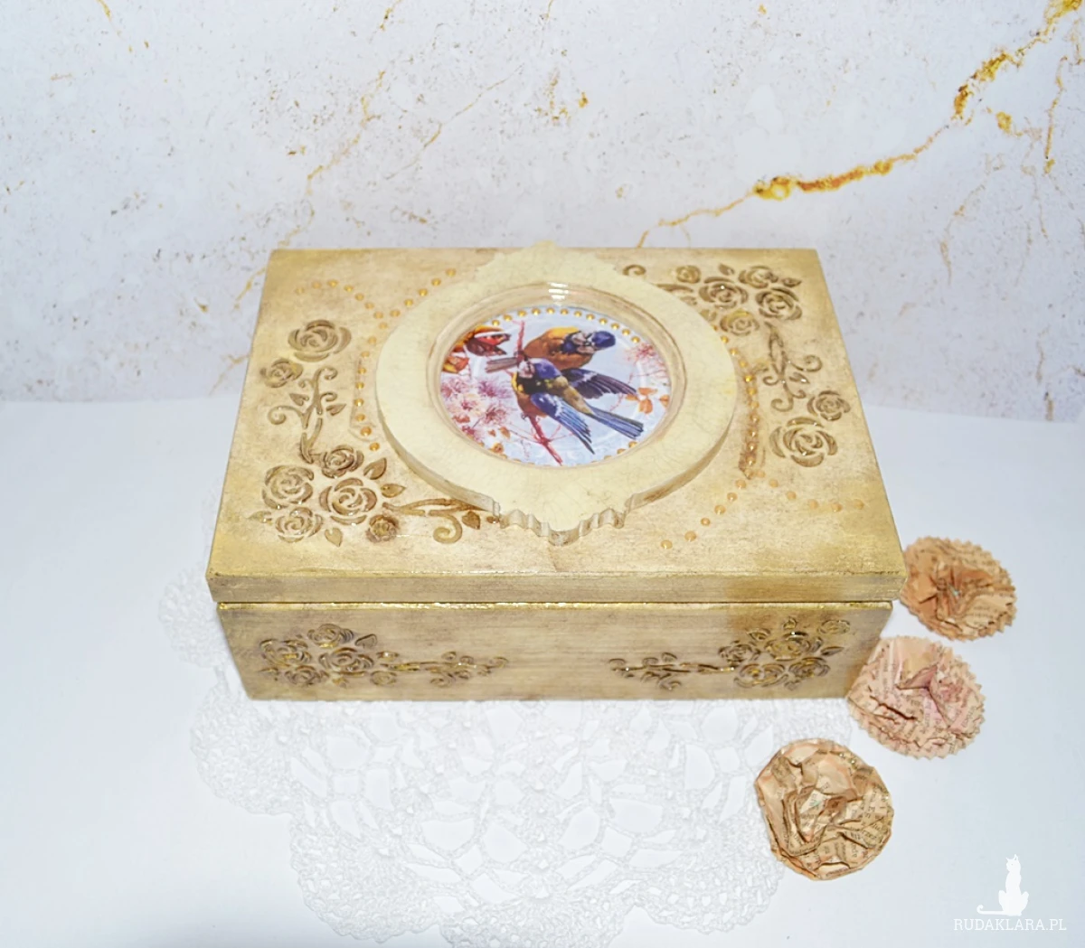 Drewniane pudełko zdobione ręcznie techniką decoupage – metoda serwetkowa