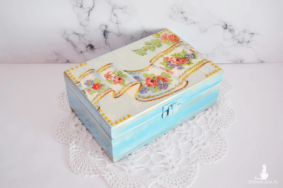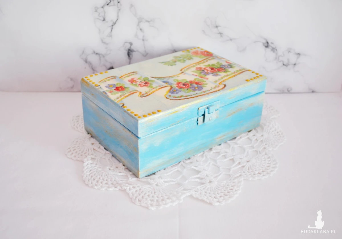 Drewniane pudełko zdobione ręcznie techniką decoupage – metoda serwetkowa