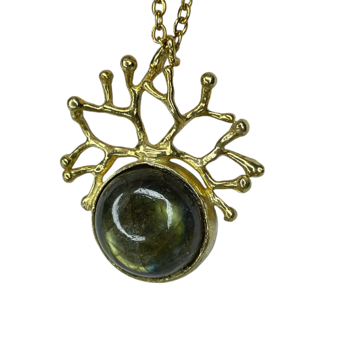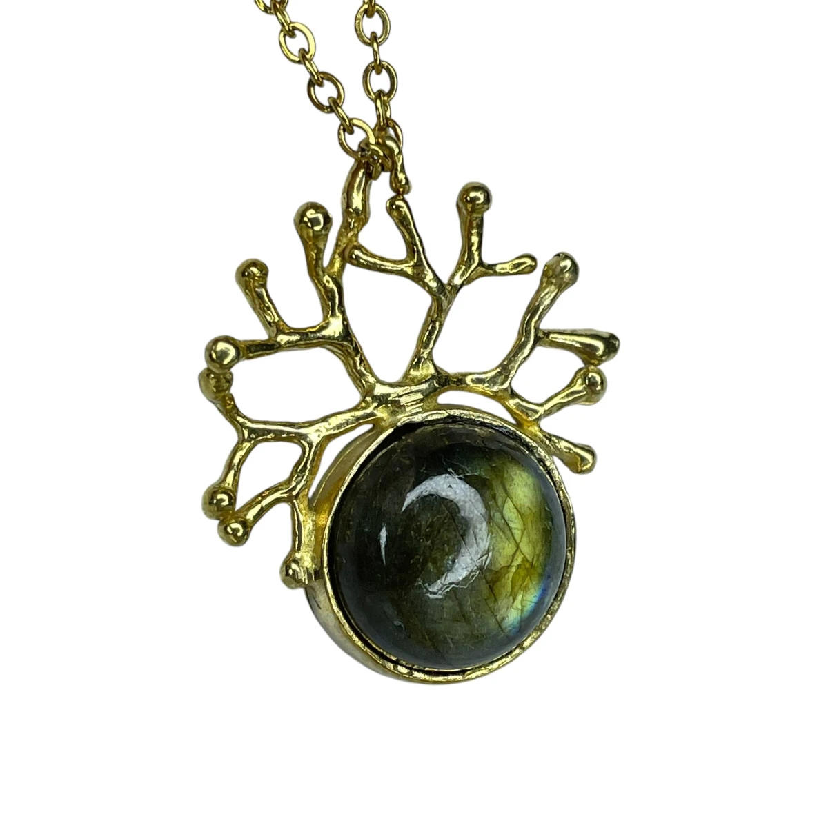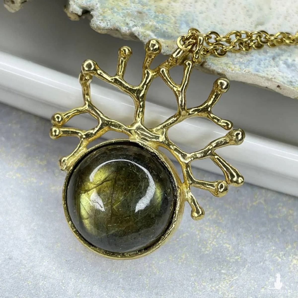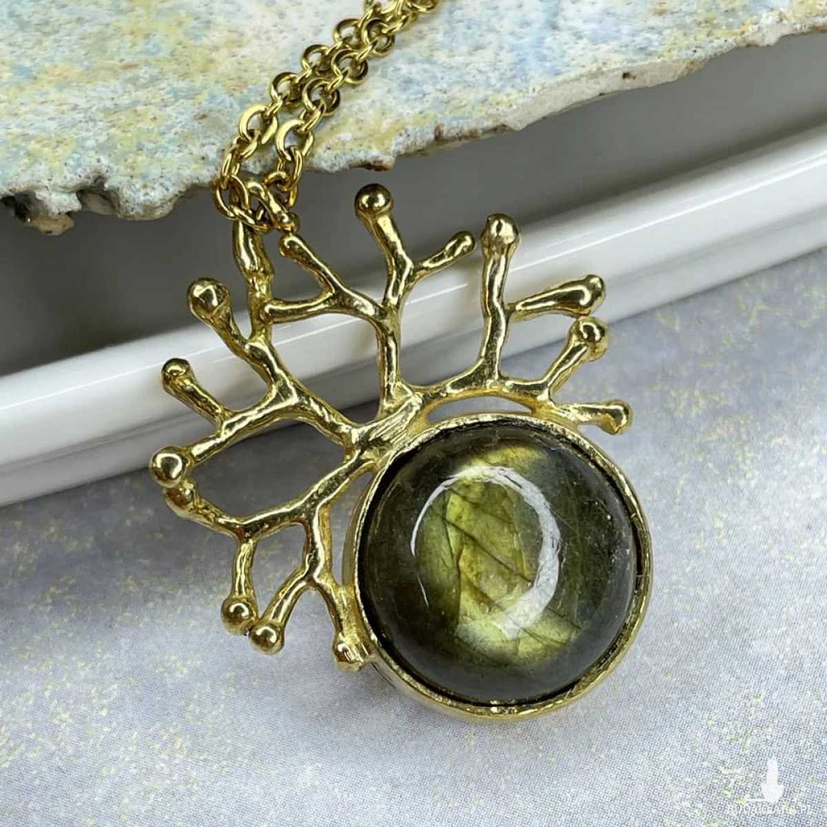 Zachwycający naszyjnik „Korona Nocy” to propozycja dla osób, które szukają w biżuterii nie tylko elegancji, ale też wyjątkowego wyrazu. Centralnym punktem jest labradoryt – kamień, który mieni się różnymi odcieniami, przywodzącymi na myśl zorzę polarną. Oprawiony w misternie uformowaną mosiężną koronę i zawieszony na łańcuszku, tworzy formę pełną tajemniczości i subtelnego blasku. Każdy egzemplarz powstaje ręcznie z dużą dbałością o detale, co sprawia, że naszyjnik nabiera indywidualnego charakteru i wyjątkowości. To dodatek, który sprawdzi się zarówno na co dzień, jak i przy szczególnych okazjach, podkreślając osobisty styl. Materiał: mosiądz Kamień: labradoryt Wykończenie: połysk Wielkość wisiora: ok. 3,5 × 2,8 cm Średnica kamienia: 15 mm Waga wisiora: ok. 5,8 g Długość łańcuszka: 50 cm Naszyjnik zostanie zapakowany w eleganckie pudełeczko jubilerskie. Kolory na zdjęciach mogą delikatnie różnić się od rzeczywistych ze względów na indywidualne ustawienia monitorów.