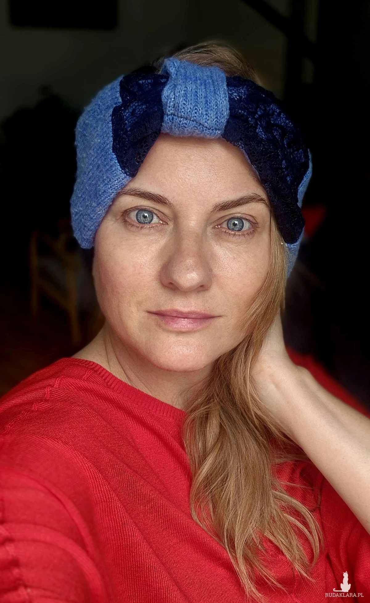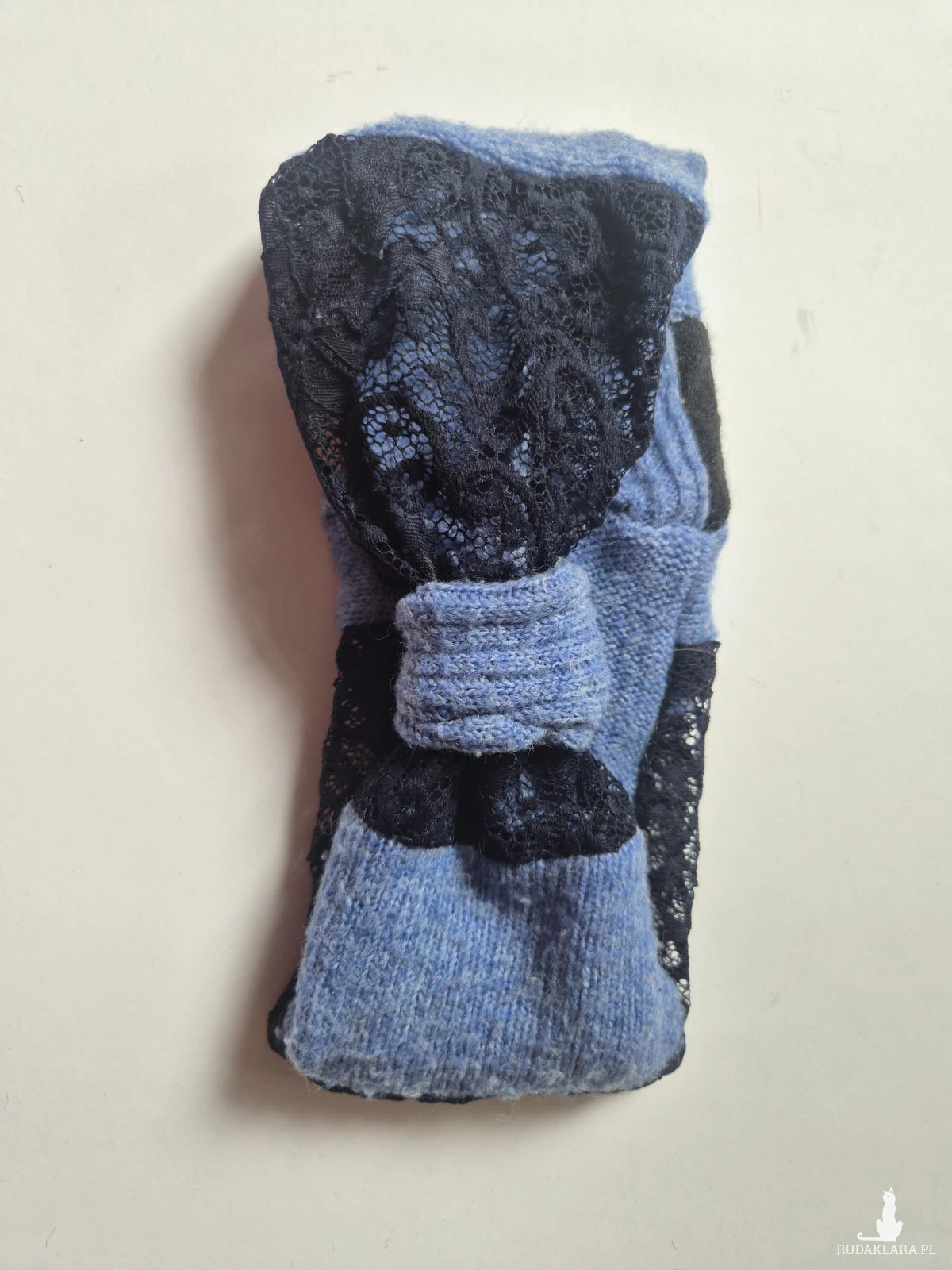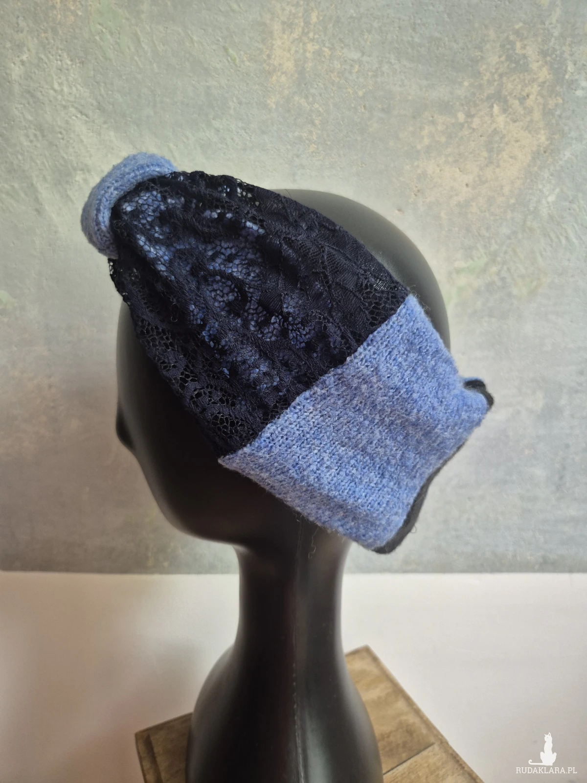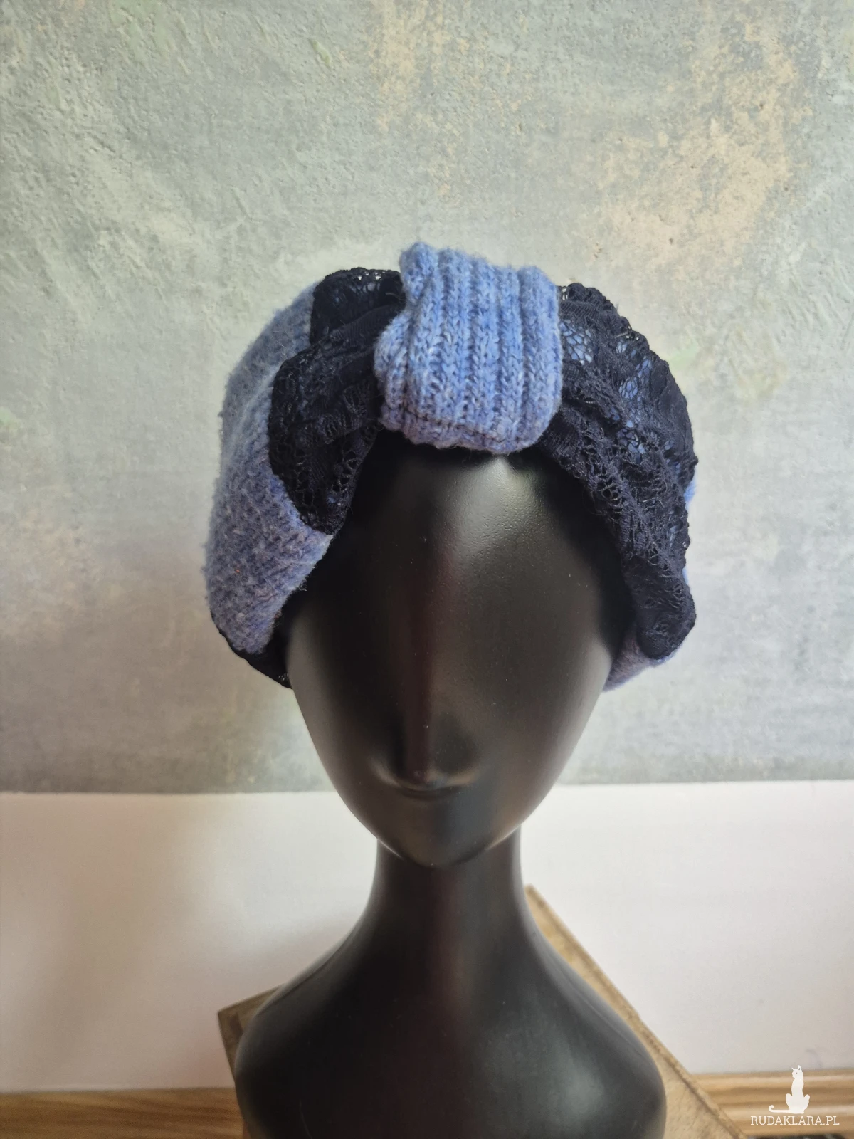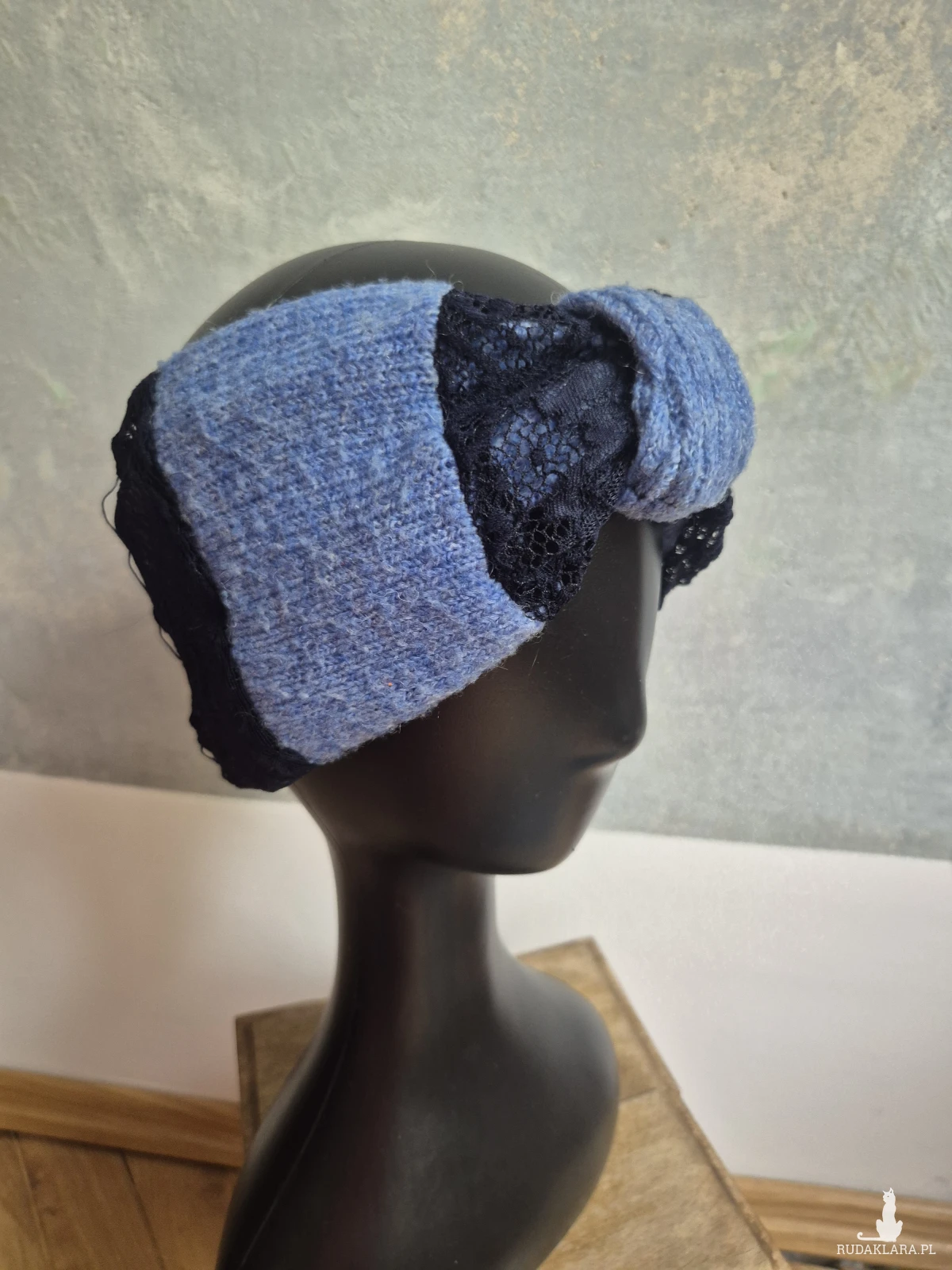 Opaska w odcieniach niebieskiego i granatu ciepła połączenie wełny i koronki rozmiar uniwersalny Box A1