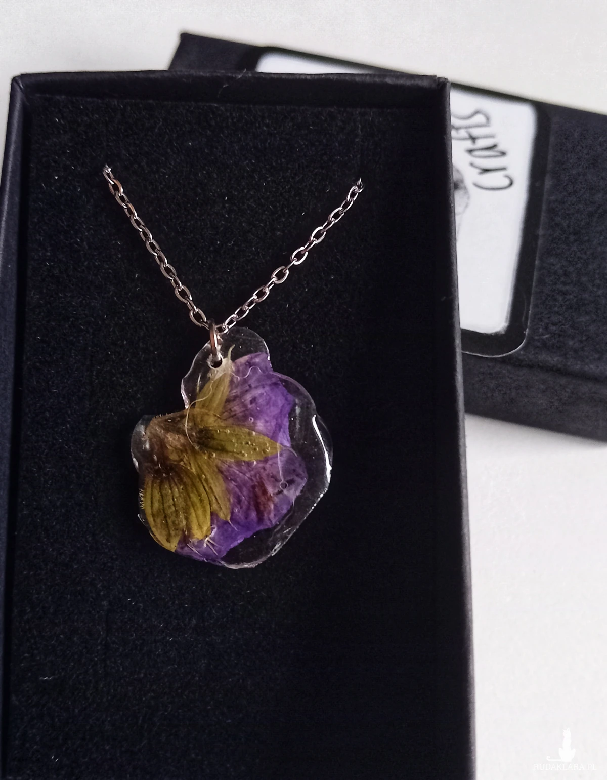 Odkryj subtelny urok natury zamknięty w eleganckiej formie. Ten unikalny naszyjnik to harmonijne połączenie estetyki rękodzieła i delikatnego piękna polnych kwiatów. Każda sztuka jest wykonana ręcznie z najwyższą starannością, dzięki czemu zyskujesz jedyny w swoim rodzaju dodatek do swojej kolekcji biżuterii.