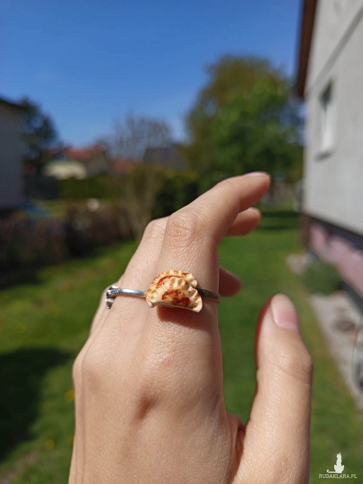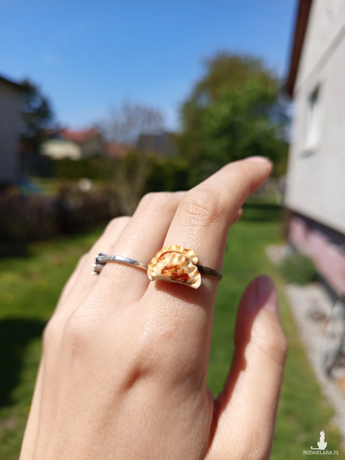 ręcznie rzeźbiony pierscionek z smażonymi piergami, osadzone na mosiężnym pierścieniu