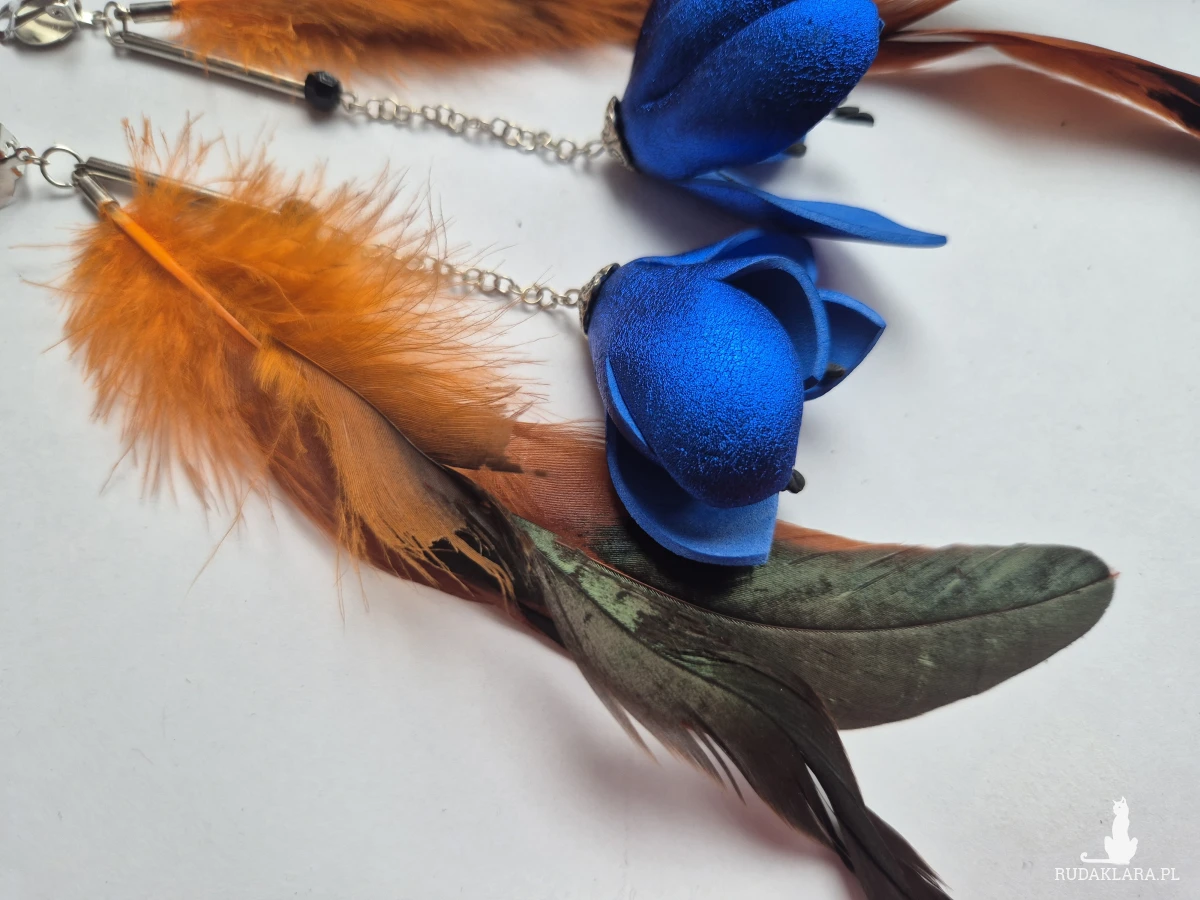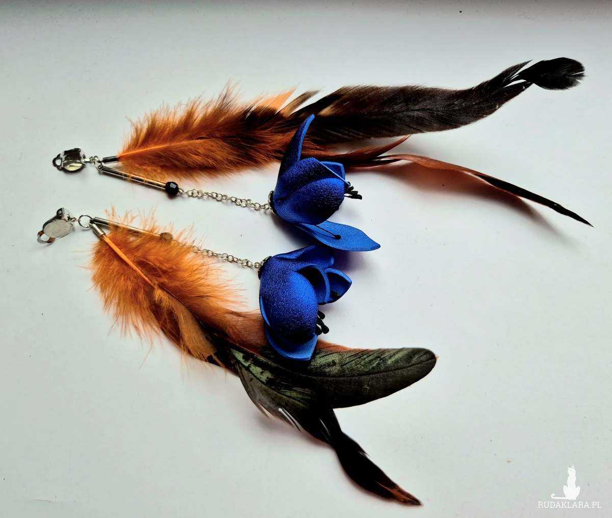 Klipsy lekkie kolorowe długie pióra i kwiaty niezwykle widowiskowe polecam