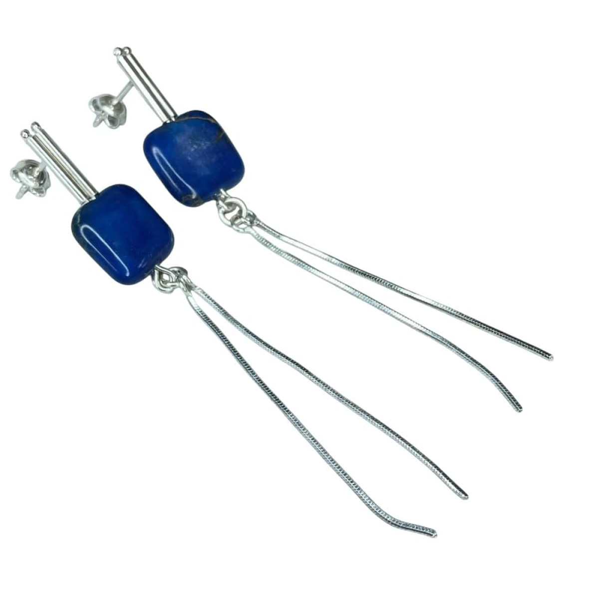 Kolczyki z jaspisem cesarskim i srebrem to połączenie elegancji i nowoczesnego wzornictwa. Długie, smukłe formy, zakończone kamieniami o intensywnym kolorze, przyciągają spojrzenie i podkreślają indywidualny styl. Geometryczna forma jaspisu zestawiona z delikatnym ruchem srebrnych łańcuszków tworzy subtelną grę ruchów, która dodaje kolczykom lekkości i dynamiki. To propozycja dla kobiet, które lubią biżuterię z charakterem – prostą w formie, a zarazem pełną wyrazu.