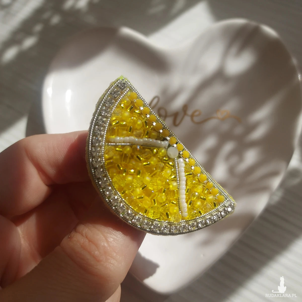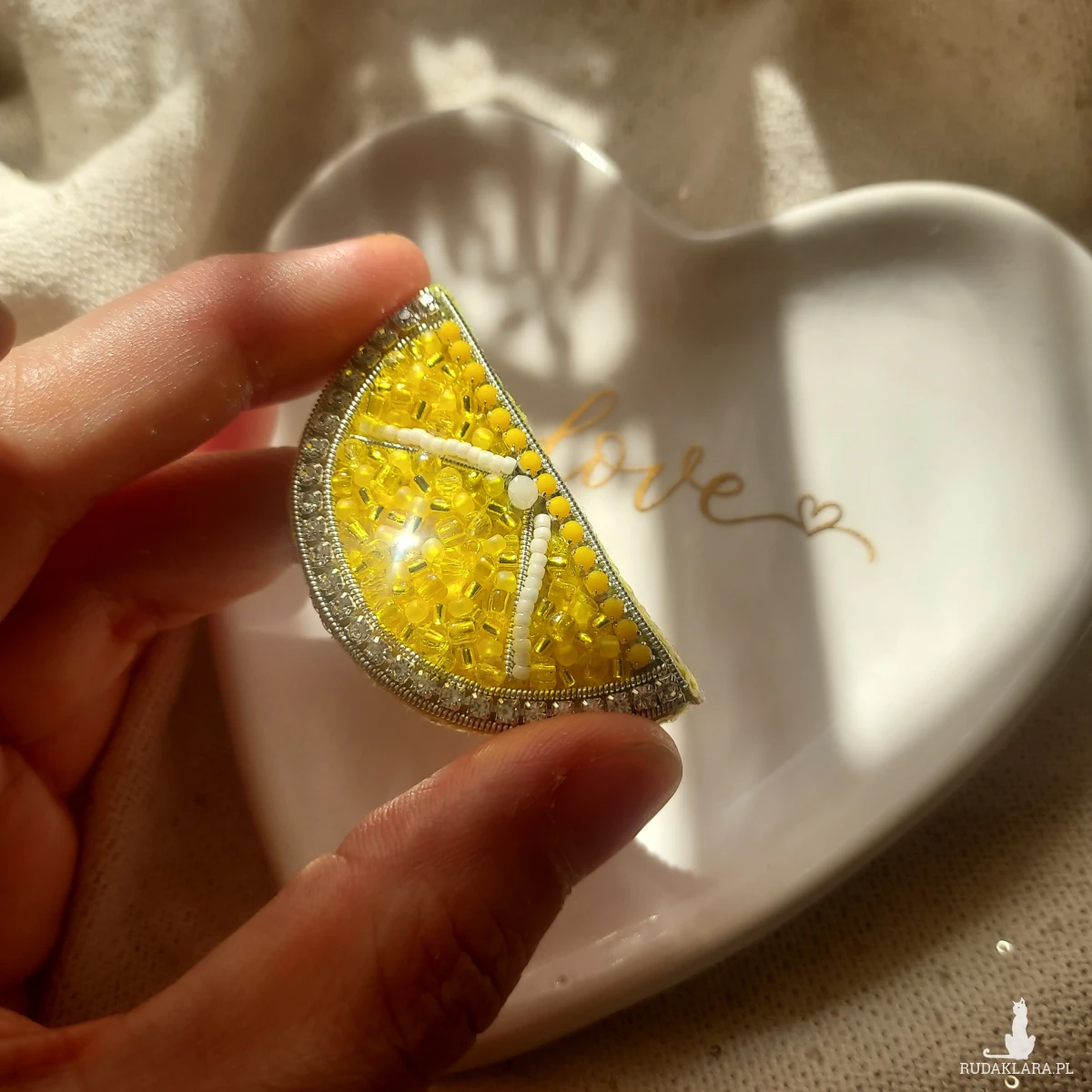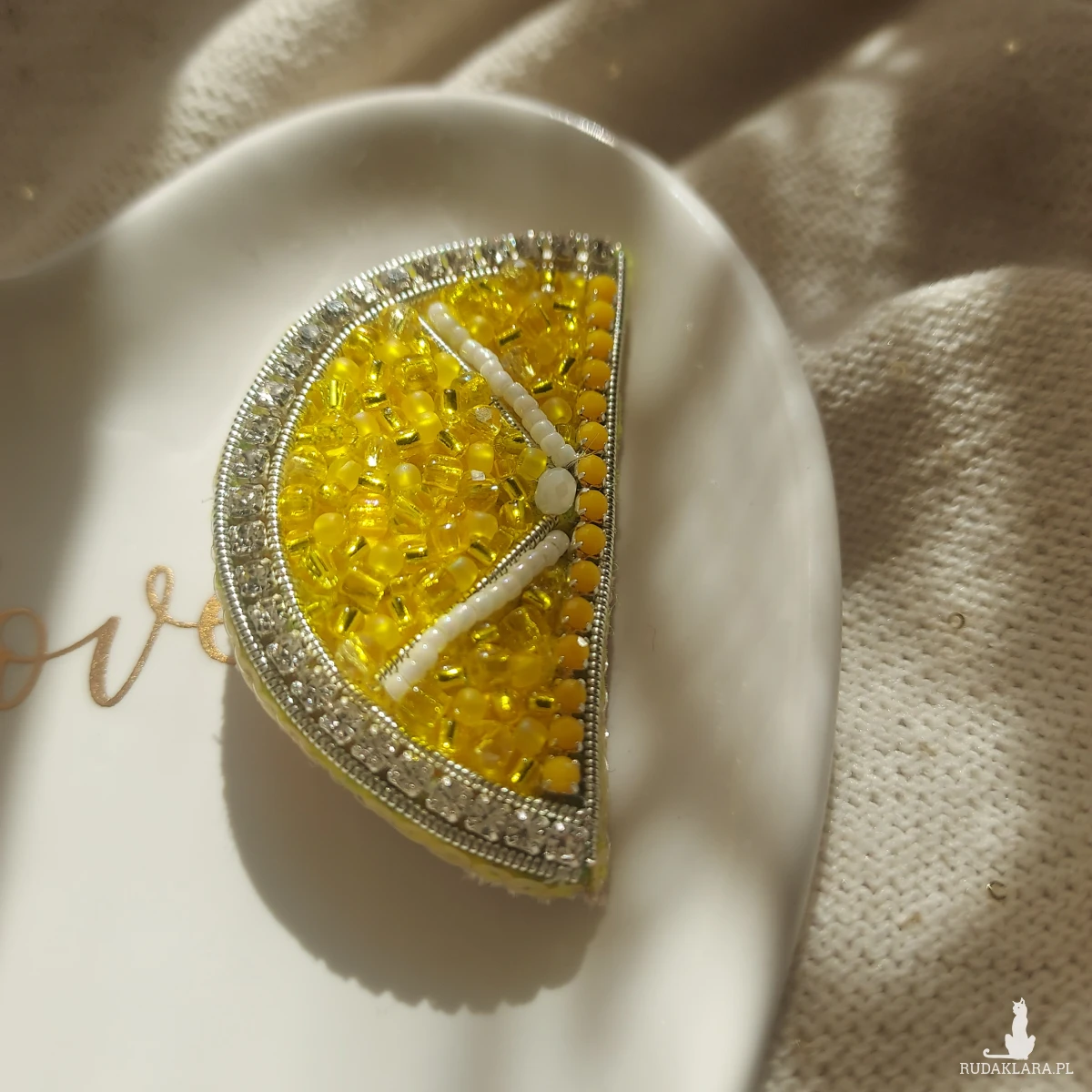 Wyjątkowa, lęka, niepowtarzalna broszka plasterek CYTRYNY - to idealny wybór dla kobiet, które lubią bawić się modą i podkreślać swój indywidualny styl.