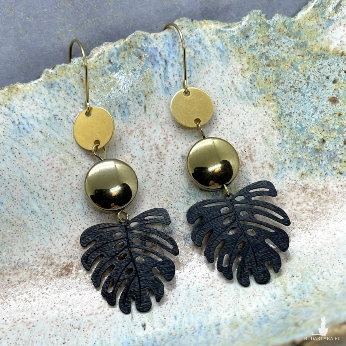 Zmysłowe i wyraziste – te długie kolczyki w tonacji złota i czerni to propozycja dla kobiet, które lubią biżuterię z charakterem. Połączenie hematytów o średnicy 12 mm z ozdobnymi elementami z mosiądzu tworzy intrygującą, nowoczesną kompozycję. Blaszka wykonana została z mosiądzu pokrytego 23-karatowym złotem, natomiast zawieszka w kształcie liścia monstery – z mosiądzu patynowanego na głęboką czerń. Złoto i czerń harmonijnie się uzupełniają, tworząc elegancki kontrast idealny na wieczorne wyjścia.