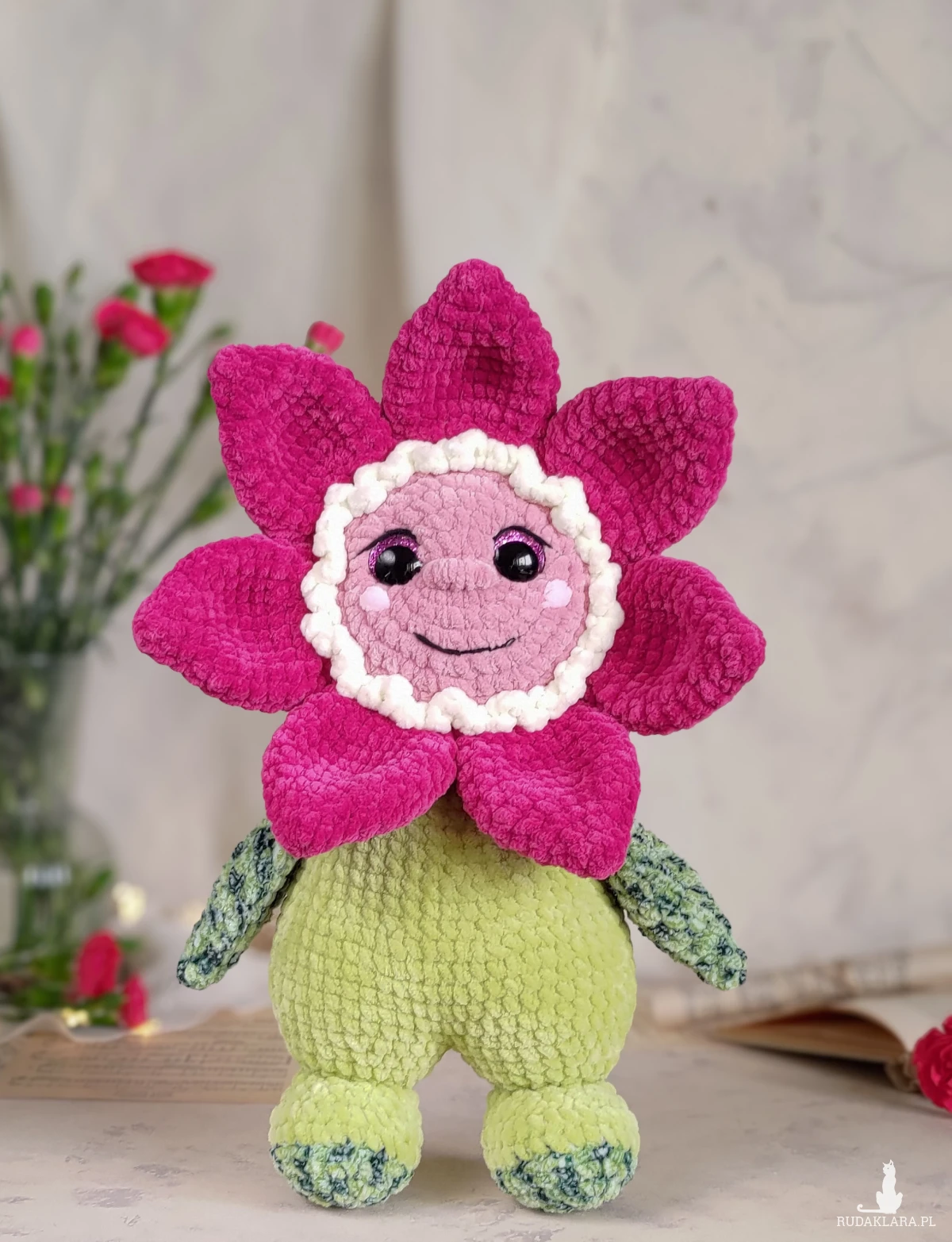 Duży kwiatek pluszowy wykonany na szydełku to idealny prezent na wiele różnych świąt!