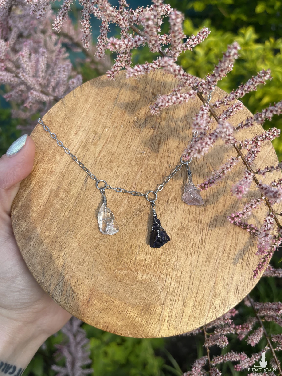 Stal chirurgiczna + kryształy. Możliwość zrobienia naszyjnika na wymiar, napisz w wiadomości wybrana długość. W przypadku braku informacji, naszyjnik regulowany do ok 40 cm.