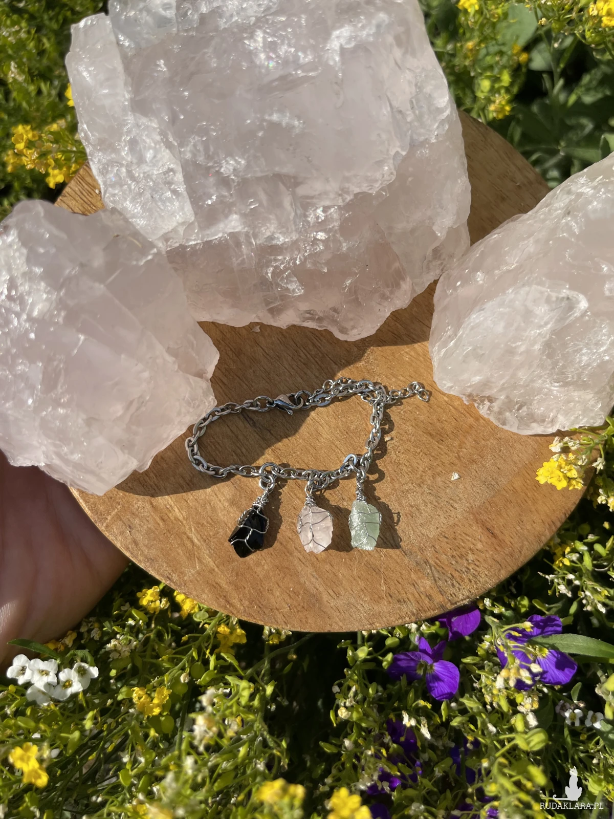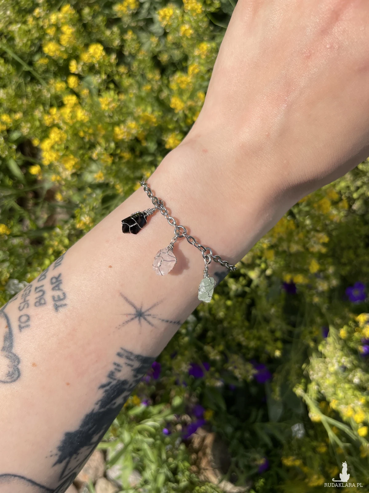 Stal chirurgiczna + kryształy. Możliwość zrobienia bransoletki na wymiar, napisz w wiadomości wybraną długość. W przypadku braku informacji, bransoletka regulowana do ok 20 cm.