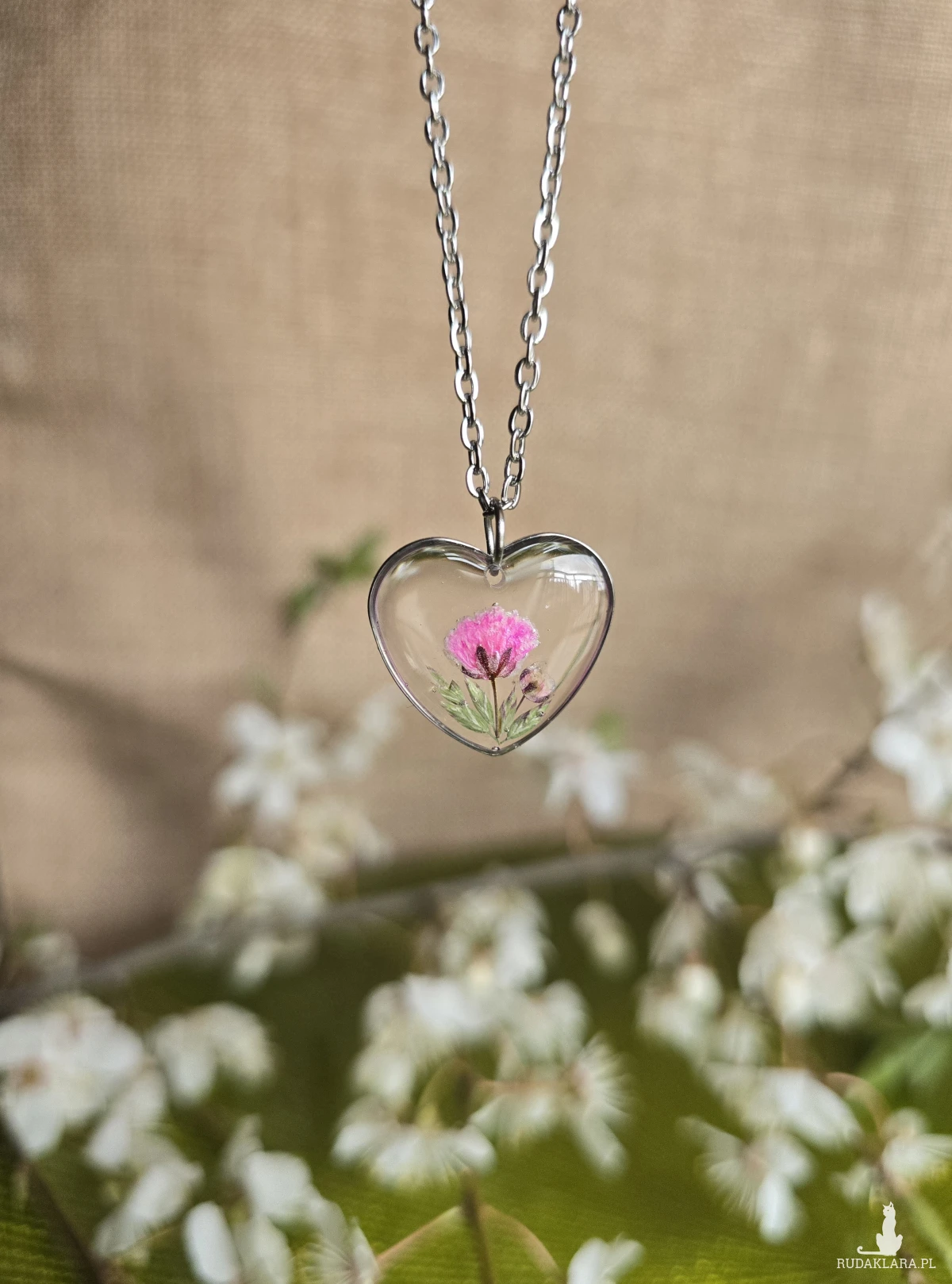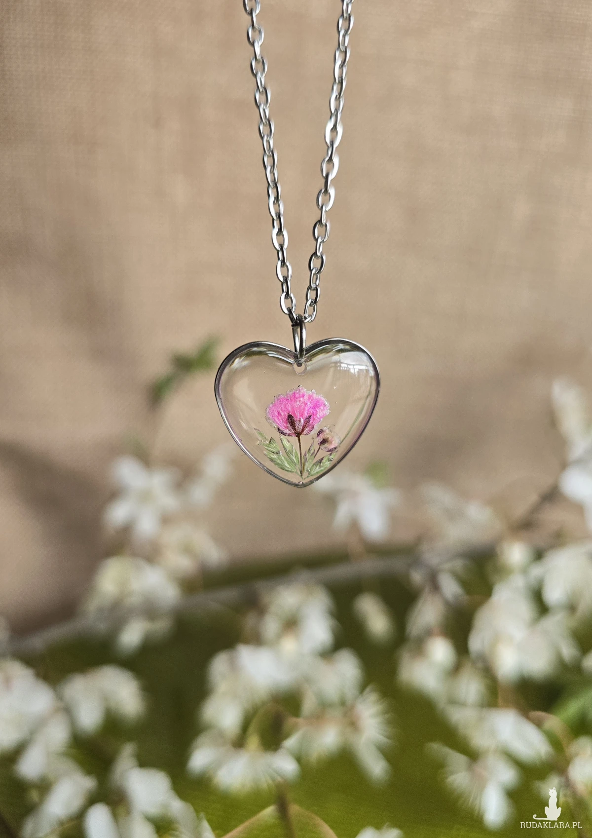 Srebrna zawieszka srebrny wisiorek kwiat naszyjnik żywica z żywicy kwiaty z kwiatami serce serduszko gipsówka różowa