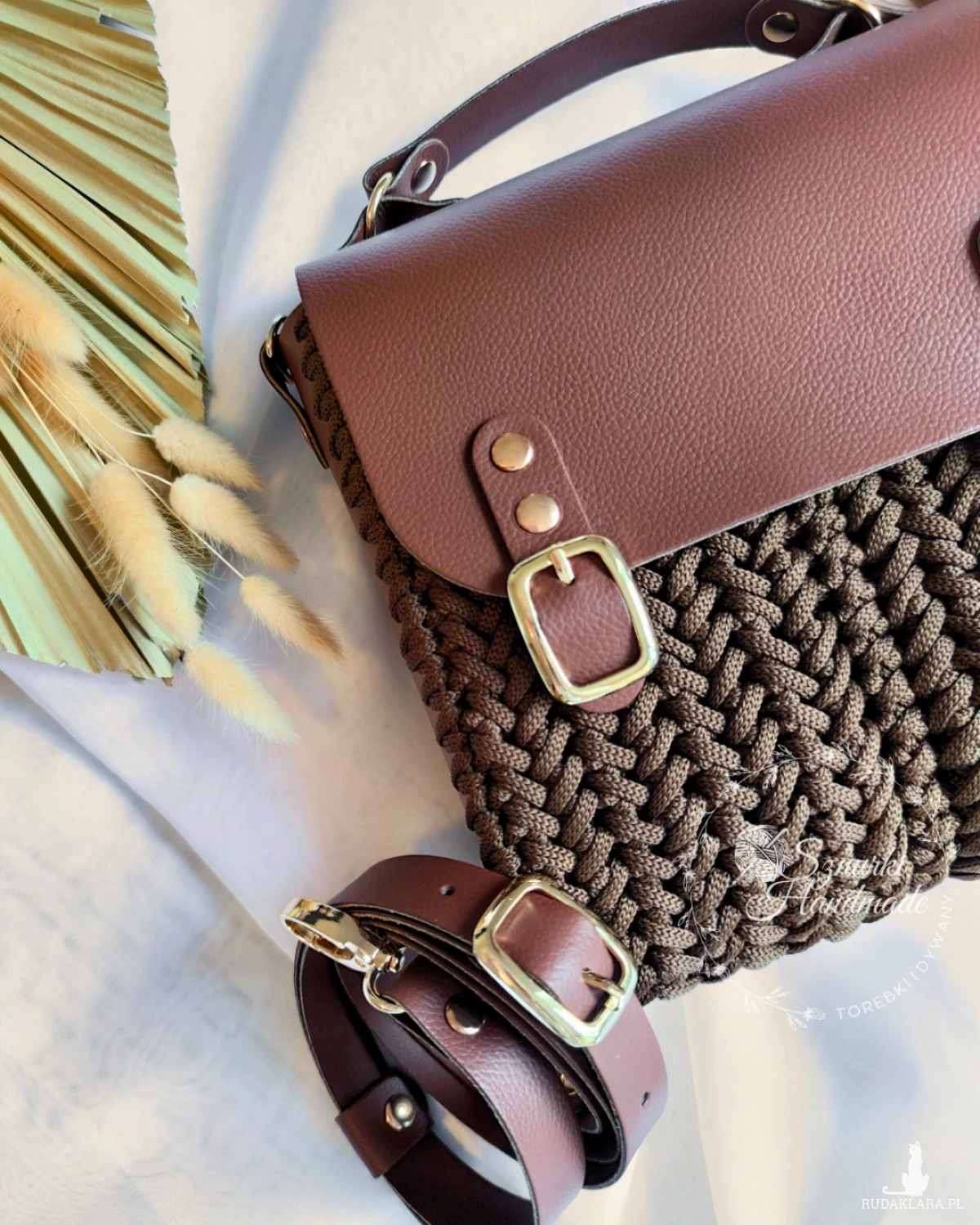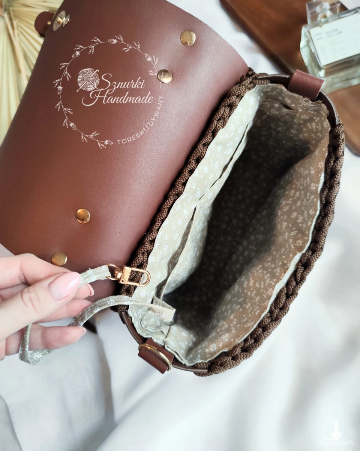 Torebka wykonana ręcznie, z dodatkiem skóry naturalnej. Bardzo wygodny model z uchwytem na klapce.