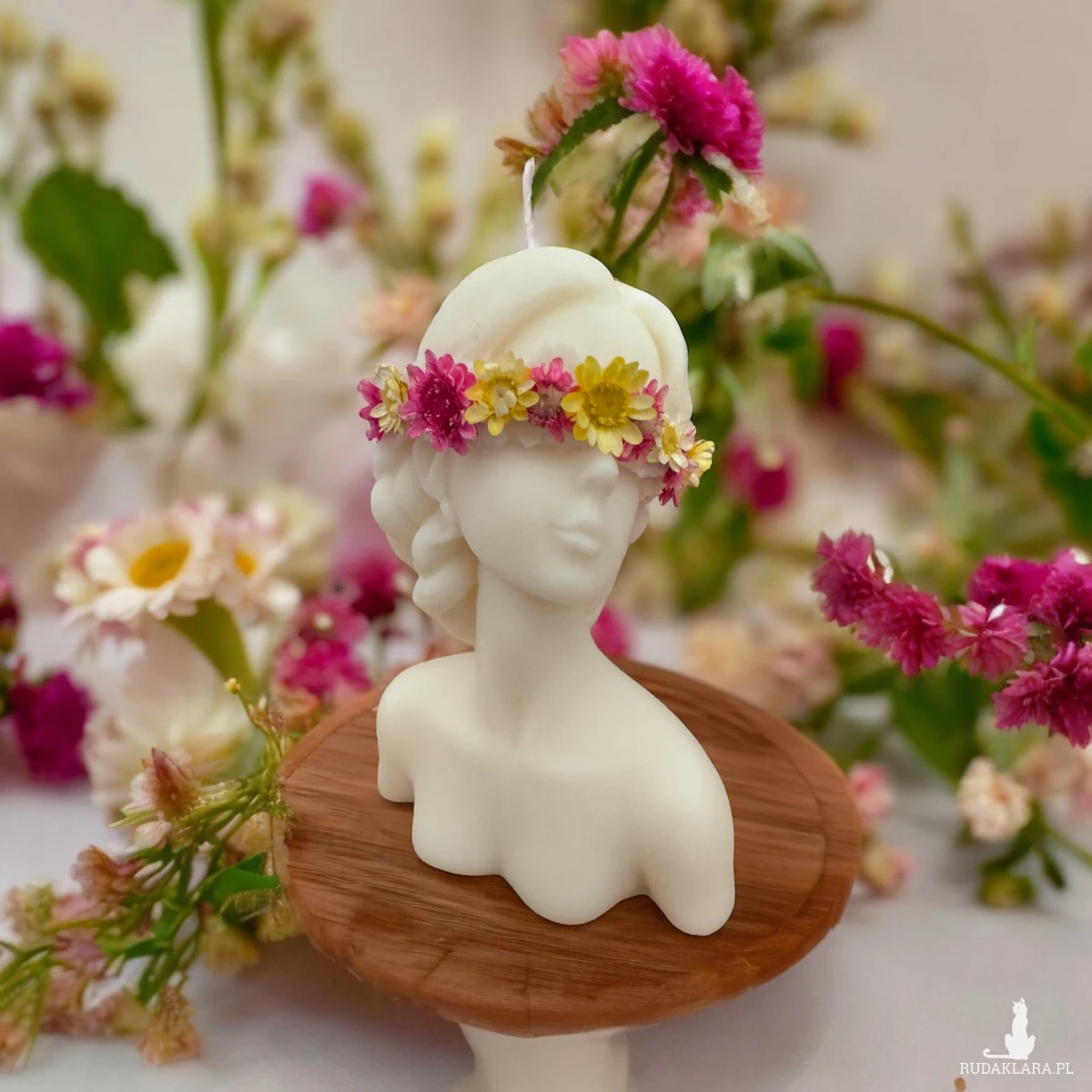 W tym ogłoszeniu świeca o unikalnym kształcie kobiety z suszonym wiankiem🌺