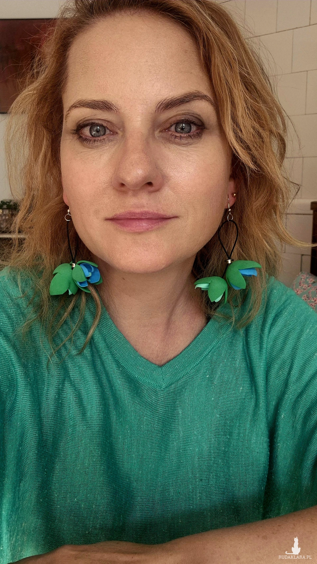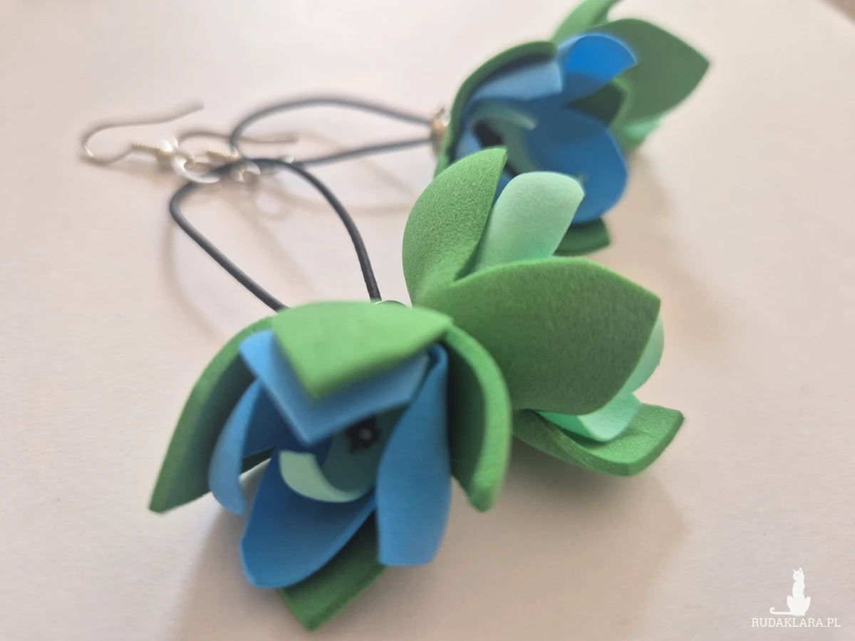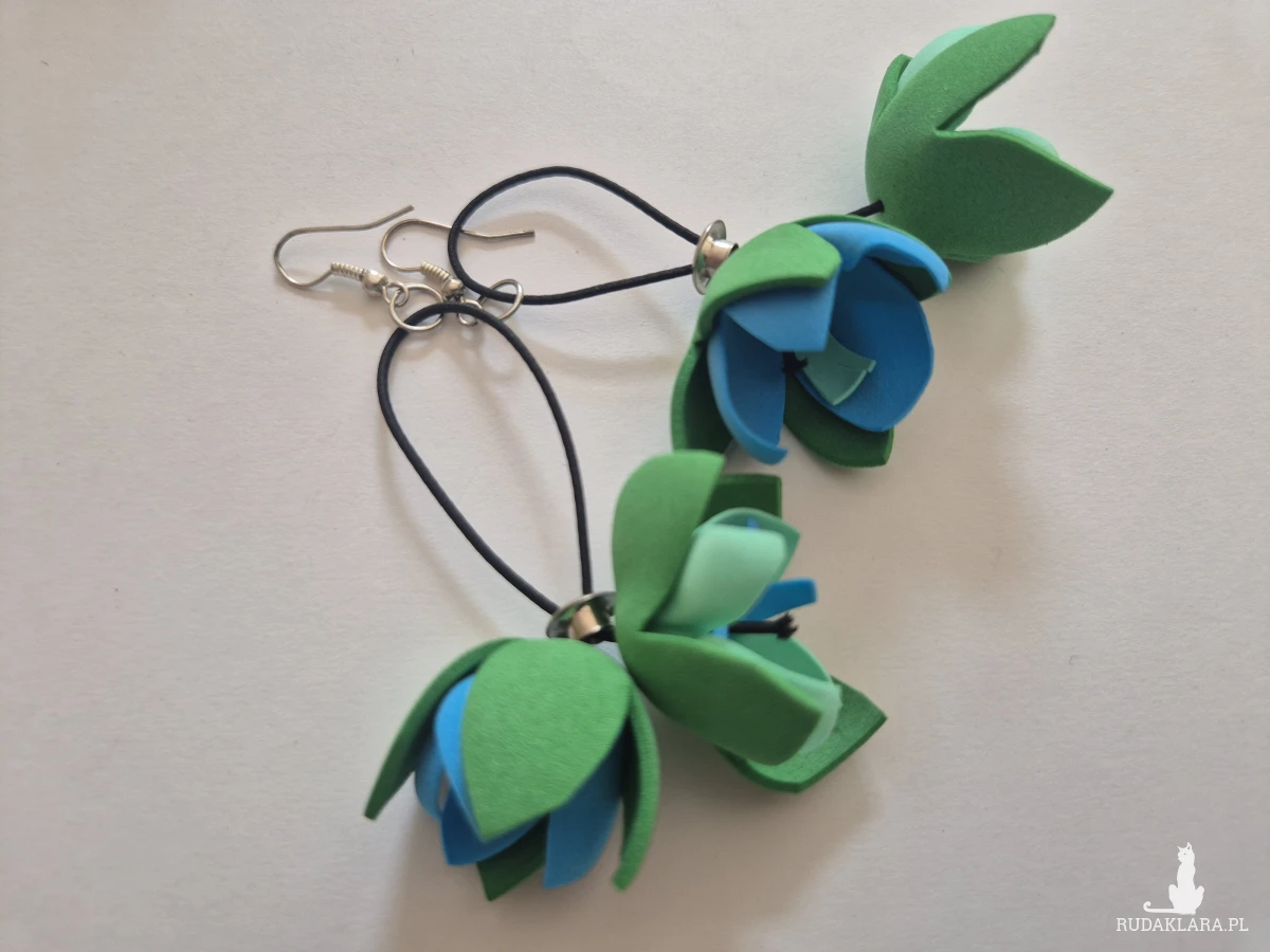 Kolczyki zielono-niebieskie kwiaty tulipany bardzo lekkie niezwykle widoczne,polecam