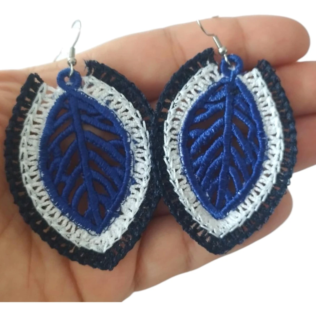 Kolczyki są haftowane (haft maszynowy). Haft jest gęsty, dobrze utrzymuje kształt i wygląd kolczyków. Haftowane kolczyki też są lekkie - to ich kolejny atut.