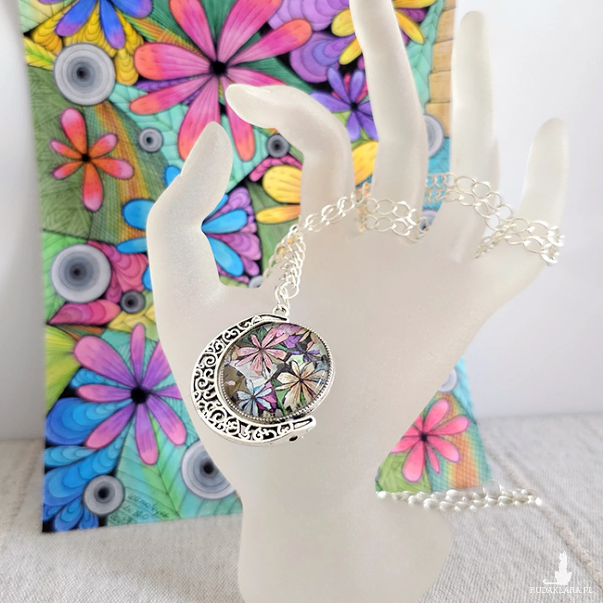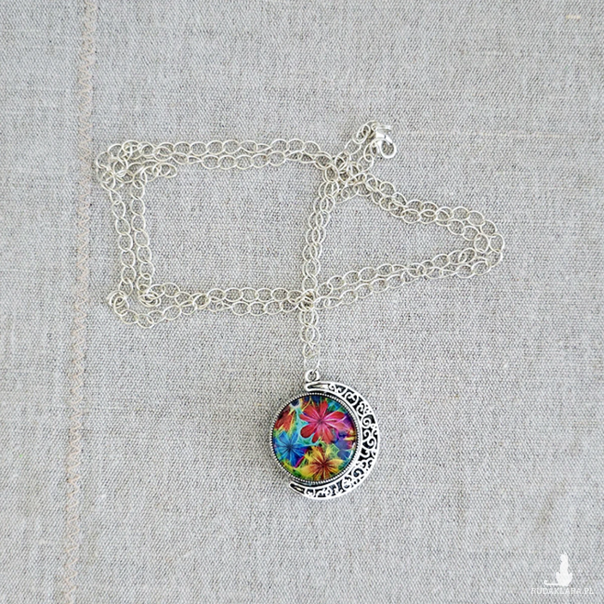 6784 długi, kolorowy naszyjnik z wisiorkiem; dwustronny wisiorek; kwiaty