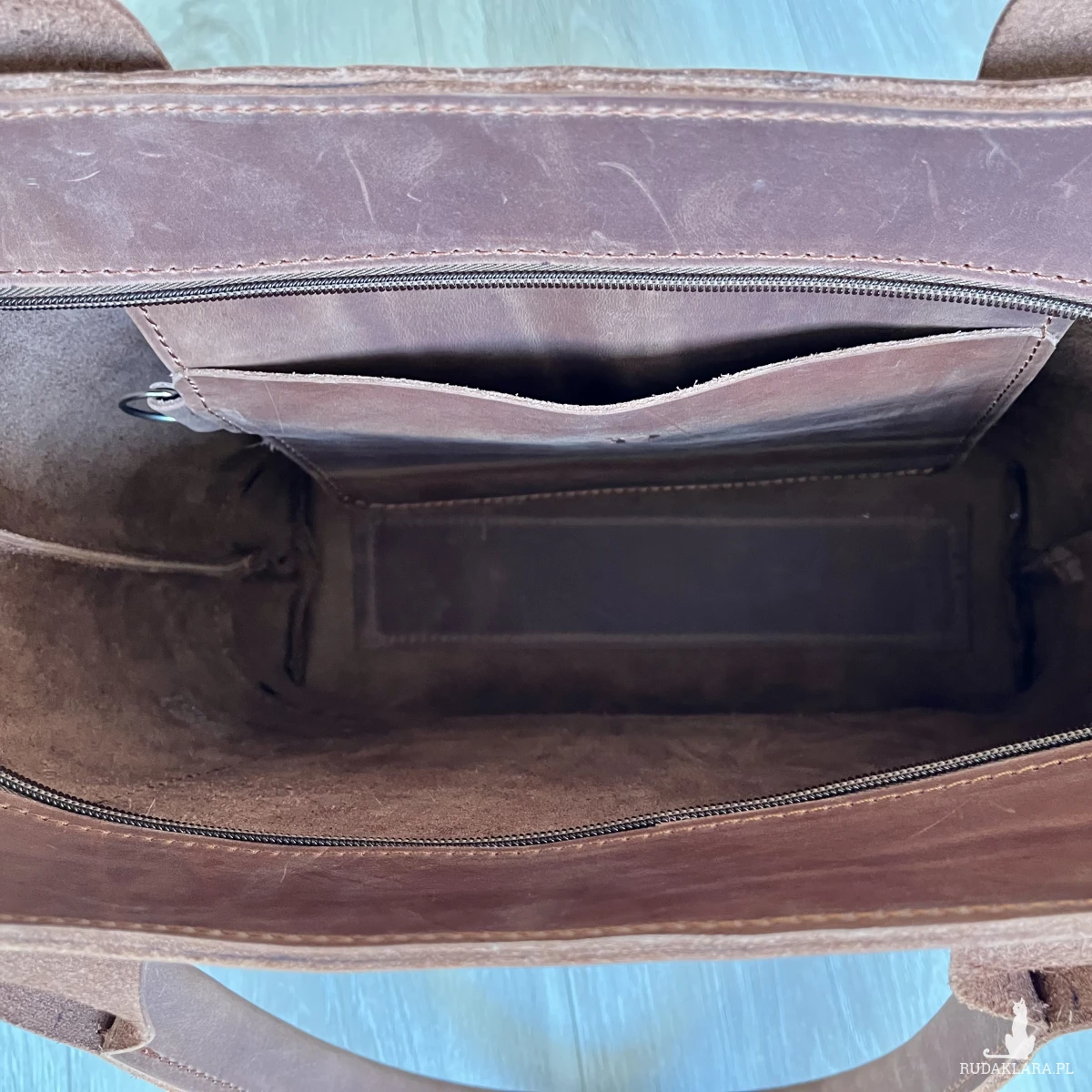 ✔ Trwałość - Wzmocnione dno z podwójnej warstwy skóry i surowa skóra wewnątrz gwarantują, że torba będzie służyć Ci latami.