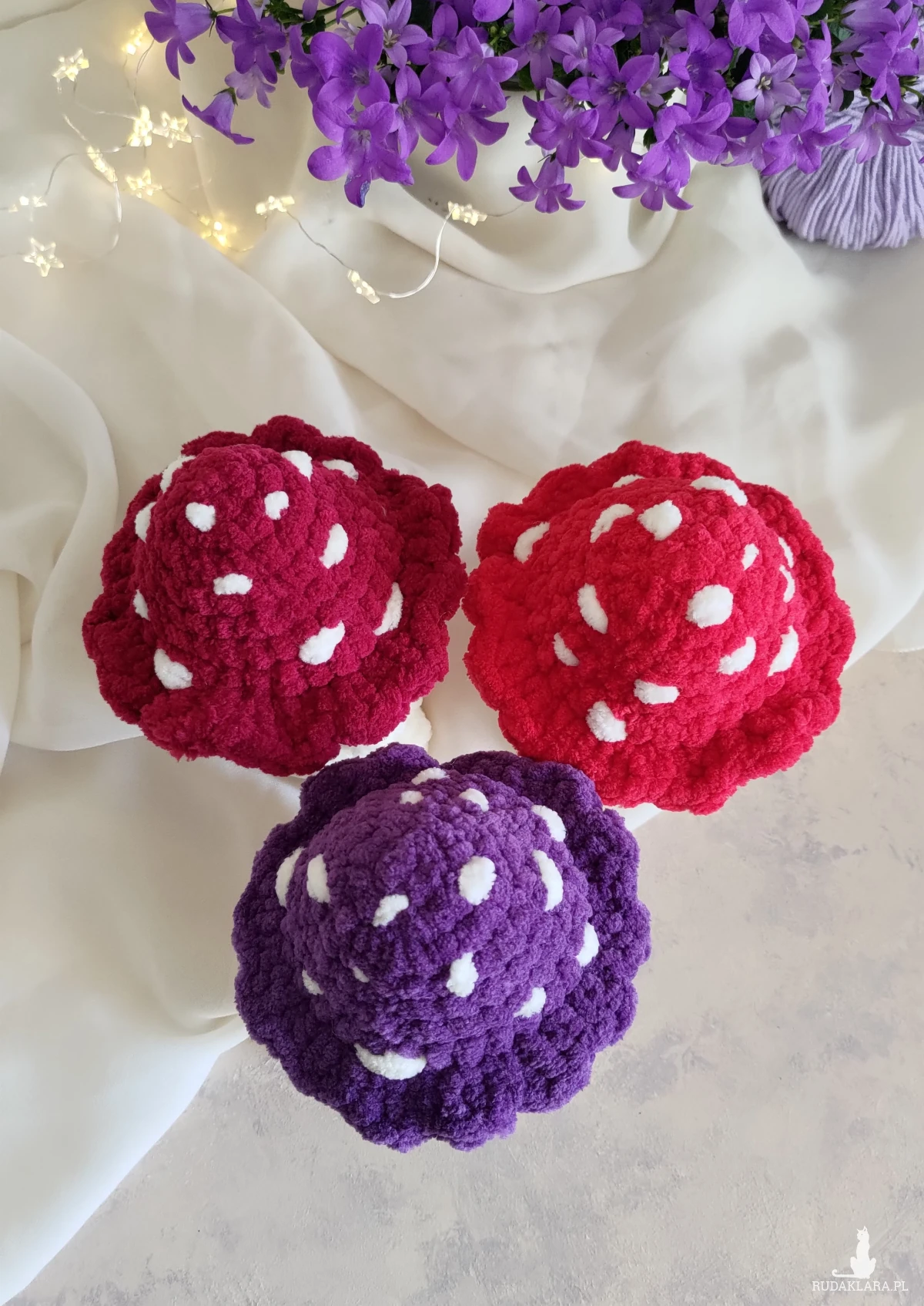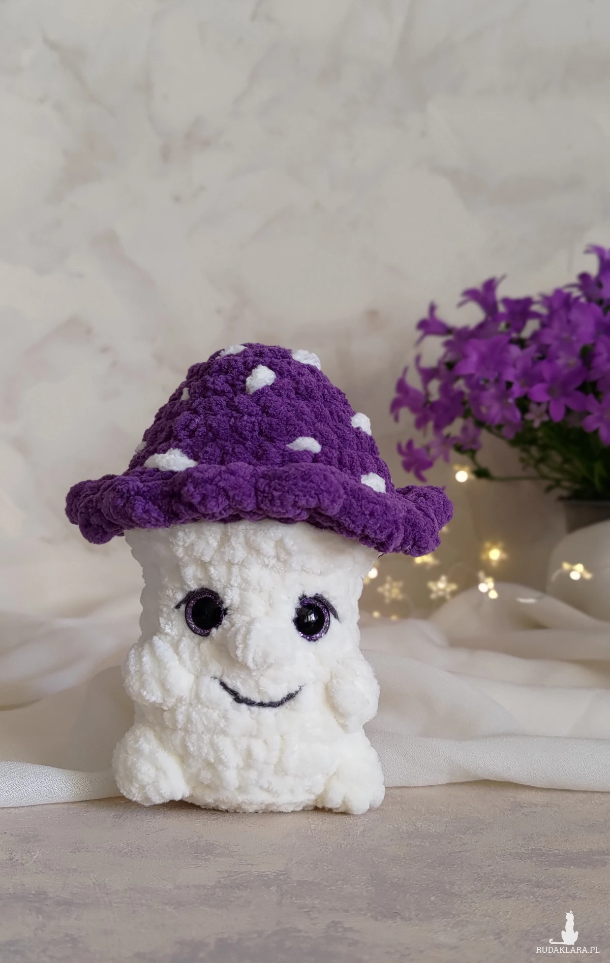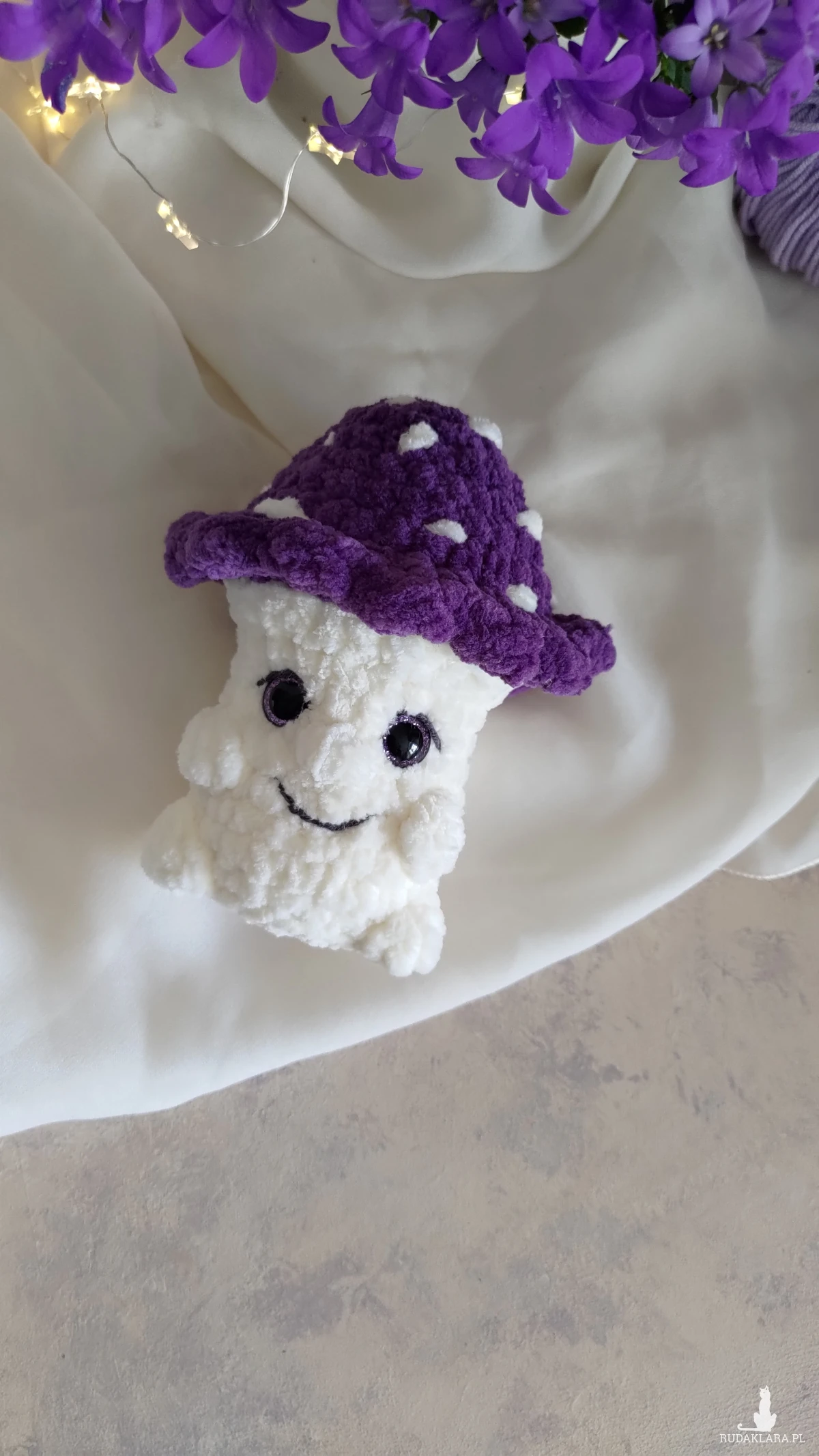 - Grzybek wykonany jest z pluszowej miękkiej włóczki i jest bardzo miękki w dotyku.