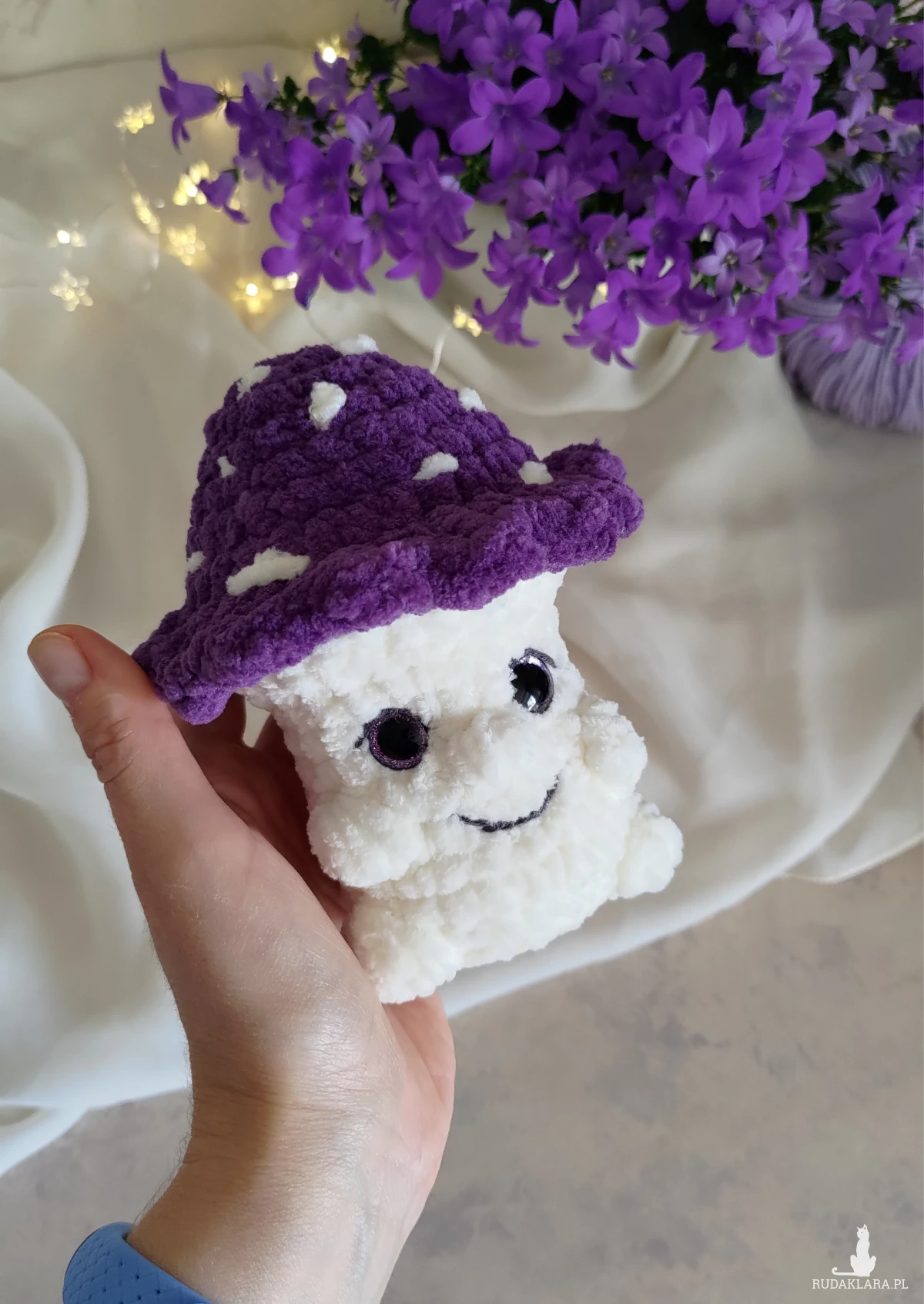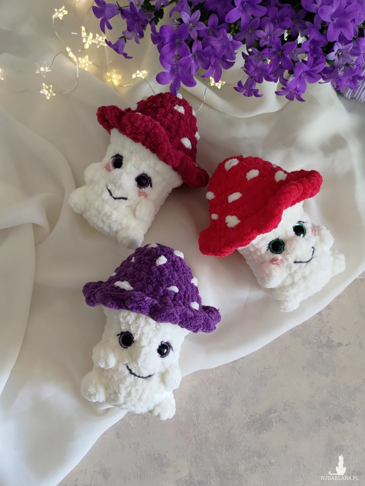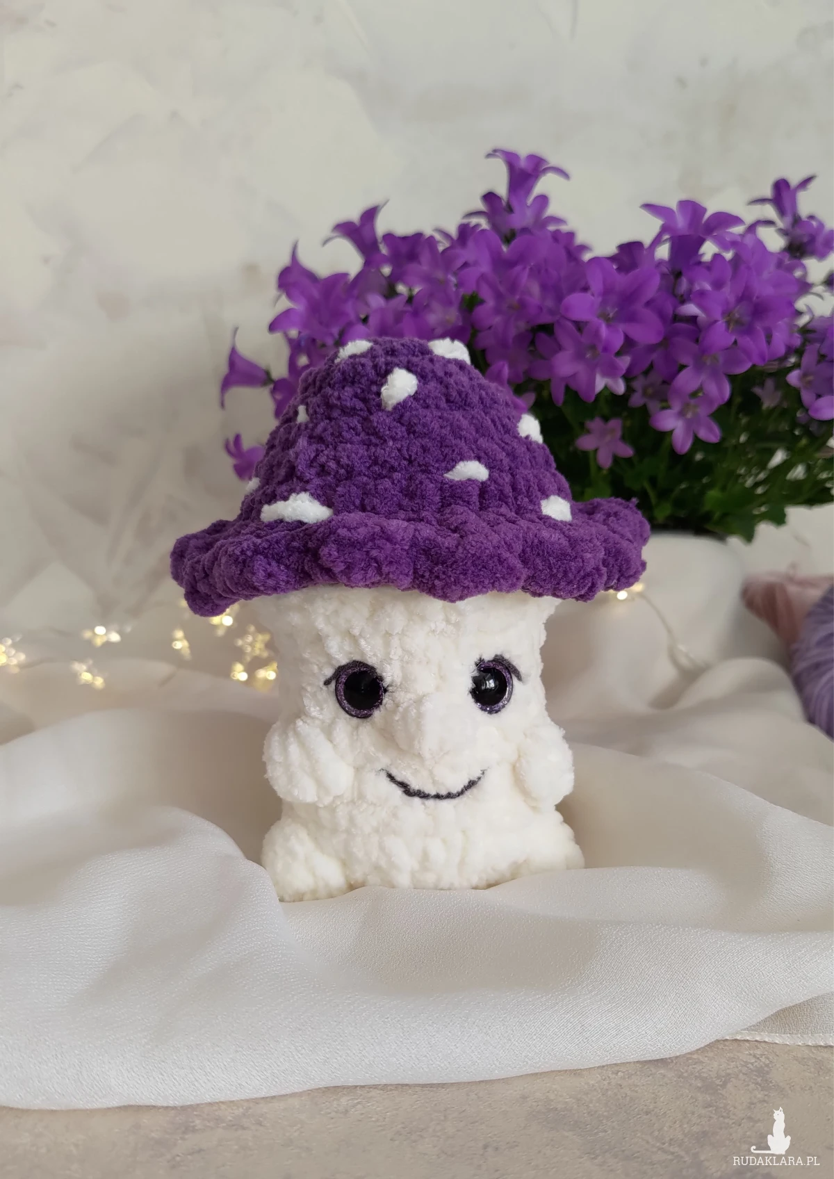- Grzybek wykonany jest z pluszowej miękkiej włóczki i jest bardzo miękki w dotyku.