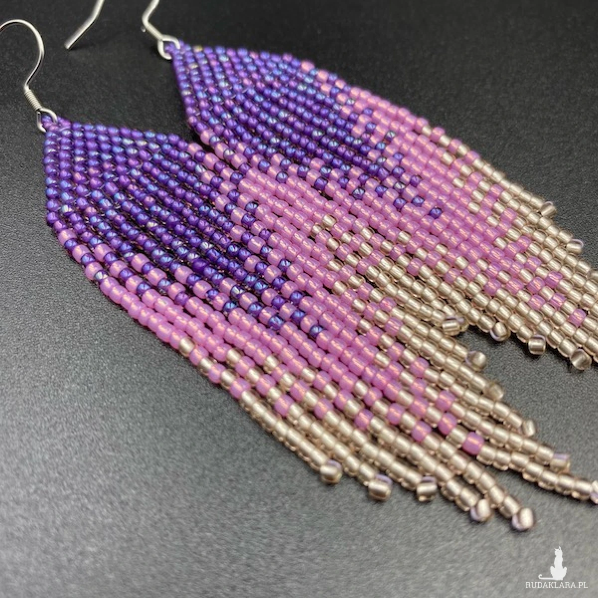 Etniczne kolczyki z efektem cieniowania wykonane ściegiem comanche tzw. cegiełkowym. W 100% utkane ręcznie z koralików TOHO 11. Każdą pracę wykonuję bardzo starannie.