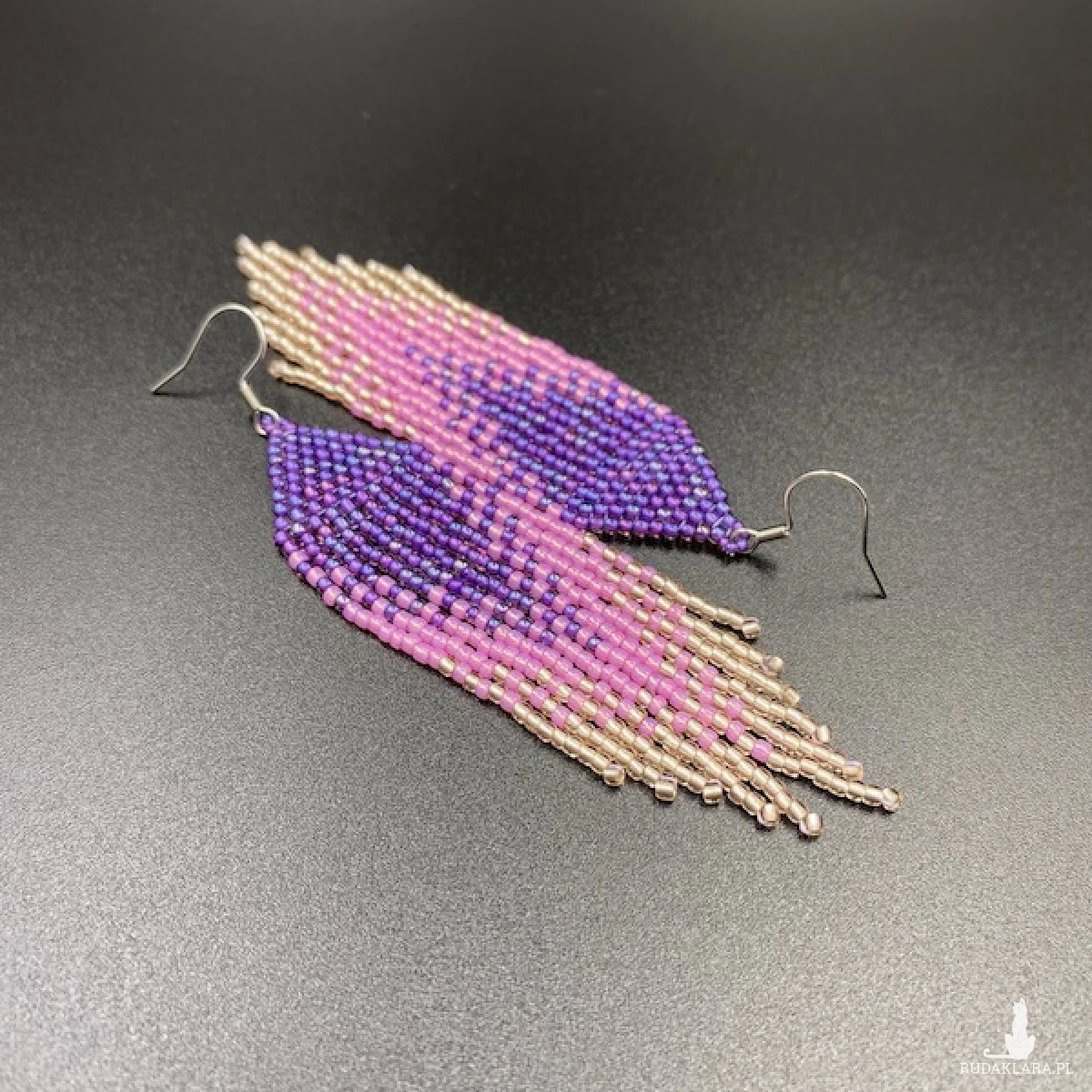 Kolory kolczyków: fioletowy, różowy, kryształowy szampański.
