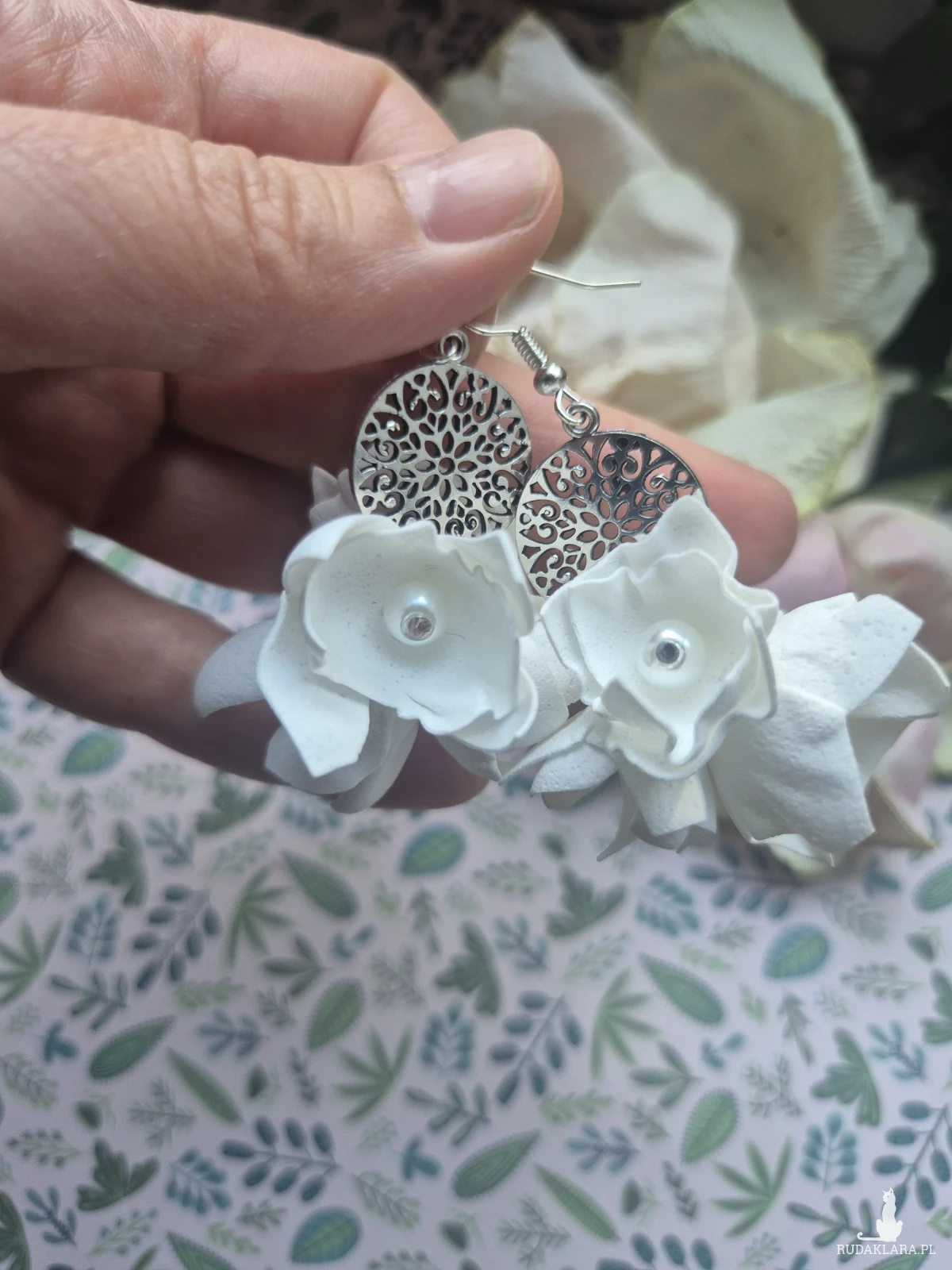 Kolczyki subtelne leciutkie kwiaty slubne polecam
