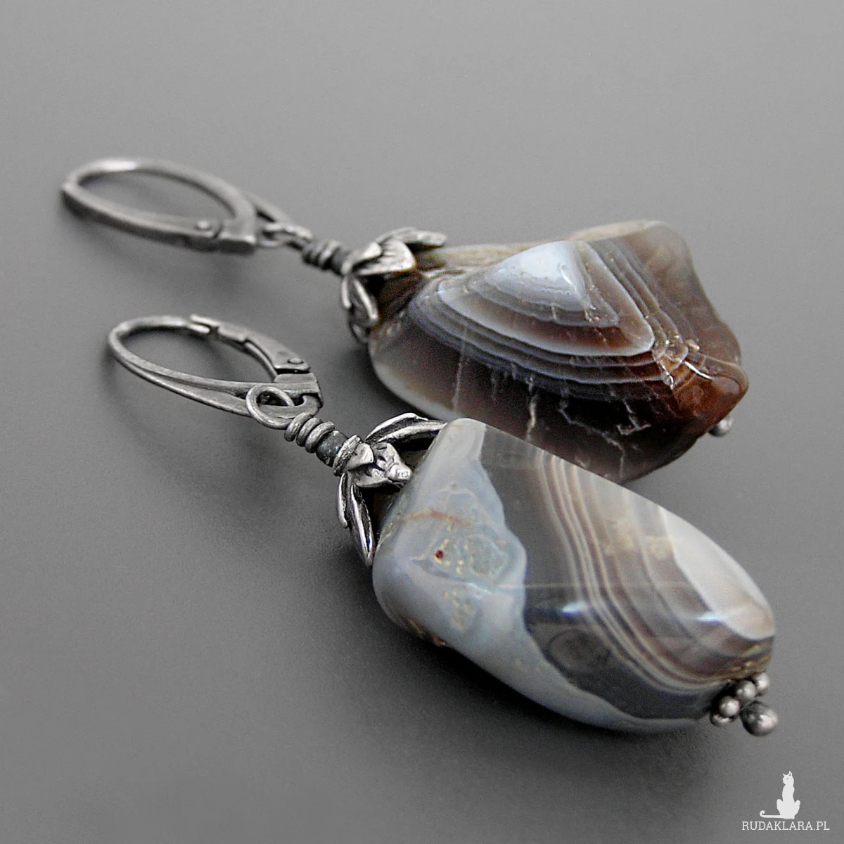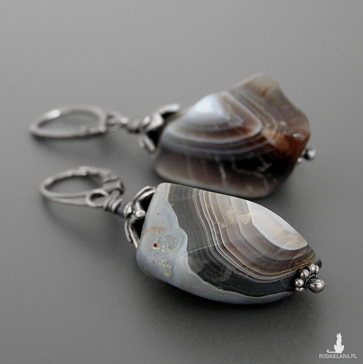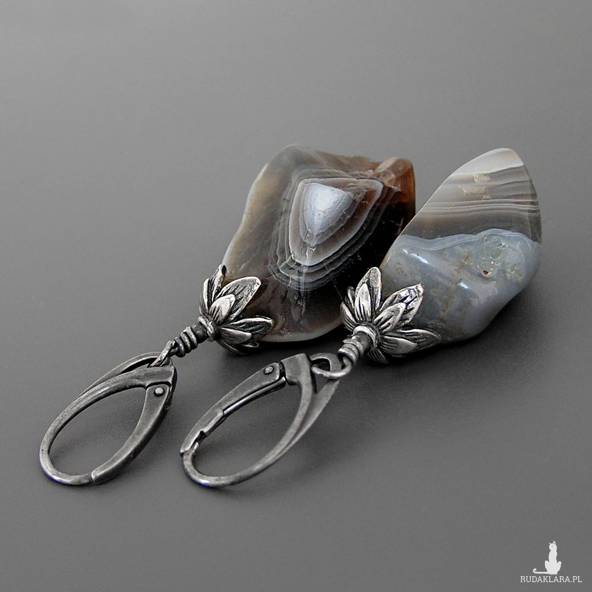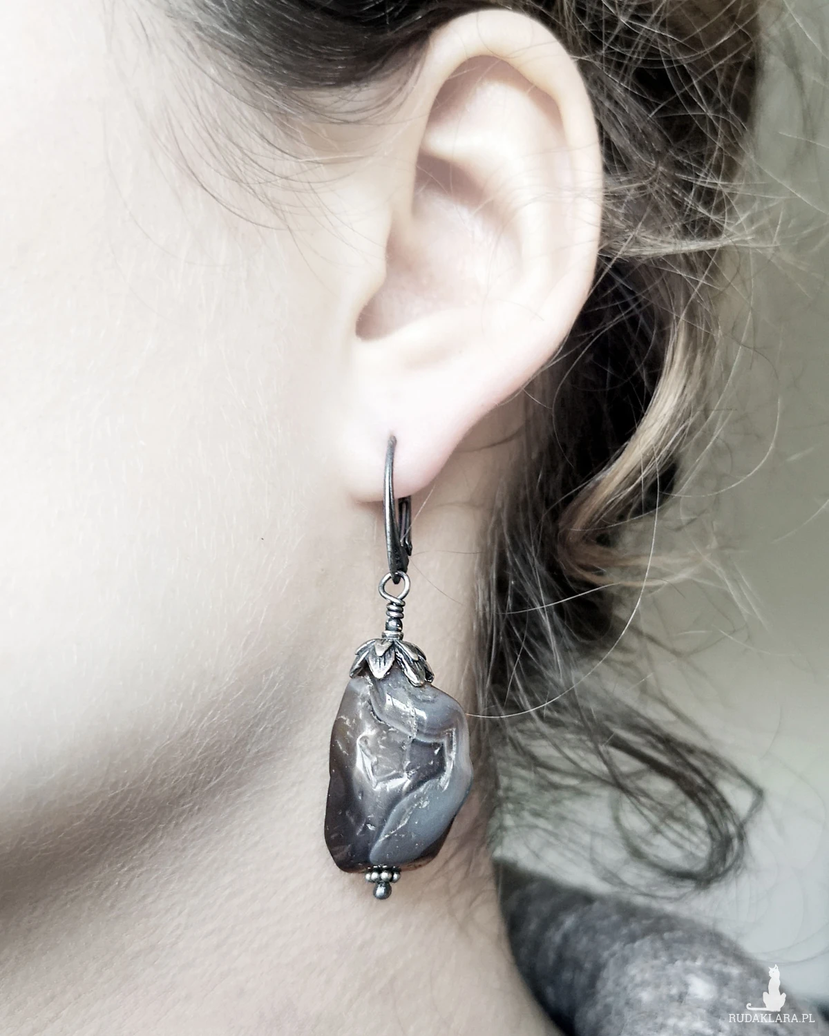 Kolczyki wykonane ze srebra próby 925, patynowane.