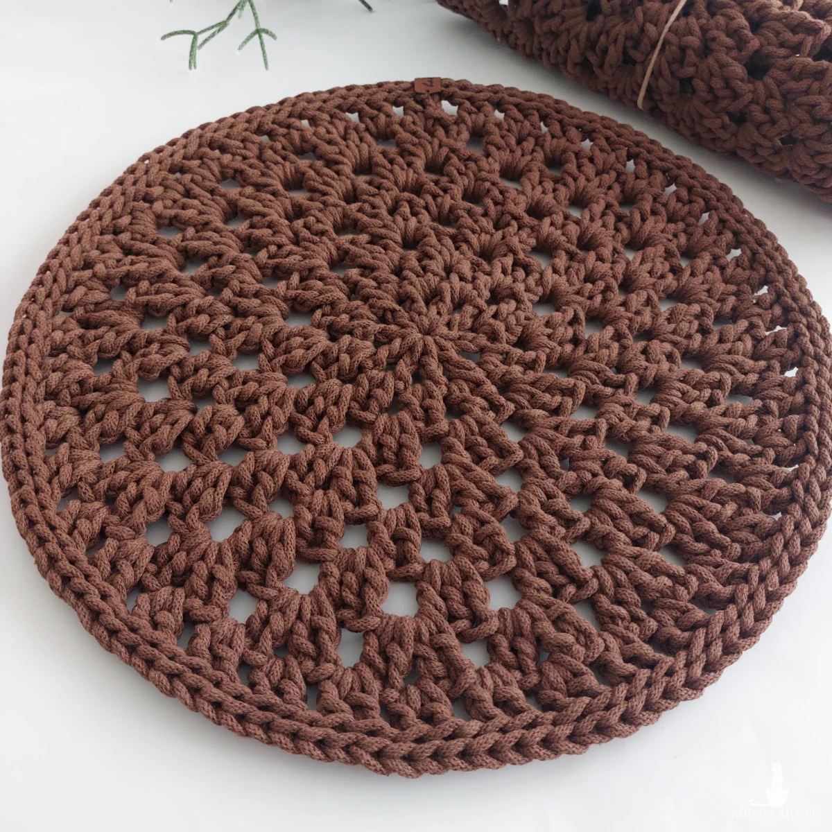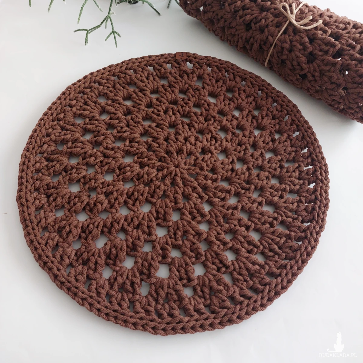 Do zaoferowania mam ażurowe podkładki pod talerz wykonane ze sznurka bawełnianego o śr 3 mm w kolorze kawa ( możliwość wykonania innego koloru)