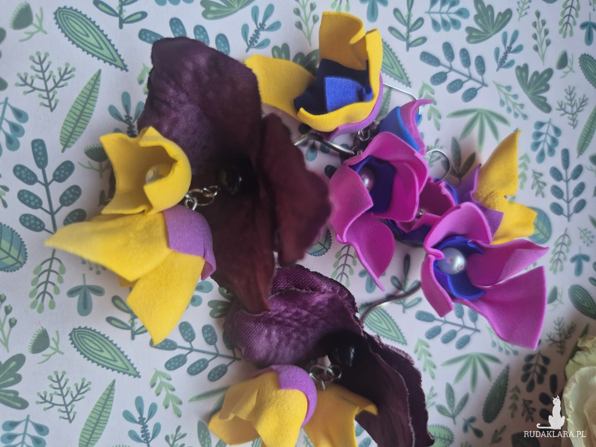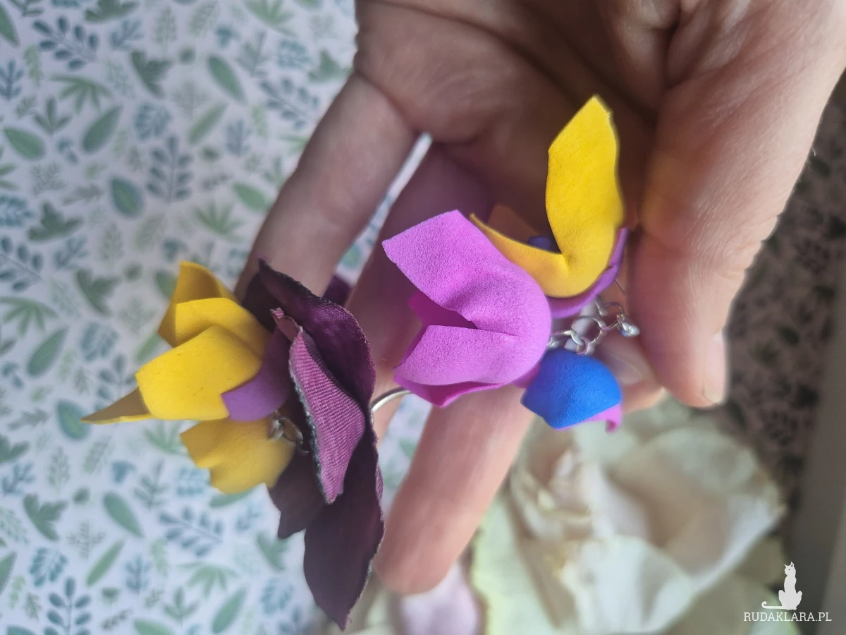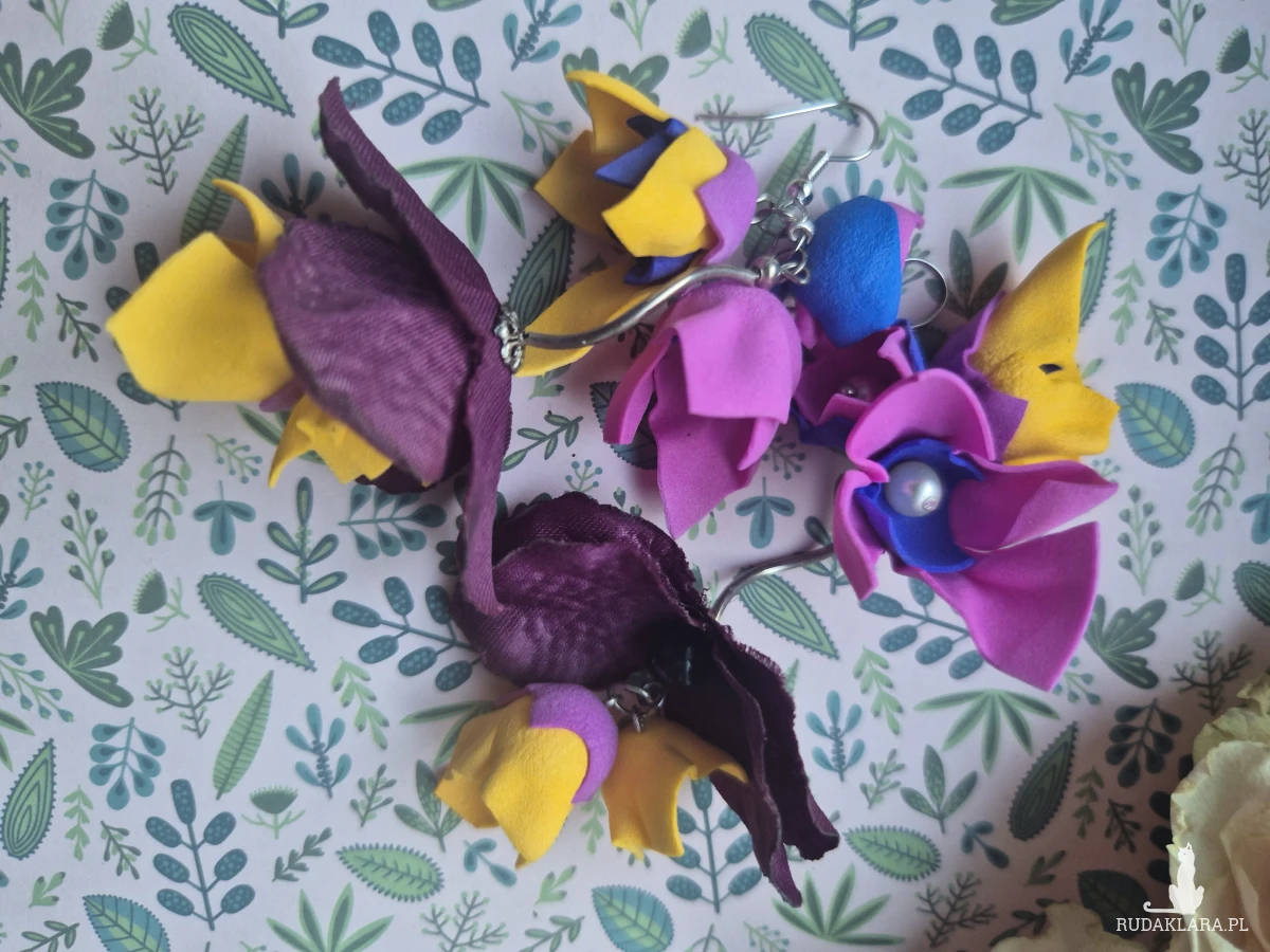 Kolczyki kwiaty kolorowe leciutkie dlugie  polecam
