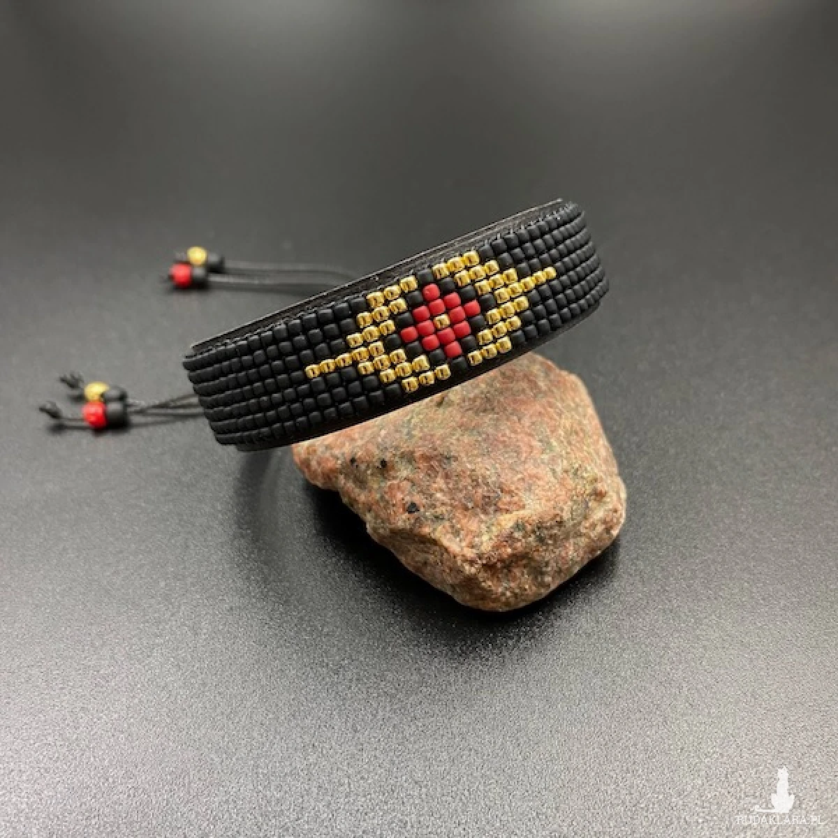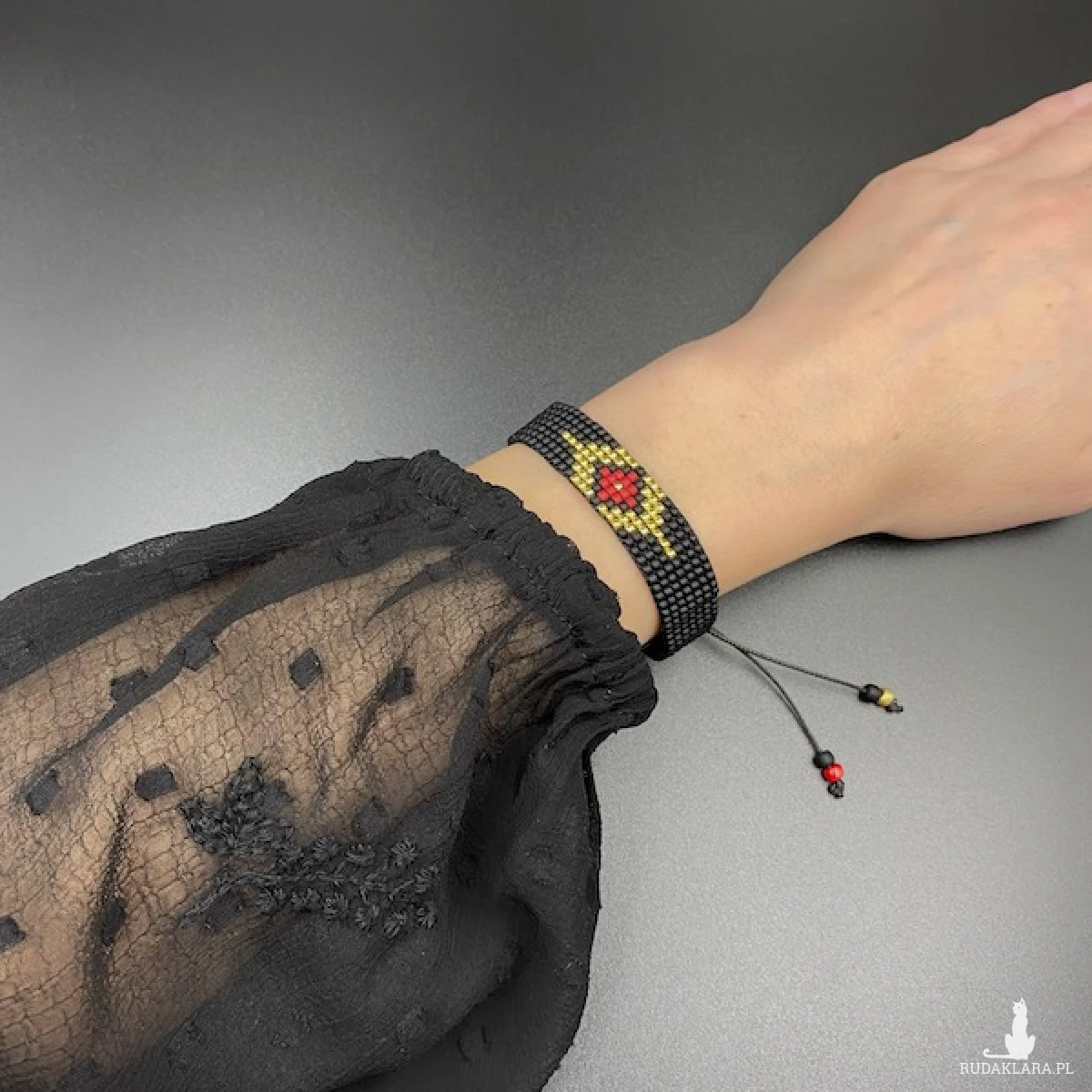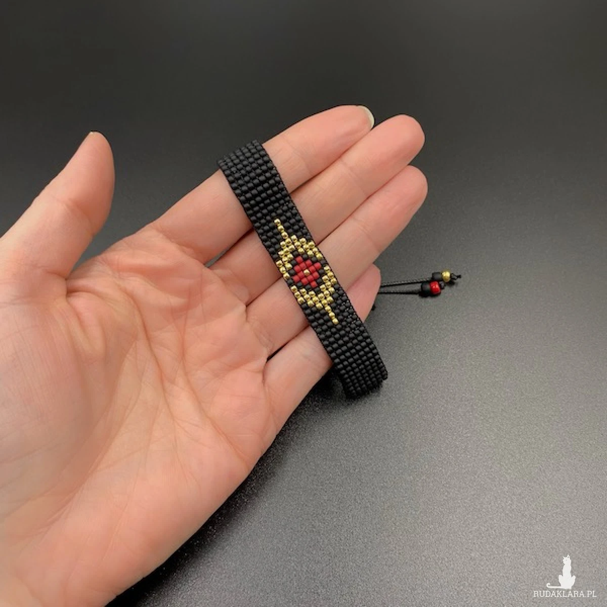 Bransoletka została utkana na krośnie z koralików Toho. Jest bardzo plastyczna i swobodnie układa się na nadgarstku.