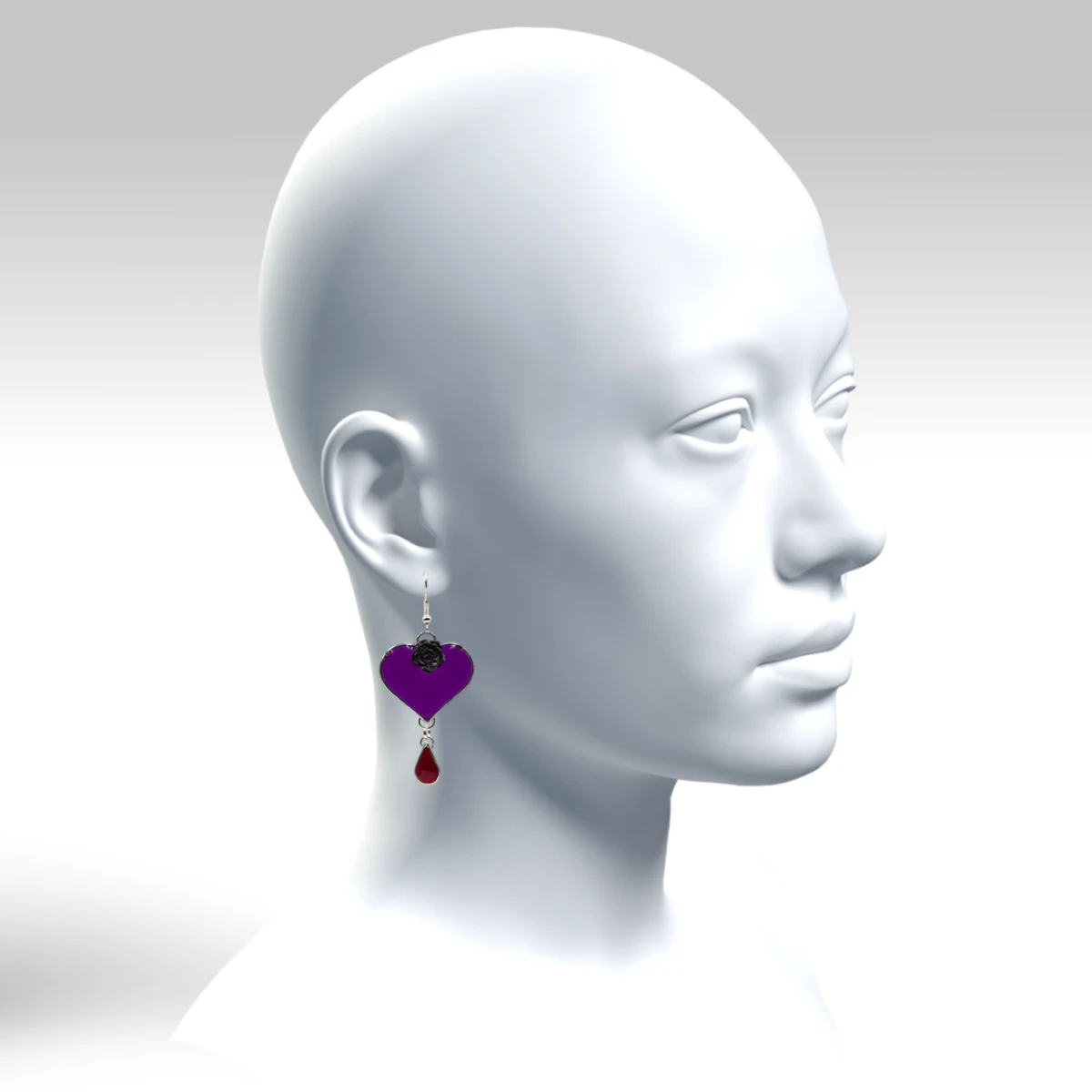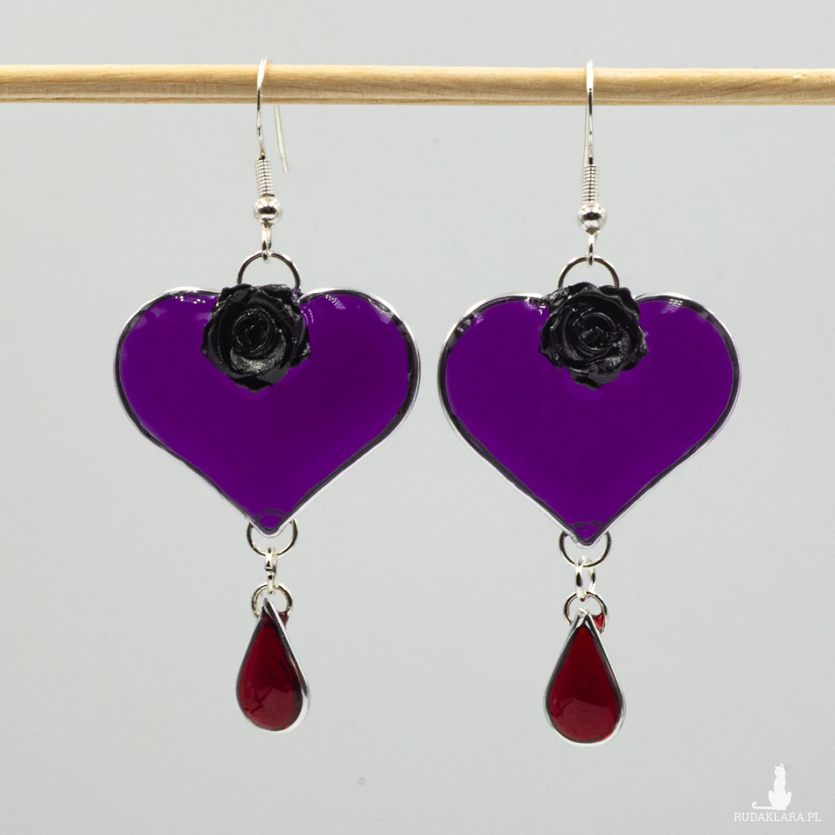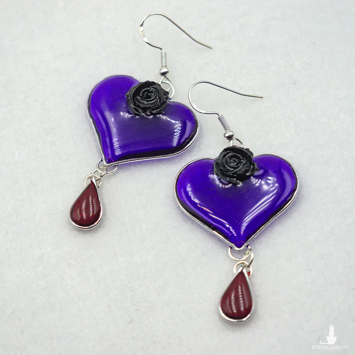 Zaprojektowane i ręcznie wykonane przeze mnie unikalne kolczyki w klasycznym gotyckim stylu z różą i łezką, dla wszystkich fanów "czarnej sceny". Należę do niej od blisko 30 lat i dlatego tworzę biżuterię, która może wydawać się mniej "gotycka" niż inne wzory, tzn. mniej wizualnie wybujała, ale skierowana jest przede wszystkim do tych, którzy cenią sobie subtelność bez utraty podstawowych gotyckich cech.