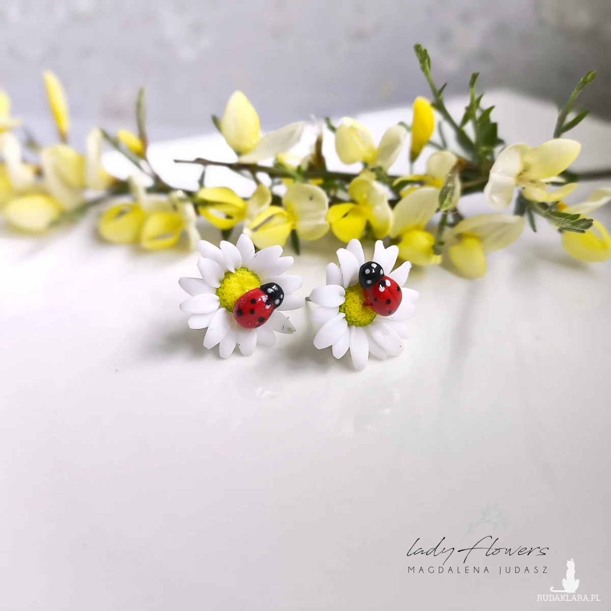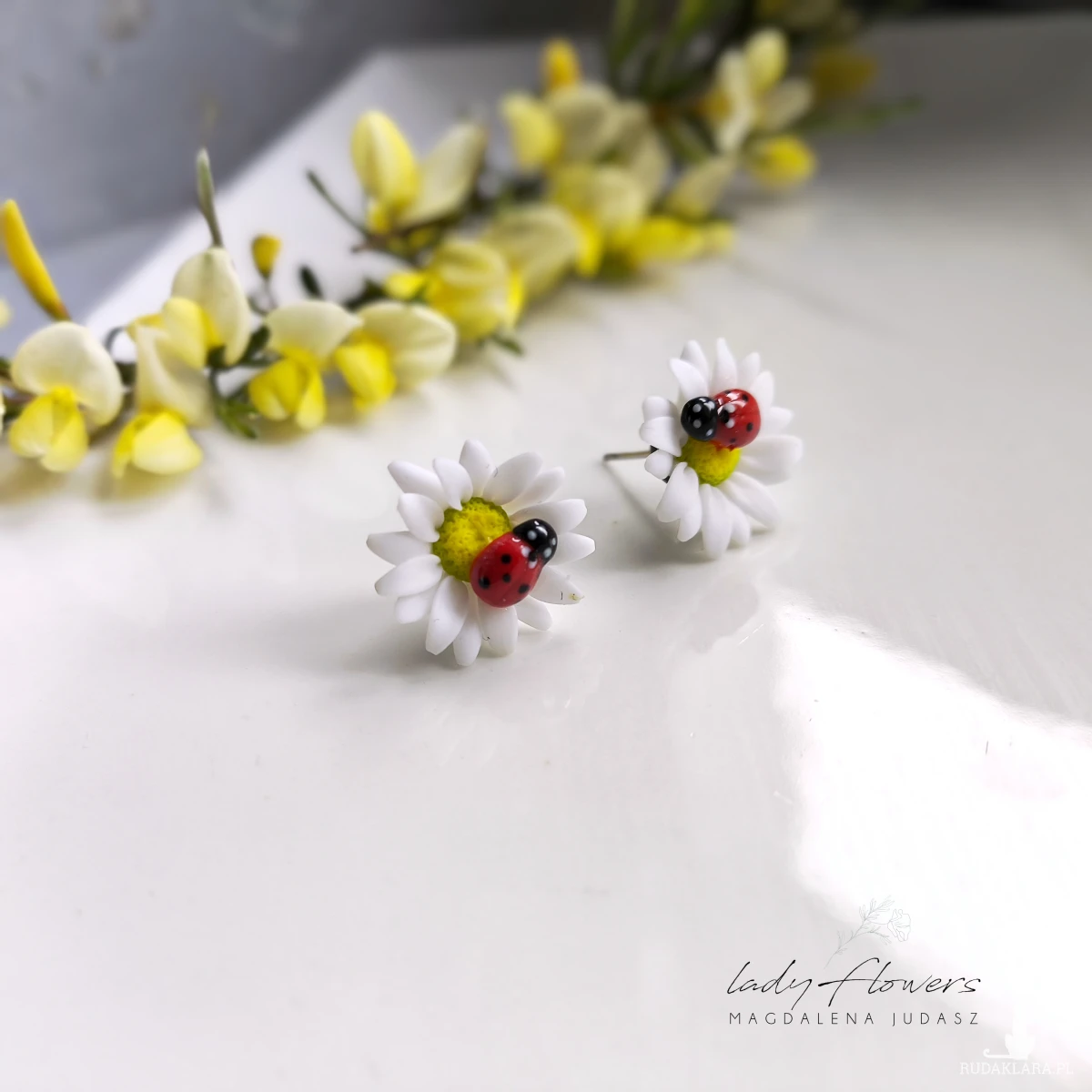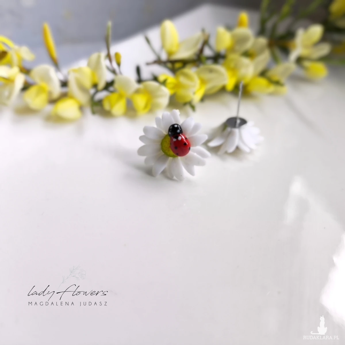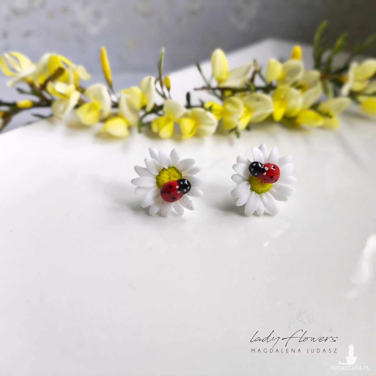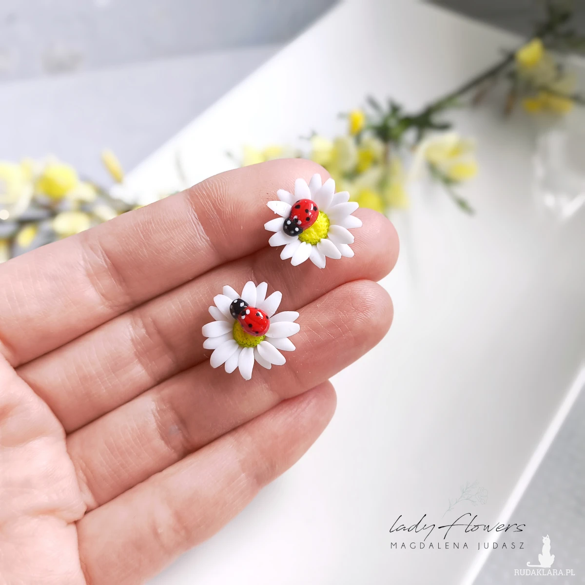 Urocze kolczyki sztyfciki z ręcznie wykonanymi kwiatuszkami