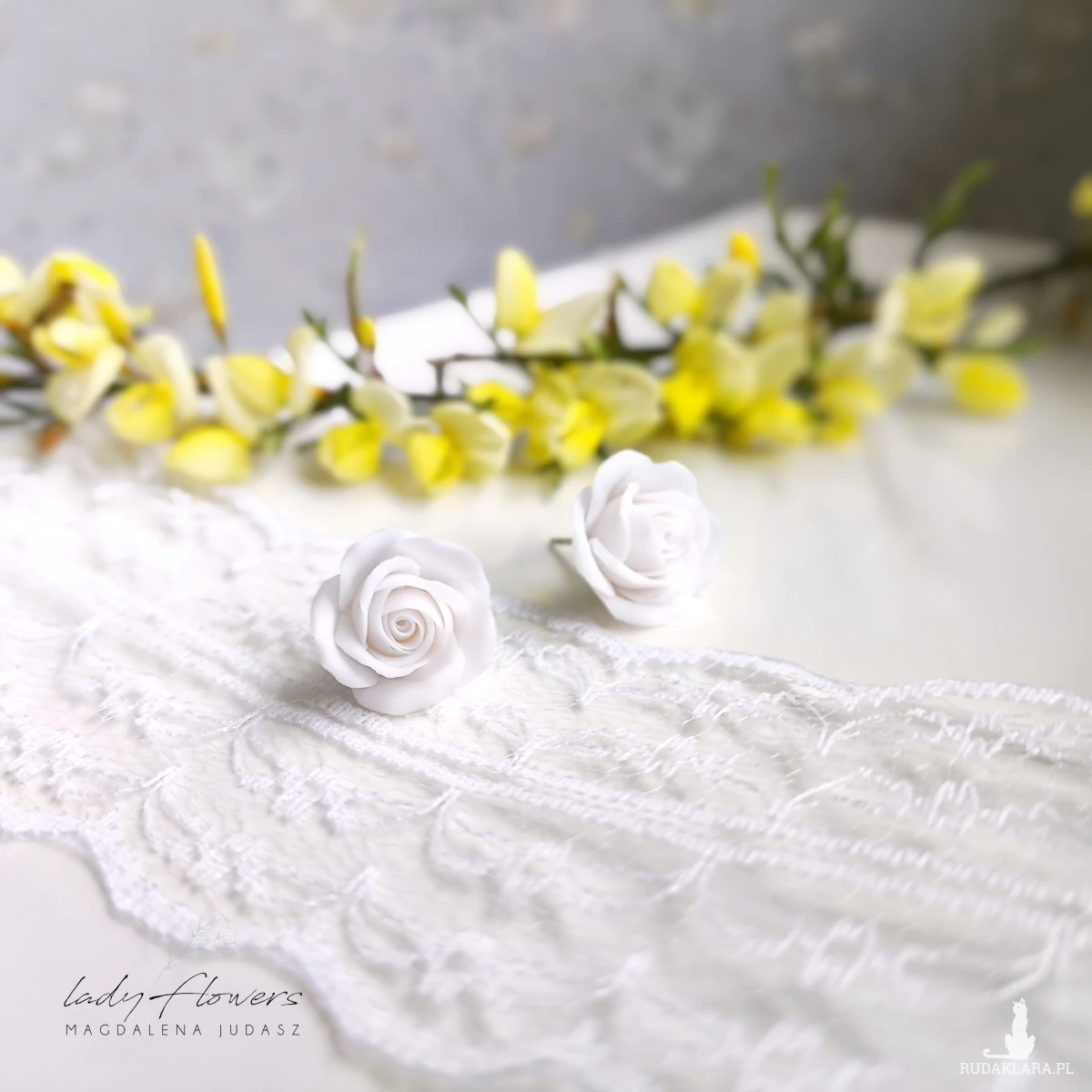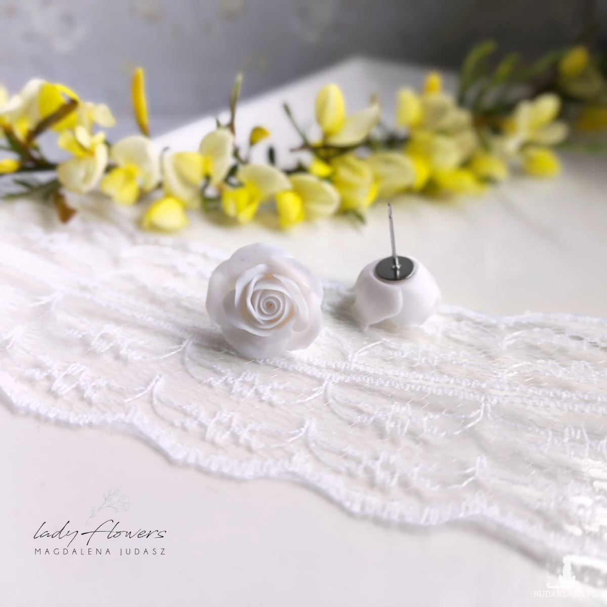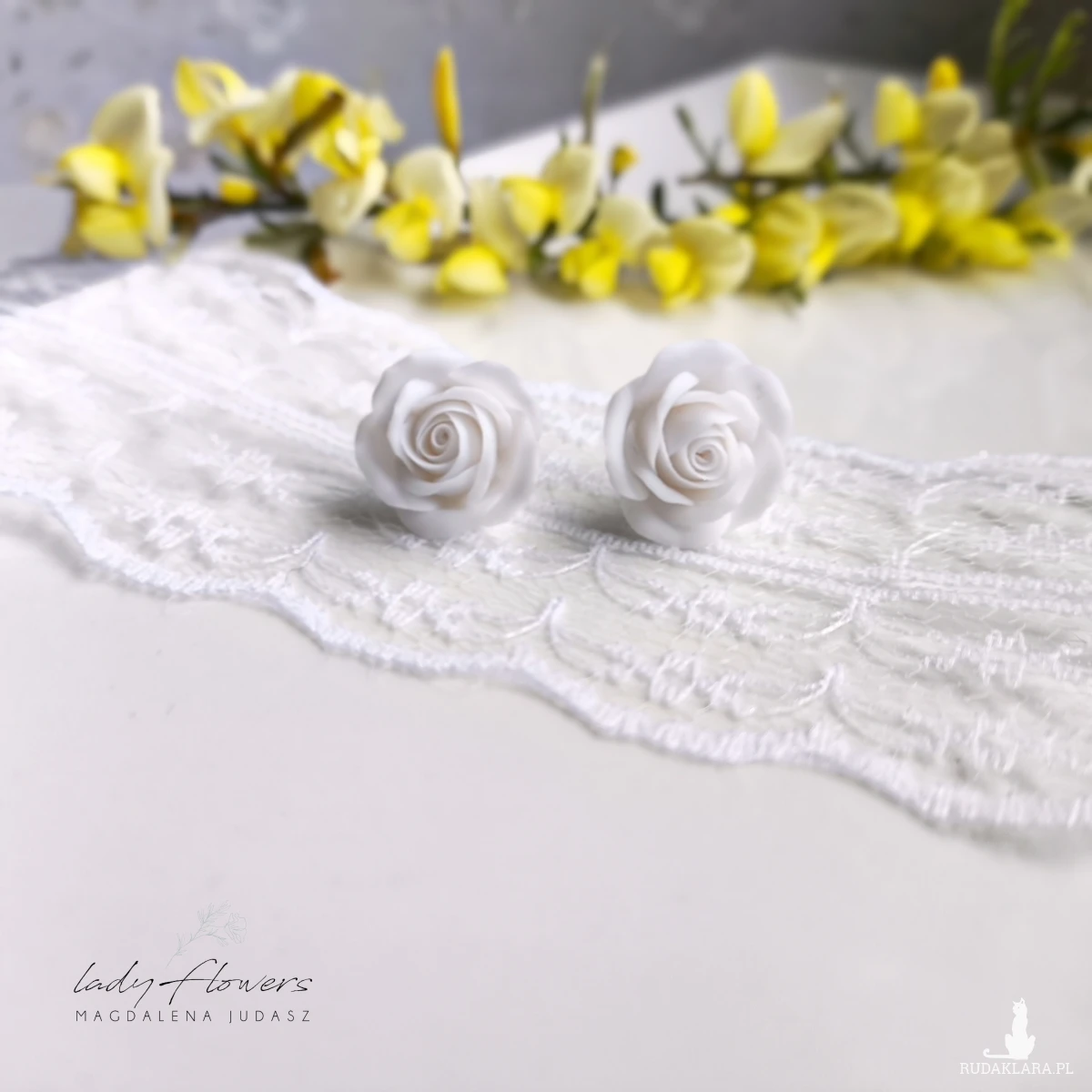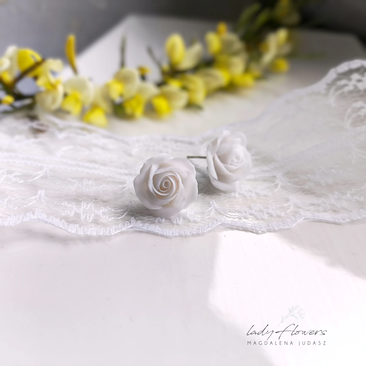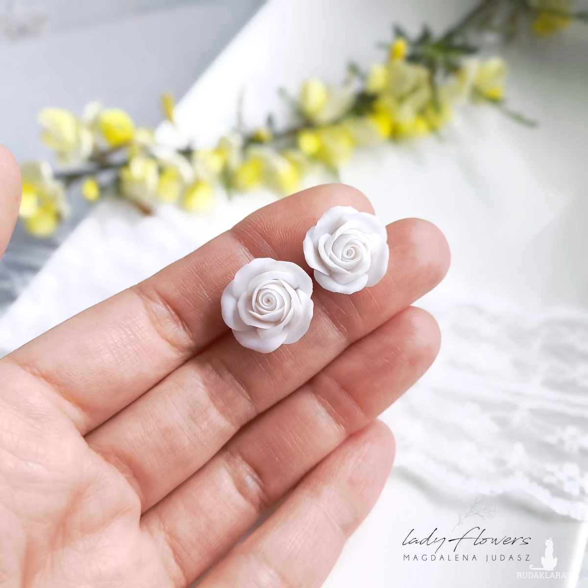 Kolczyki z ręcznie formowanymi różyczkami z profesjonalnej masy termoutwardzalnej