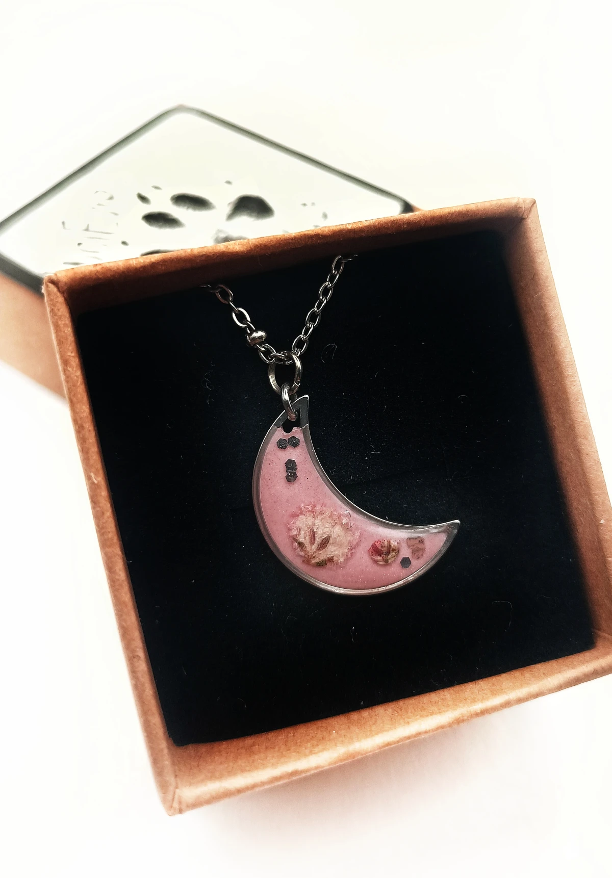 Poznaj ręcznie wykonaną zawieszkę w kształcie księżyca, w której zatopiono delikatną suszoną gipsówkę. To nie tylko dodatek – to symbol kobiecej siły, harmonii i magii natury.