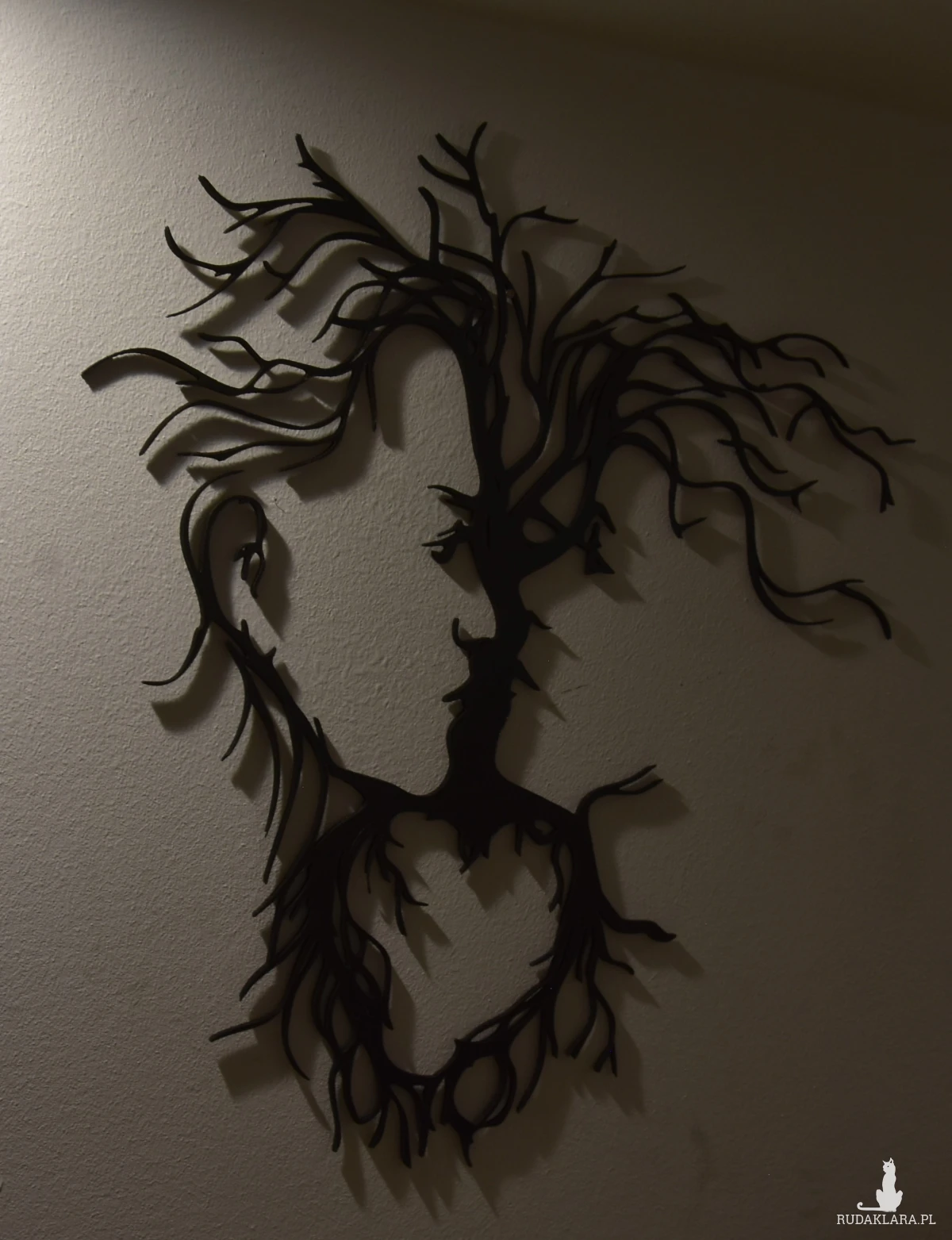 Obraz wypalany laserowo na płycie HDF o wymiarach 38x40 cm, wykończony matowym lakierem akrylowym w głębokim, czarnym odcieniu. Jego minimalistyczny, a zarazem wyrazisty charakter sprawia, że doskonale komponuje się zarówno w eleganckich, jak i nowoczesnych wnętrzach.