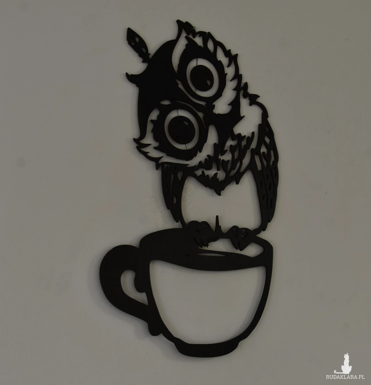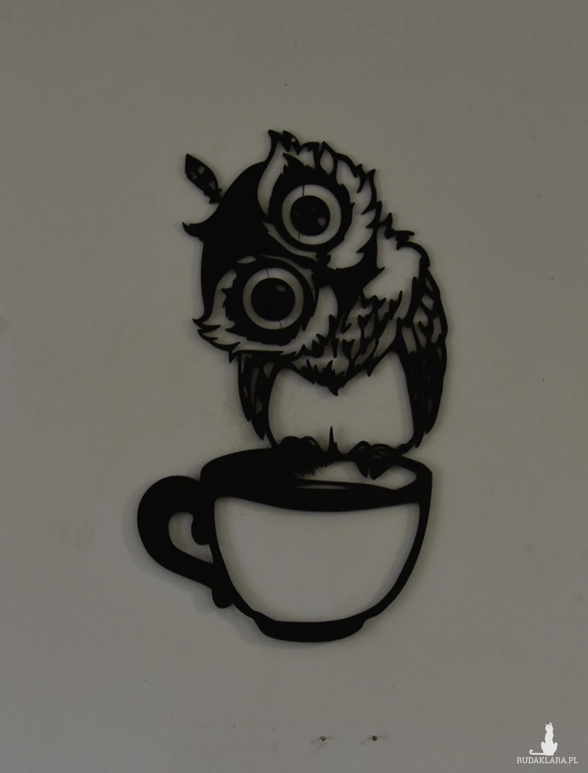 Sowa z filiżanką-dekoracja na ścianę wypalana laserem na płycie HDF