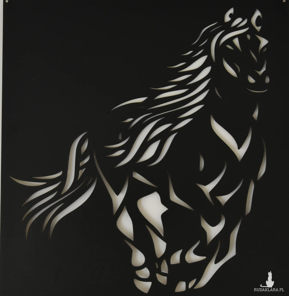 Obraz wypalany laserowo na płycie HDF o wymiarach 38x40 cm, wykończony matowym lakierem akrylowym w głębokim, czarnym odcieniu. Jego minimalistyczny, a zarazem wyrazisty charakter sprawia, że doskonale komponuje się zarówno w eleganckich, jak i nowoczesnych wnętrzach.