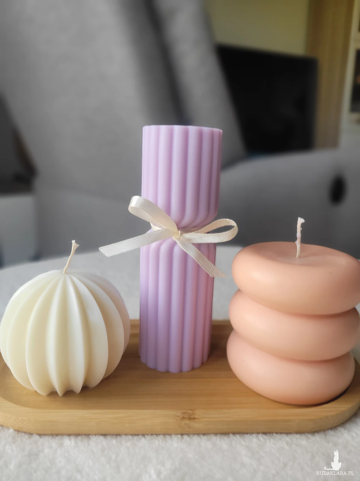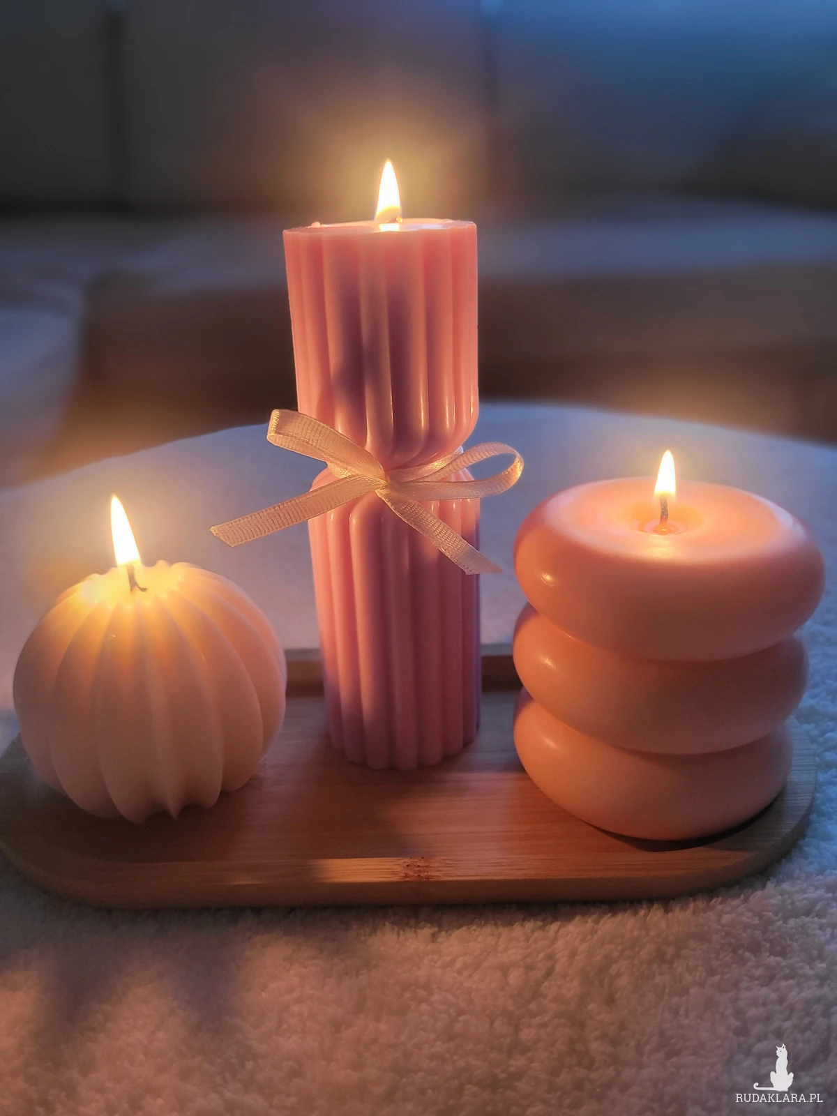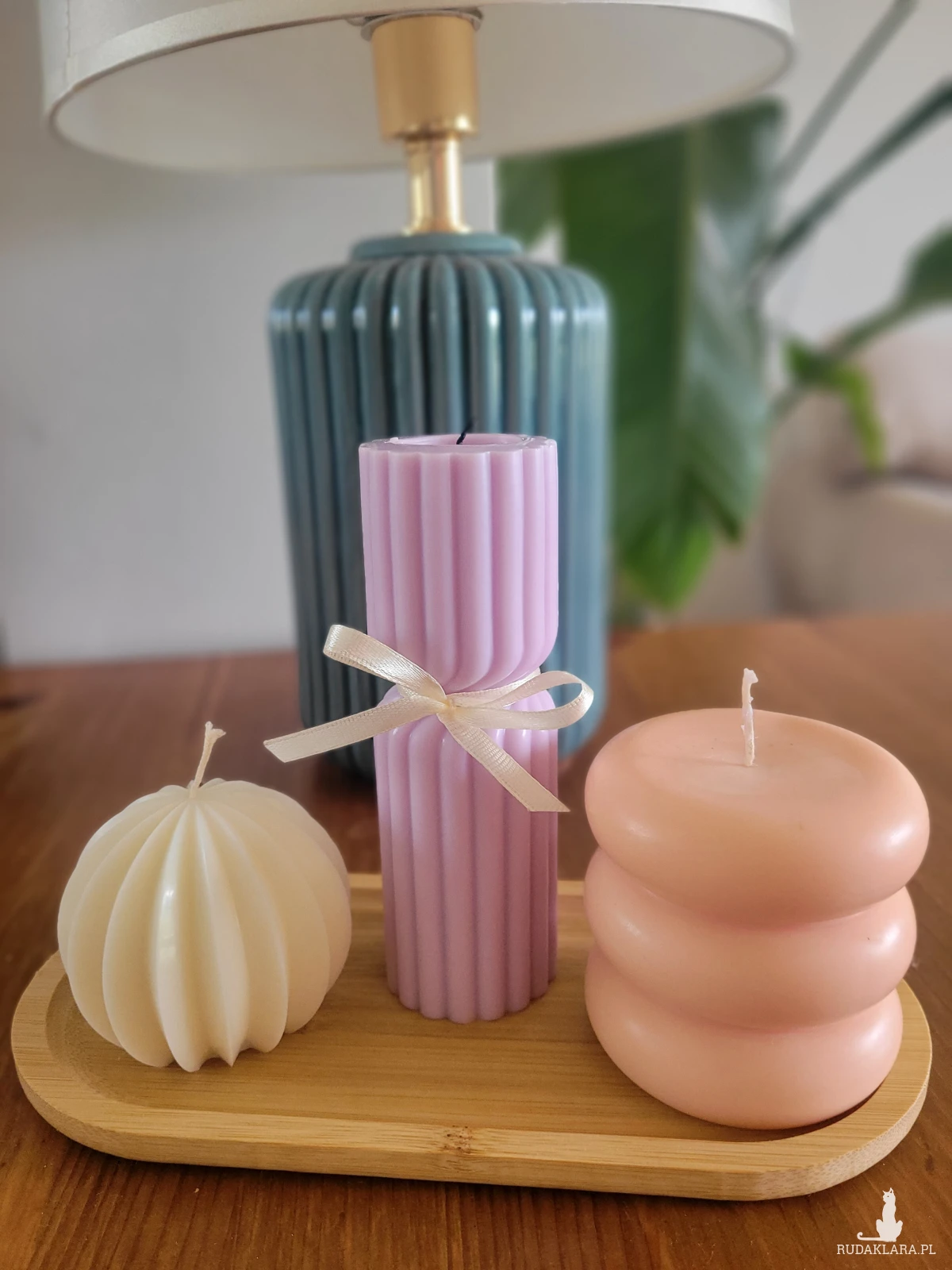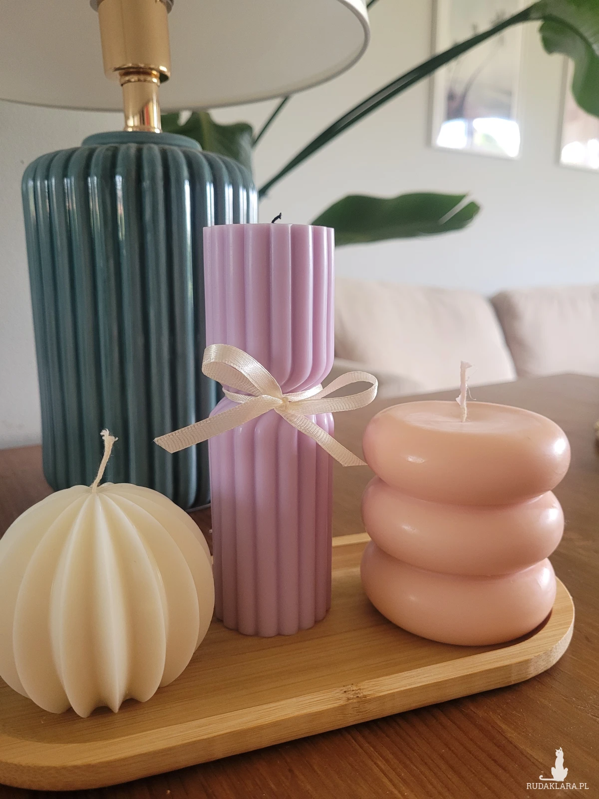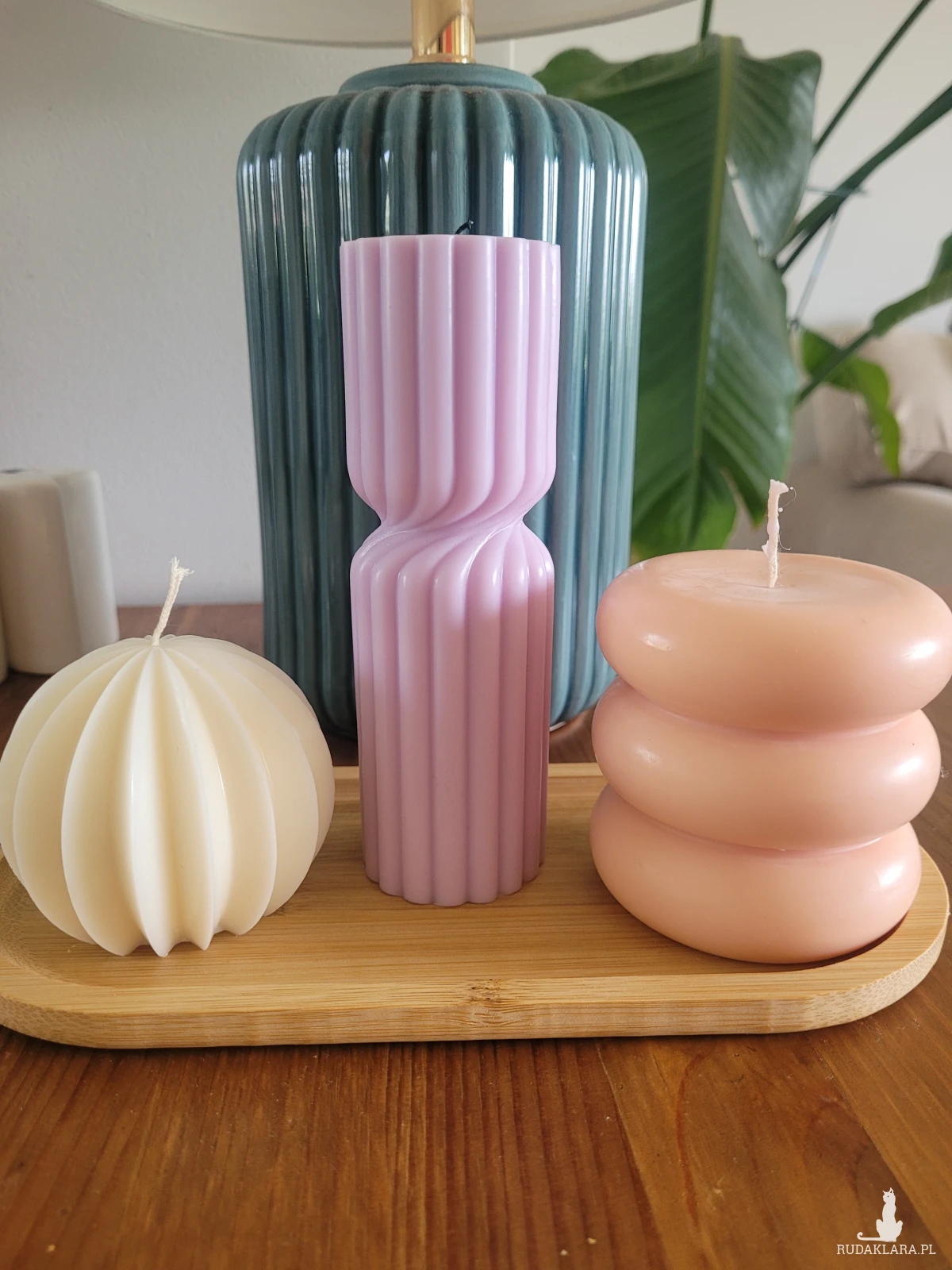 Pastelowe kolor wosku ładnie kontrastują z drewnem.